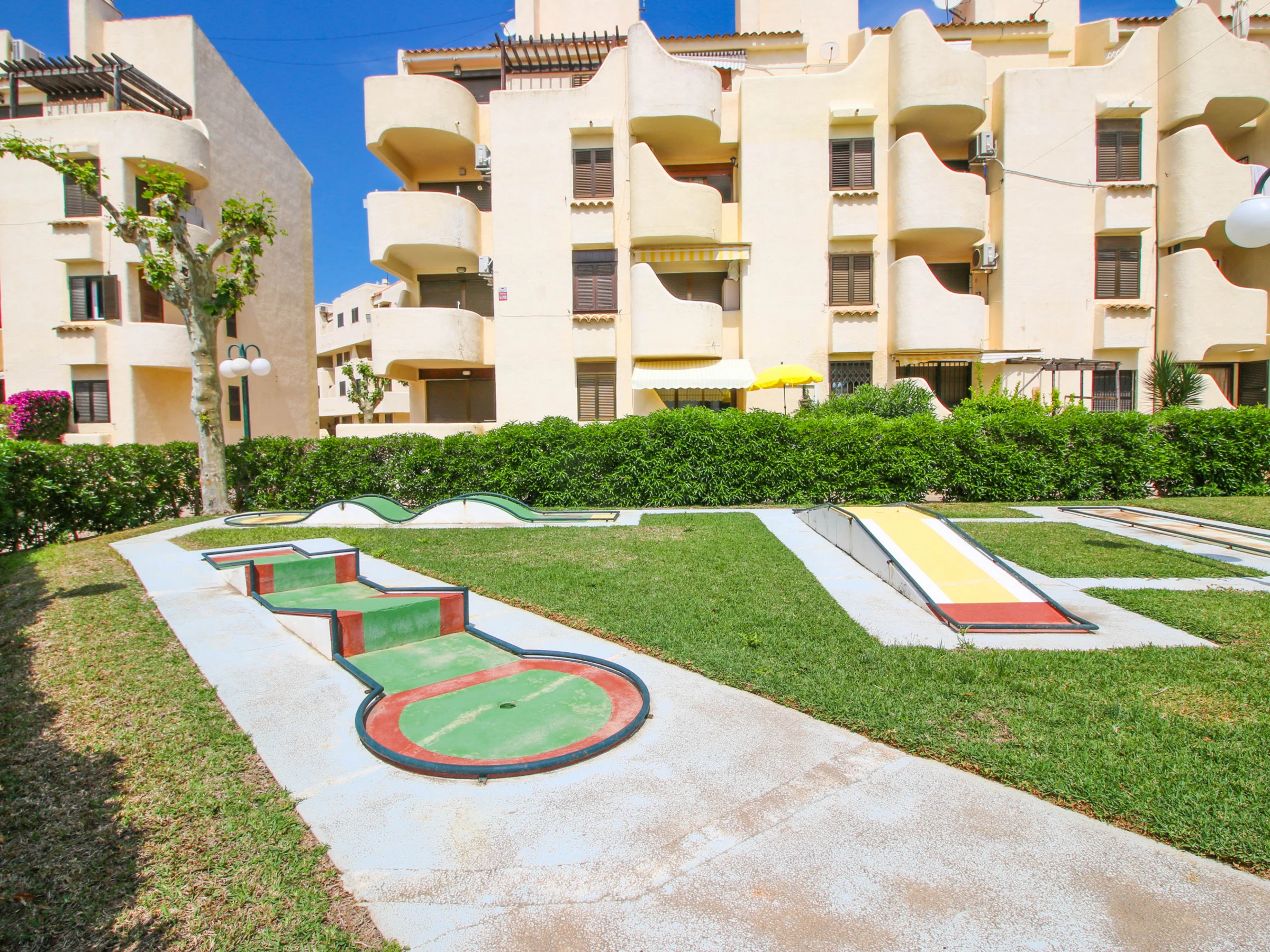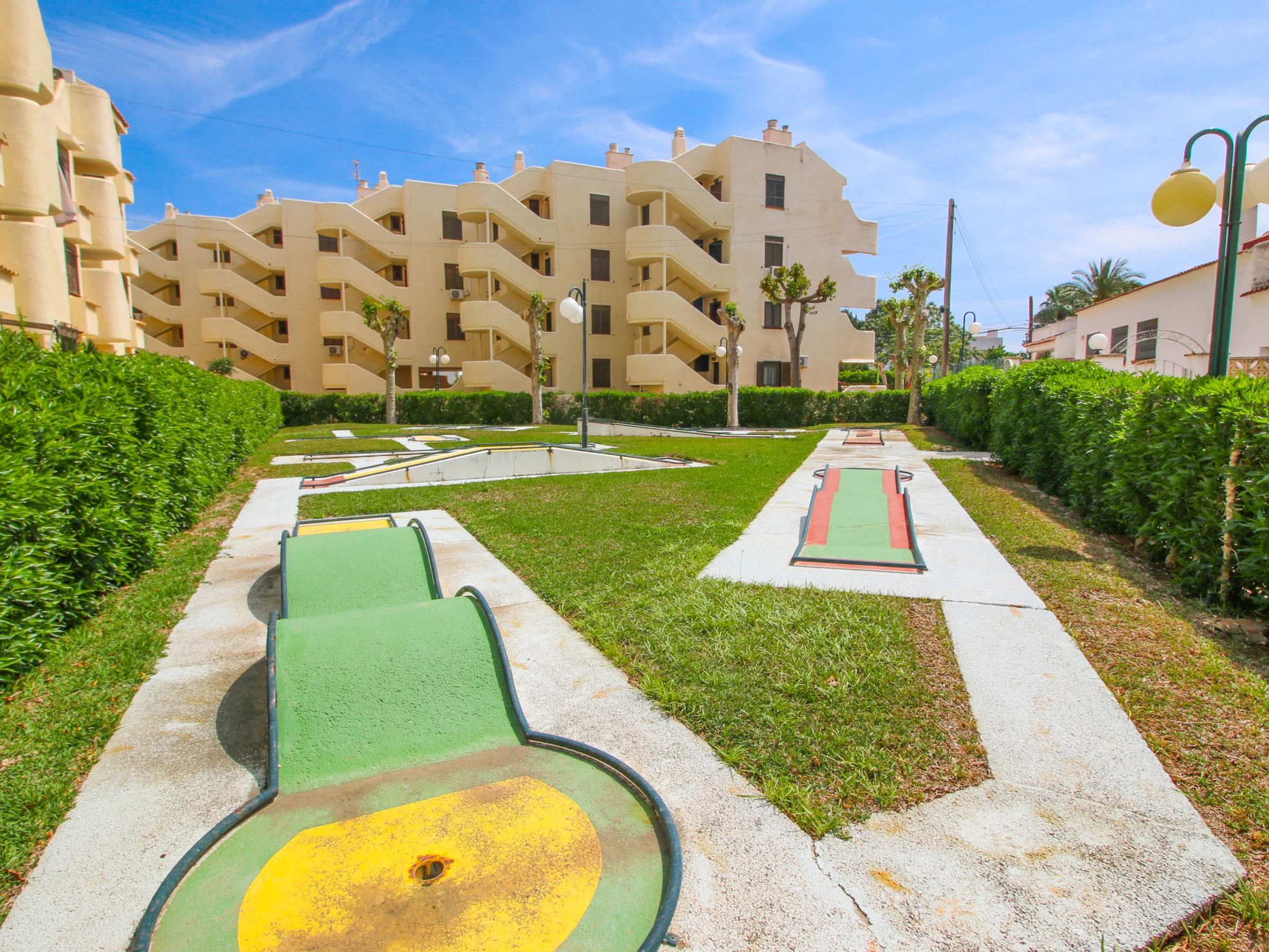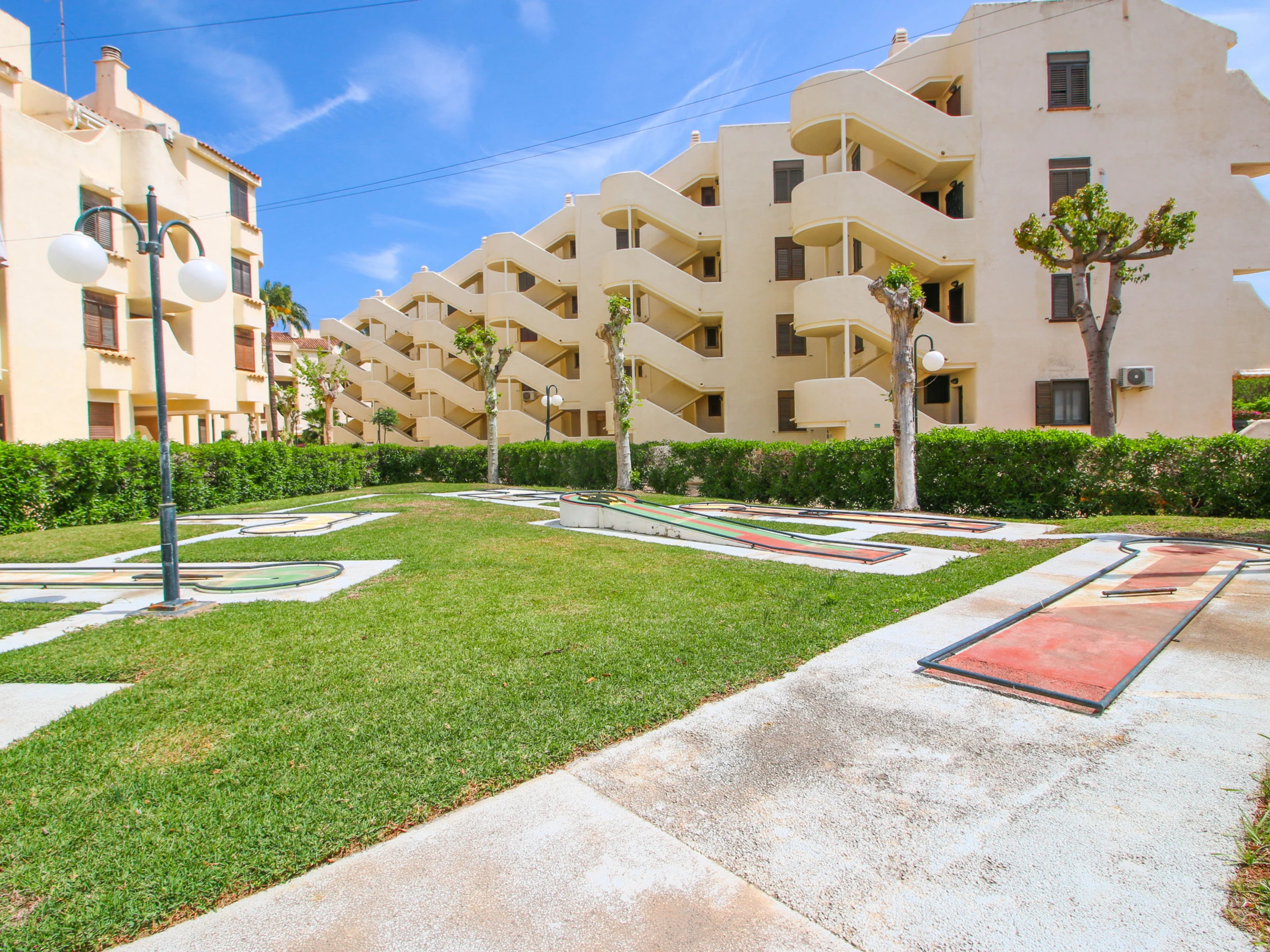 Die Wohnanlage verfügt über Parkplätze im Freien, Minigolf, einen Kinderspielplatz, Spazierwege und einen Gemeinschaftspool, sowohl für Erwachsene als auch für Kinder. Der Pool ist zum Baden vom 15.06. bis zum 15.09. geöffnet.