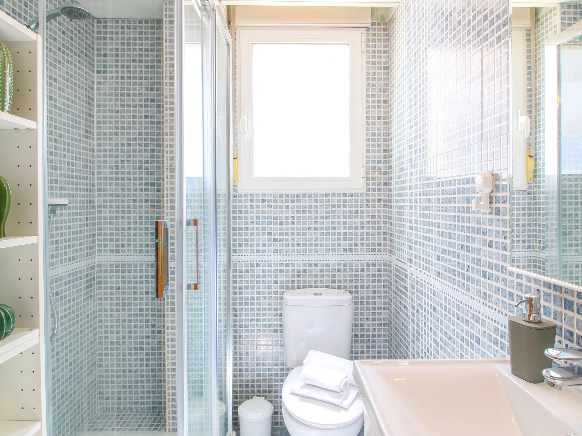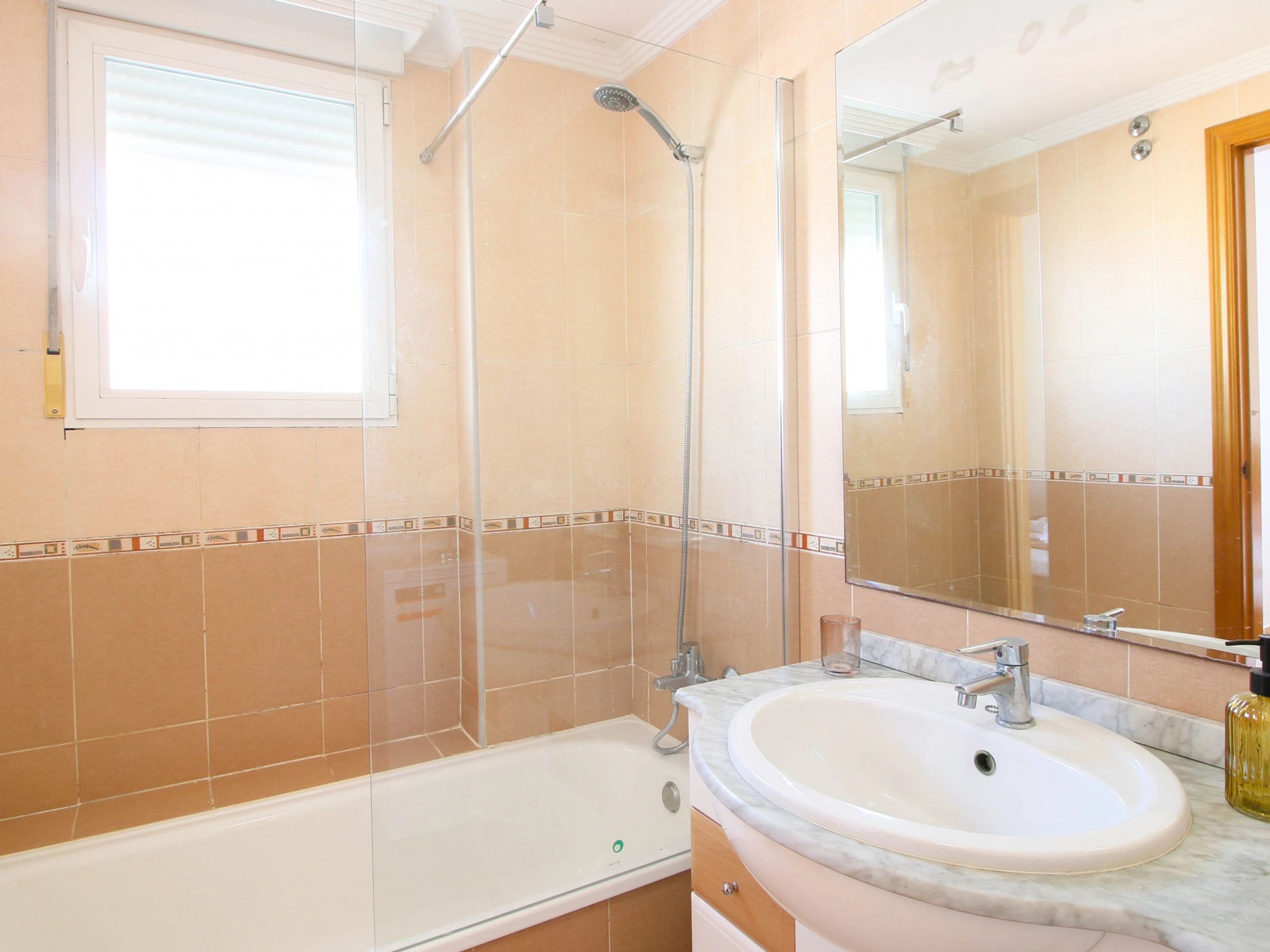 Das erste Schlafzimmer hat zwei Betten von 90 cm und einen Einbauschrank. Daneben befindet sich ein Badezimmer mit Dusche. Das zweite Schlafzimmer ist en suite. Es hat zwei nebeneinander stehende Betten von 90 cm und ein Badezimmer mit Badewanne.