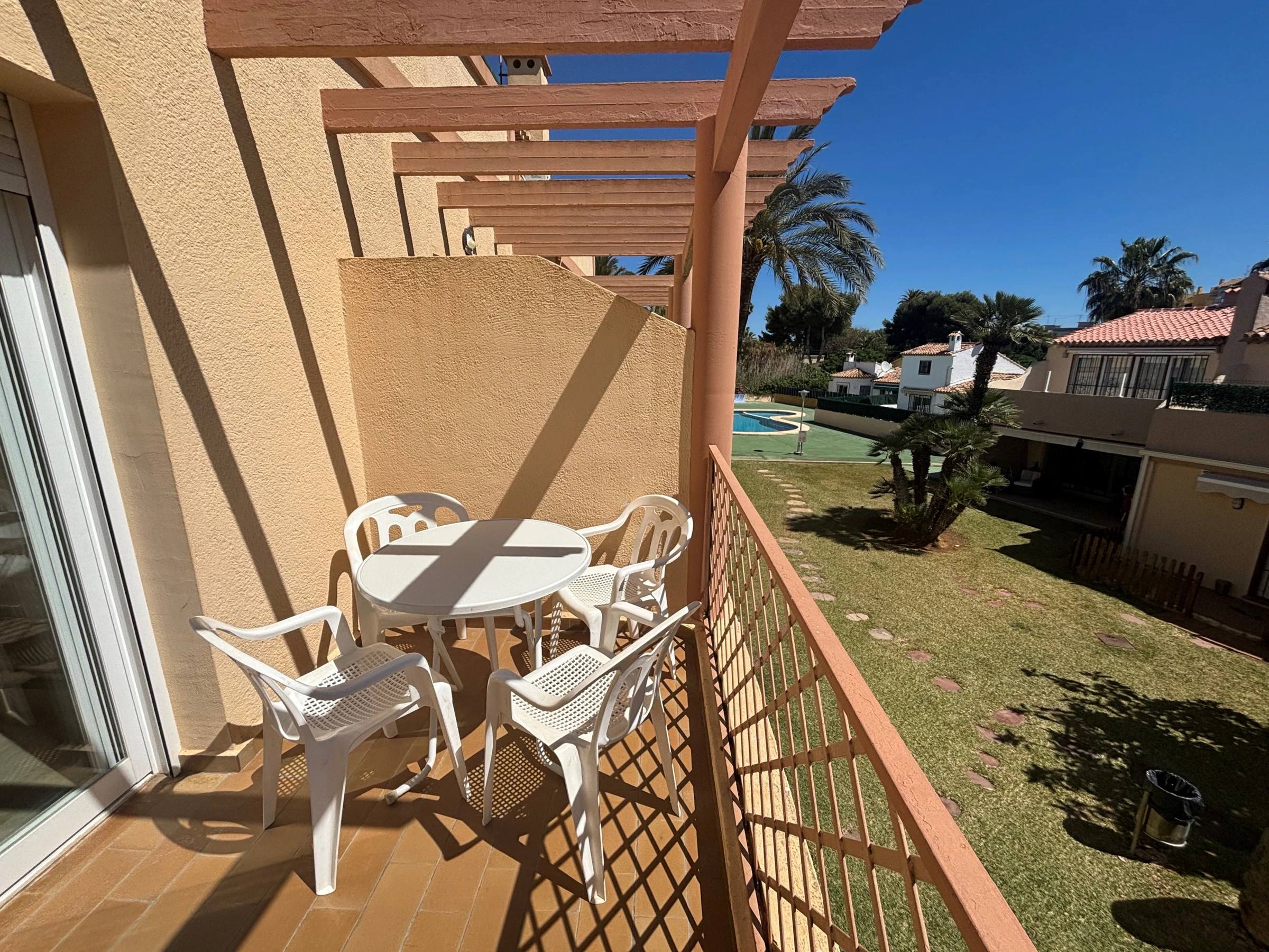 Es verfügt über einen Garten, Gartenmöbel, Terrasse, Bügeleisen, Wärmepumpenheizung, Klimaanlage im Wohnzimmer und einigen Schlafzimmern, Gemeinschaftspool + Kinderbecken, Parkplatz im Freien im selben Gebäude, Fernseher, Satellitenfernsehen (Sprachen: Spanisch, Englisch). ).