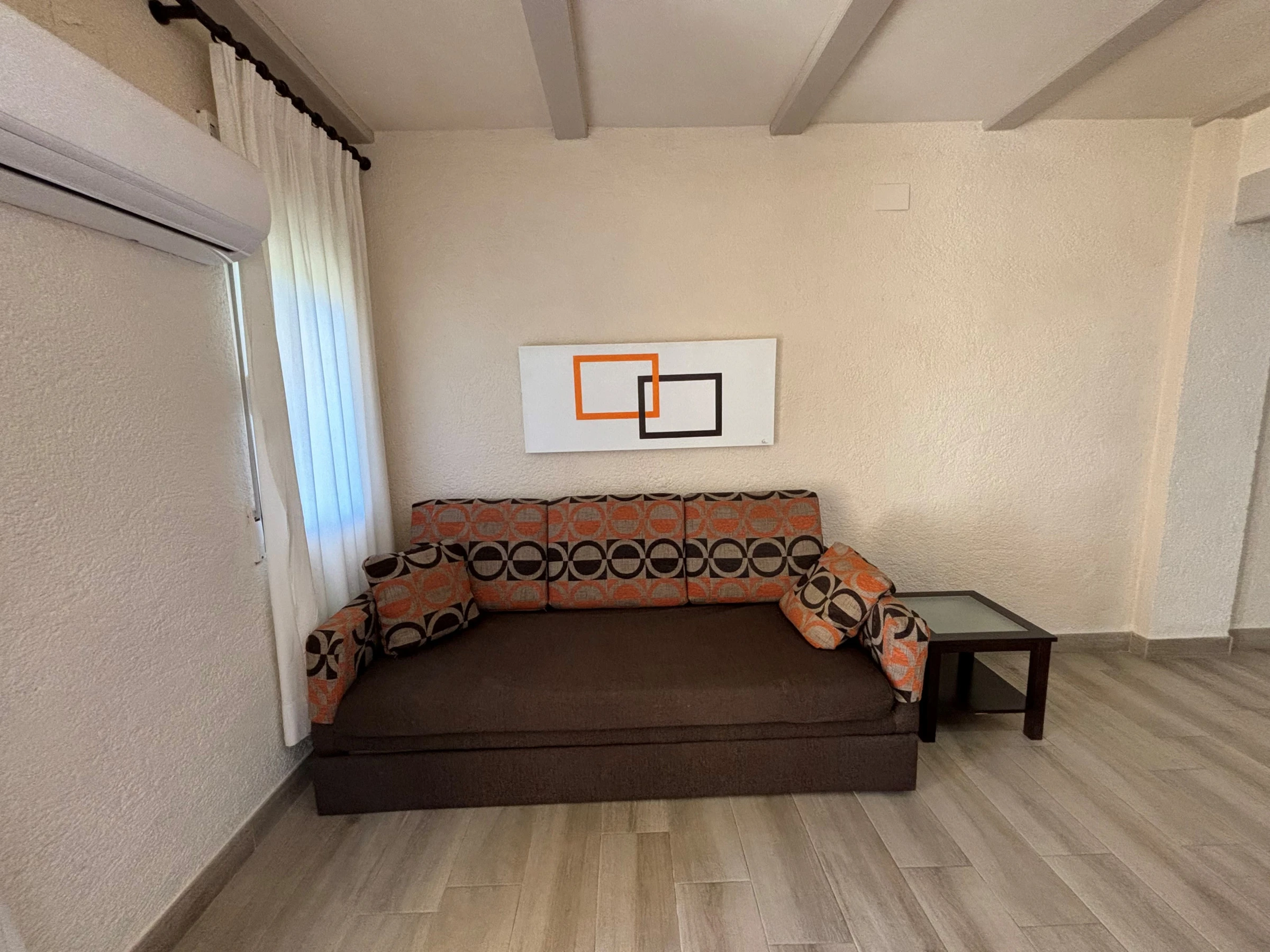 Die Wohnung in Denia ist eine Maisonette-Wohnung, die sich im Erdgeschoss oder im ersten Stock befinden kann. Sie verfügt über 2 Schlafzimmer, eines mit einem Doppelbett, das andere mit zwei Einzelbetten, ein Doppelschlafsofa im Wohnzimmer und Kapazität für 6 Personen.