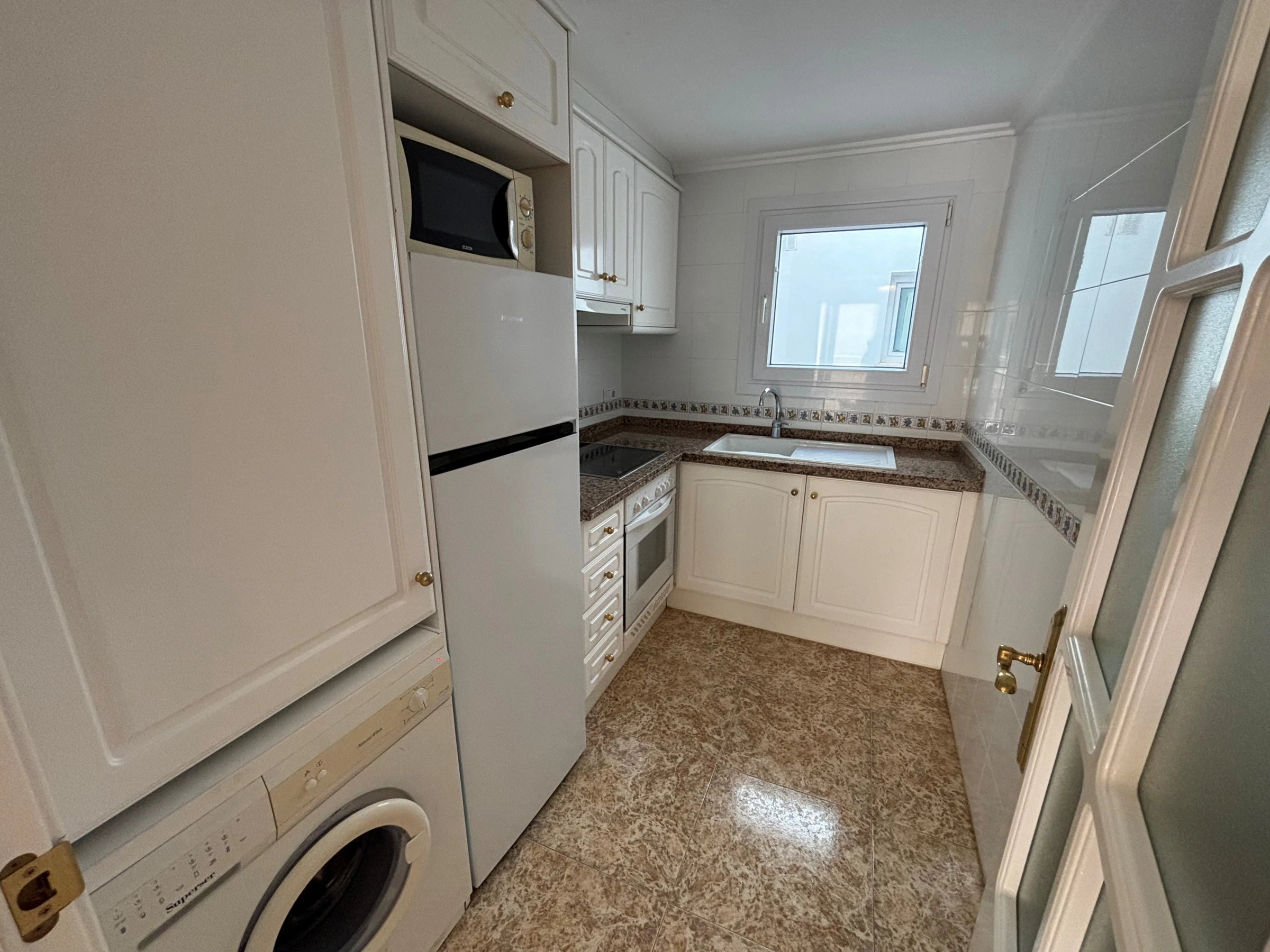 Dieses separate küche, mit ceranfeld, ist ausgestattet in kühlschrank, mikrowelle, backofen, geschirr/besteck, kochutensilien und kaffeemaschine.