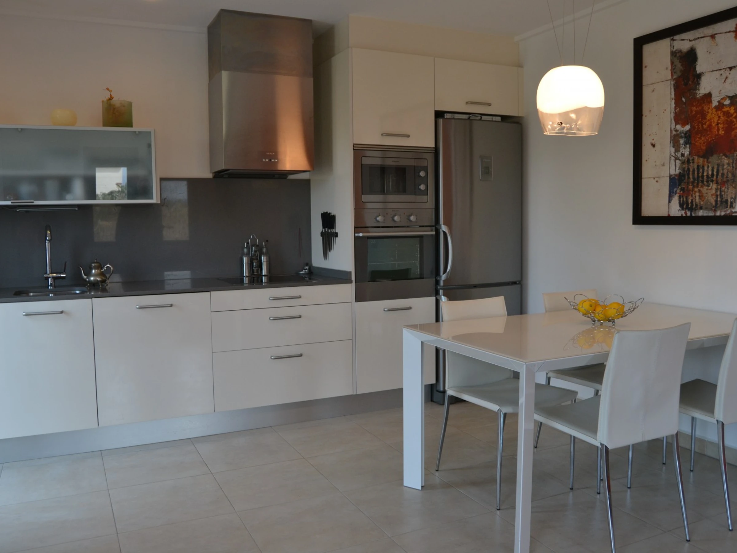 Dieses offene küche, mit ceranfeld, ist ausgestattet in kühlschrank, mikrowelle, backofen, spülmaschine, geschirr/besteck, kochutensilien, kaffeemaschine, toaster und wasserkocher.