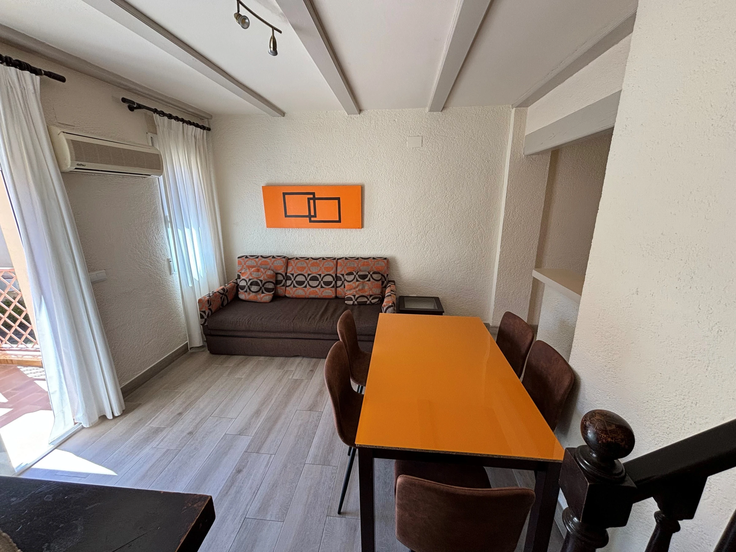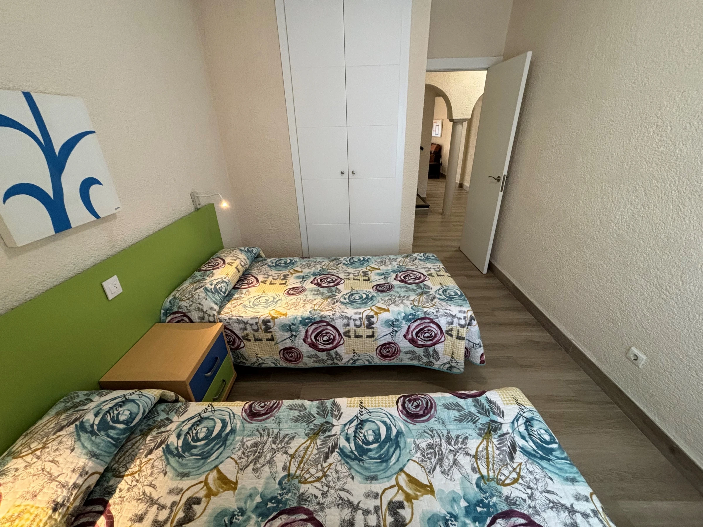 ,Die Wohnung in Denia ist eine Maisonette-Wohnung, die sich im Erdgeschoss oder im ersten Stock befinden kann. Sie verfügt über 2 Schlafzimmer mit jeweils 2 Einzelbetten und einem Doppelschlafsofa im Wohnzimmer und bietet Platz für 6 Personen.