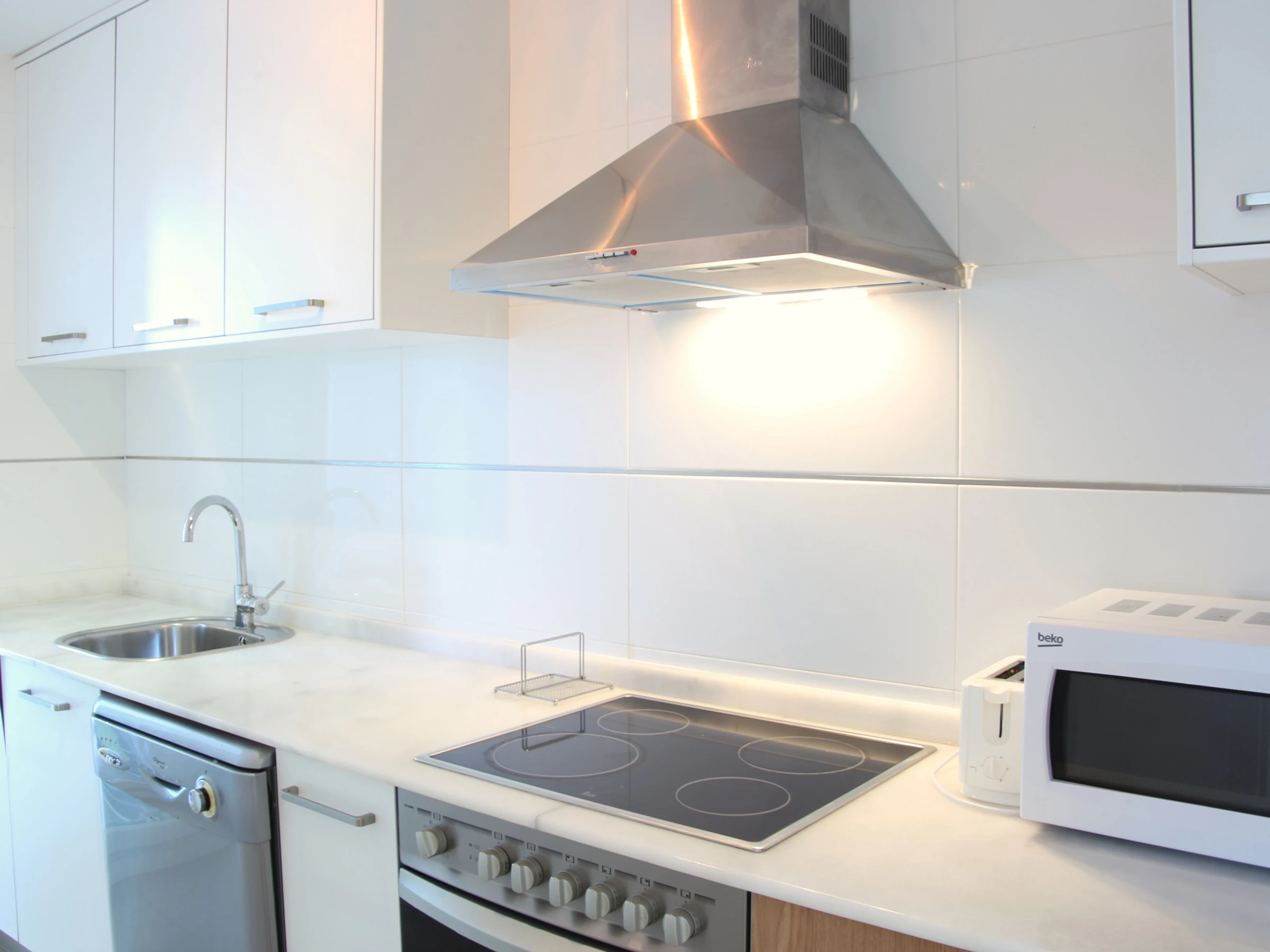 Dieses separate küche, elektrisches kochfeld, ist ausgestattet in kühlschrank, mikrowelle, backofen, gefrierschrank, spülmaschine, geschirr/besteck, kochutensilien, kaffeemaschine, toaster, wasserkocher und saftpresse.