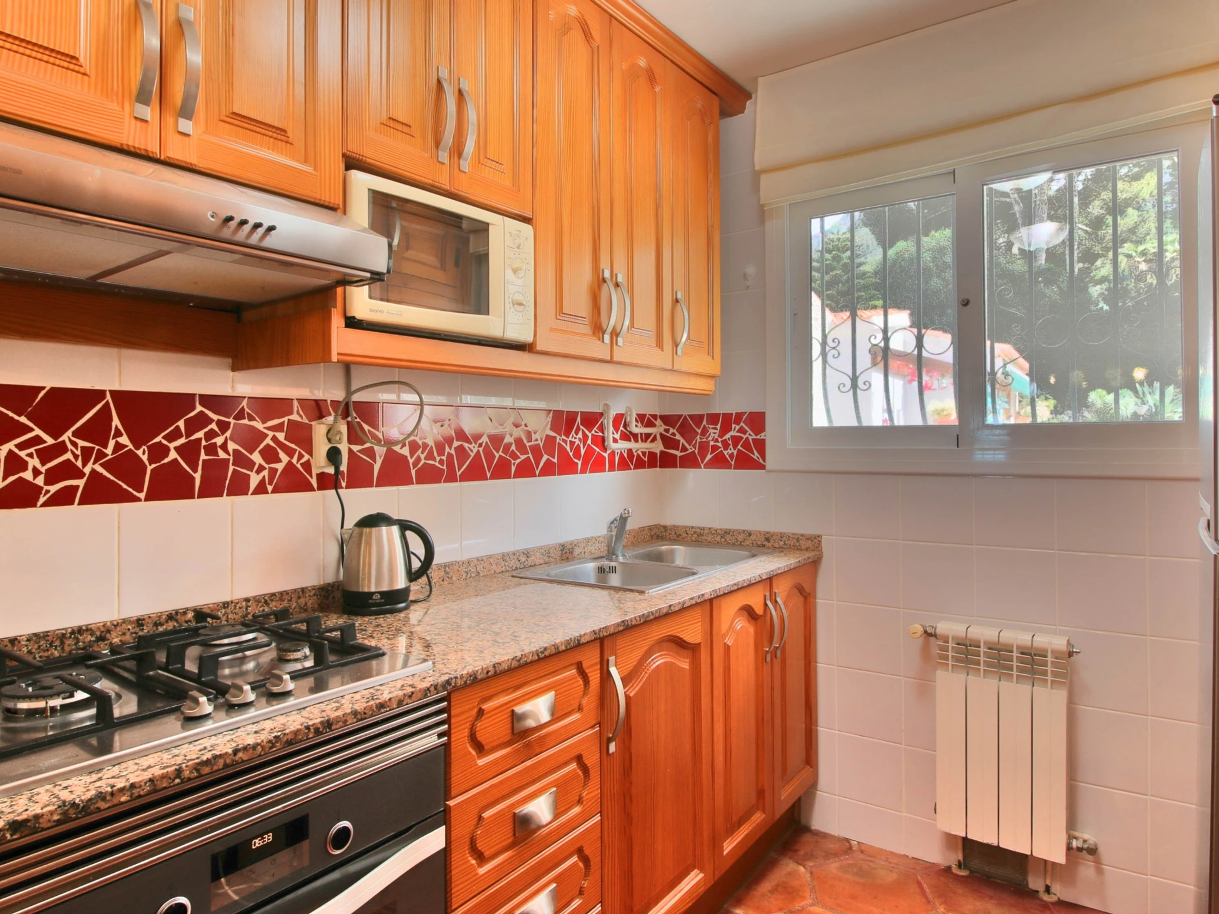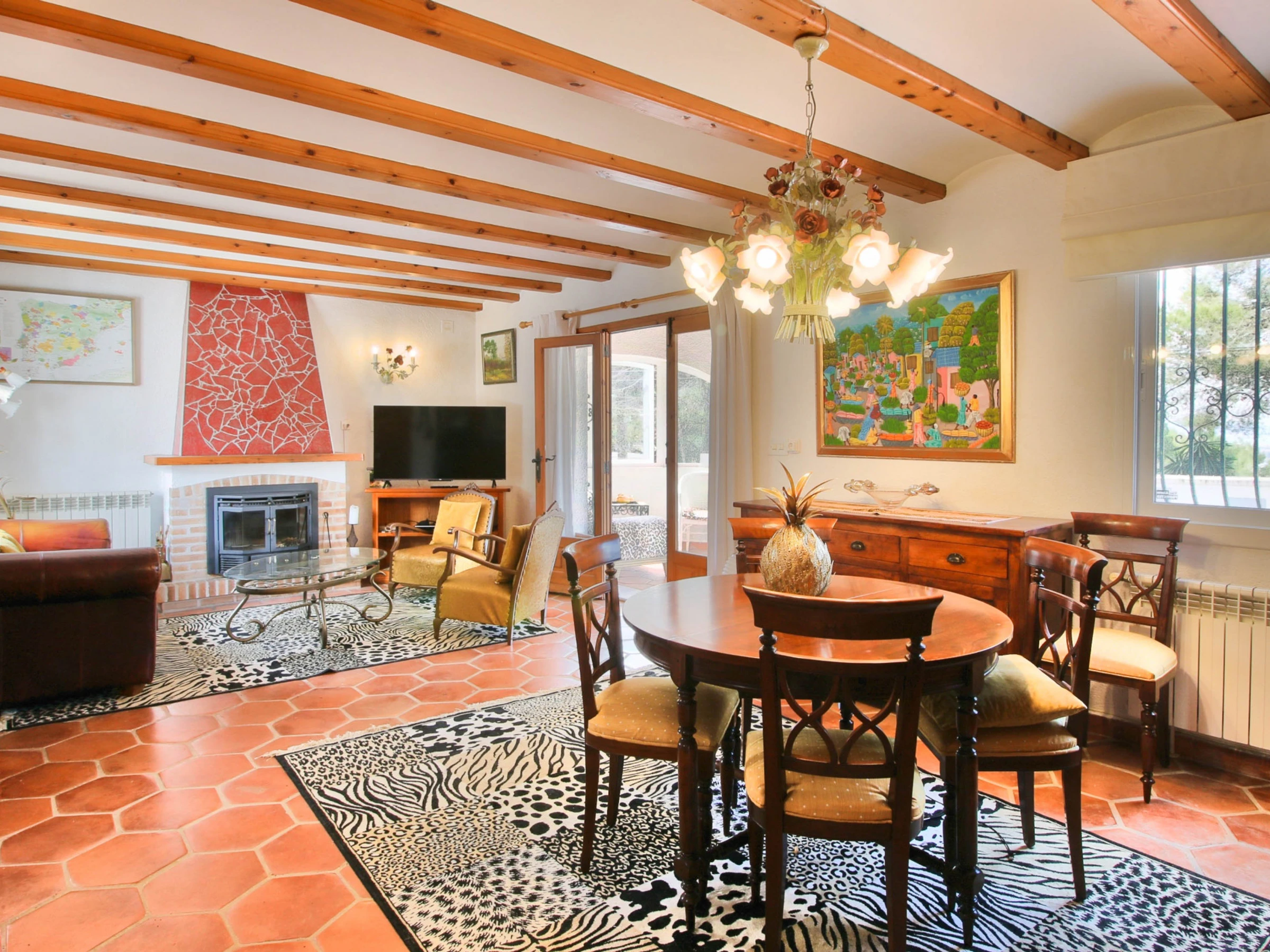 Die Villa ist sehr persönlich eingerichtet. Beim Betreten finden wir den Wohn-/Essbereich mit Kamin sowie eine verglaste Veranda, die ideal zum Sonnigen Essen in den Wintermonaten ist. Die offene Küche ist mit allen Annehmlichkeiten ausgestattet: Kühlschrank, Mikrowelle, Gasherd, Ofen, Gefrierschrank, Waschmaschine, Geschirrspüler, Geschirr/Besteck, Küchenutensilien, Kaffeemaschine, Toaster und Wasserkocher.