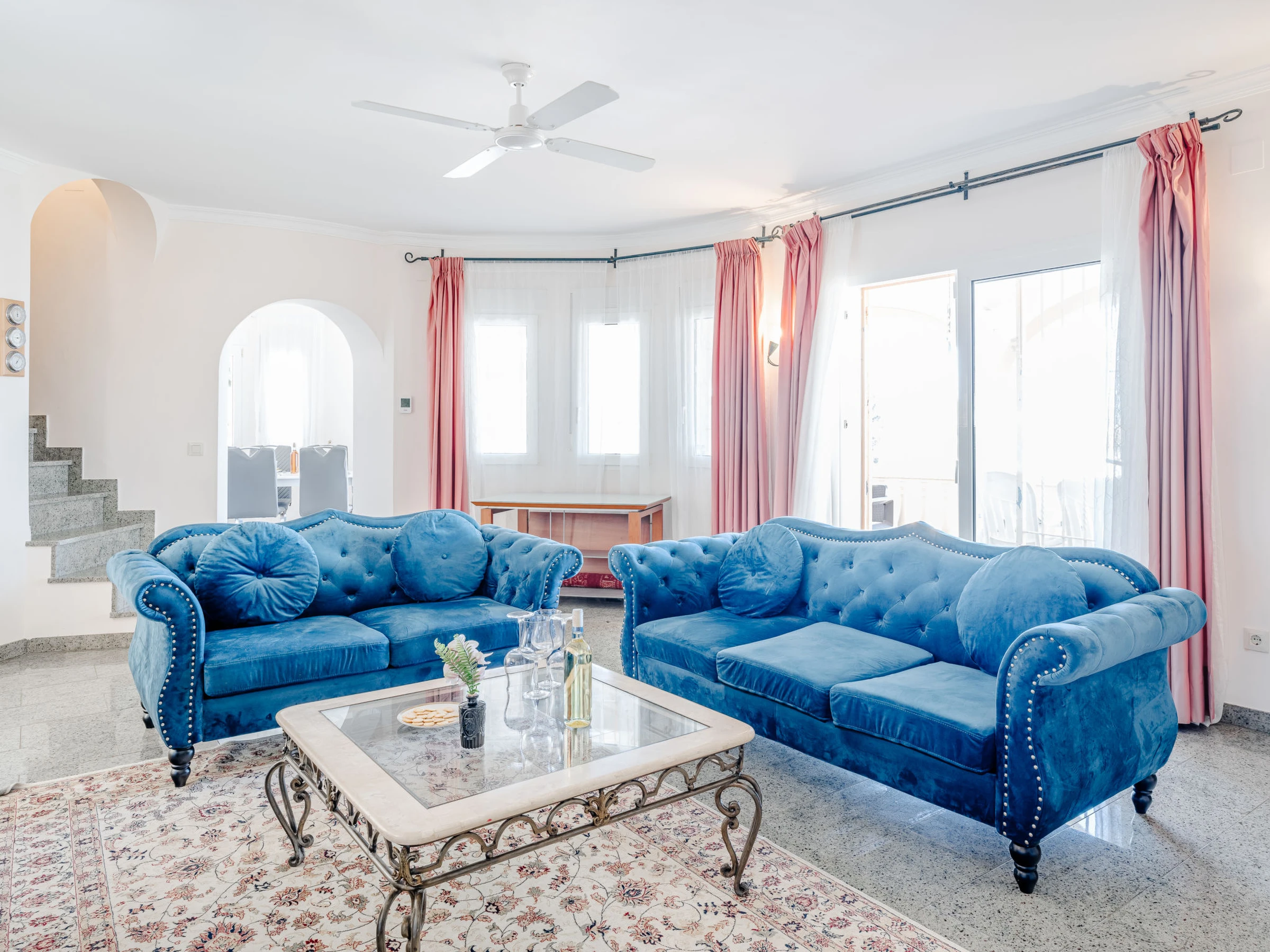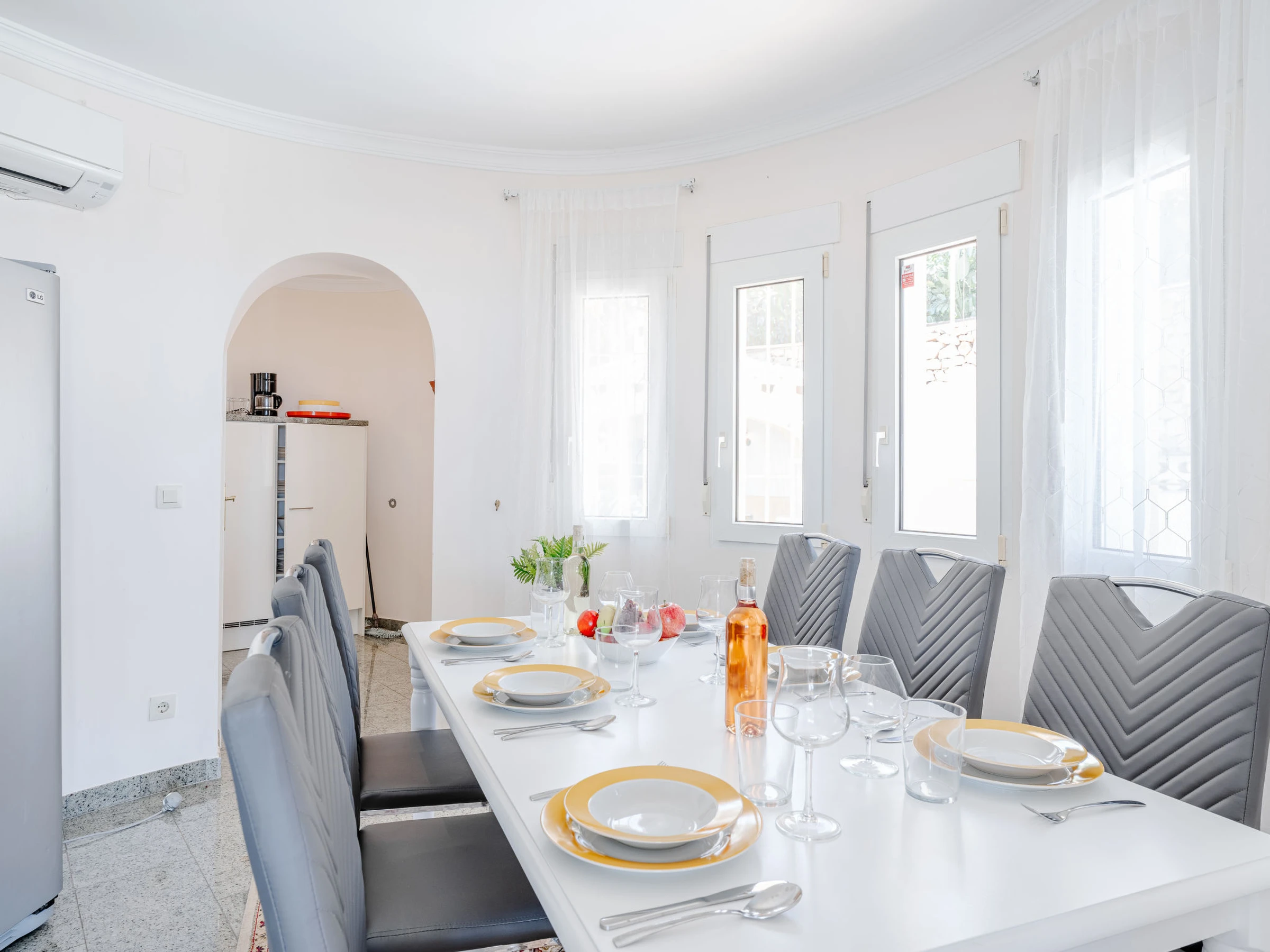 Sehr grosse, gemütliche, komfortable Villa "Rosa", auf 2 Stockwerken. Im Ort, 3 km vom Zentrum von Dénia, ruhige, sonnige Lage, 1.7 km vom Meer, 1.7 km vom Strand. Zur Alleinbenutzung: schöner, gepflegter Garten, Schwimmbad nierenförmig (10 x 5 m, 110 - 210 cm tief, saisonale Verfügbarkeit: [hidden] - [hidden] mit Innentreppe. Aussendusche, Pergola, Gartenmöbel, Grillhaus, Parkplatz auf dem Grundstück. Supermarkt 2.5 km, Restaurant 1.6 km, Café 1.5 km, Bushaltestelle 3 km, Bahnstation 3 km, Fähre 4.6 km, Sandstrand "Marineta Cassiana" 1.7 km. Sporthafen 2.4 km, Surfschule 1.7 km, Segelschule 1.7 km, Tennis 5 km. Der Besitzer akzeptiert keine Jugendgruppen.