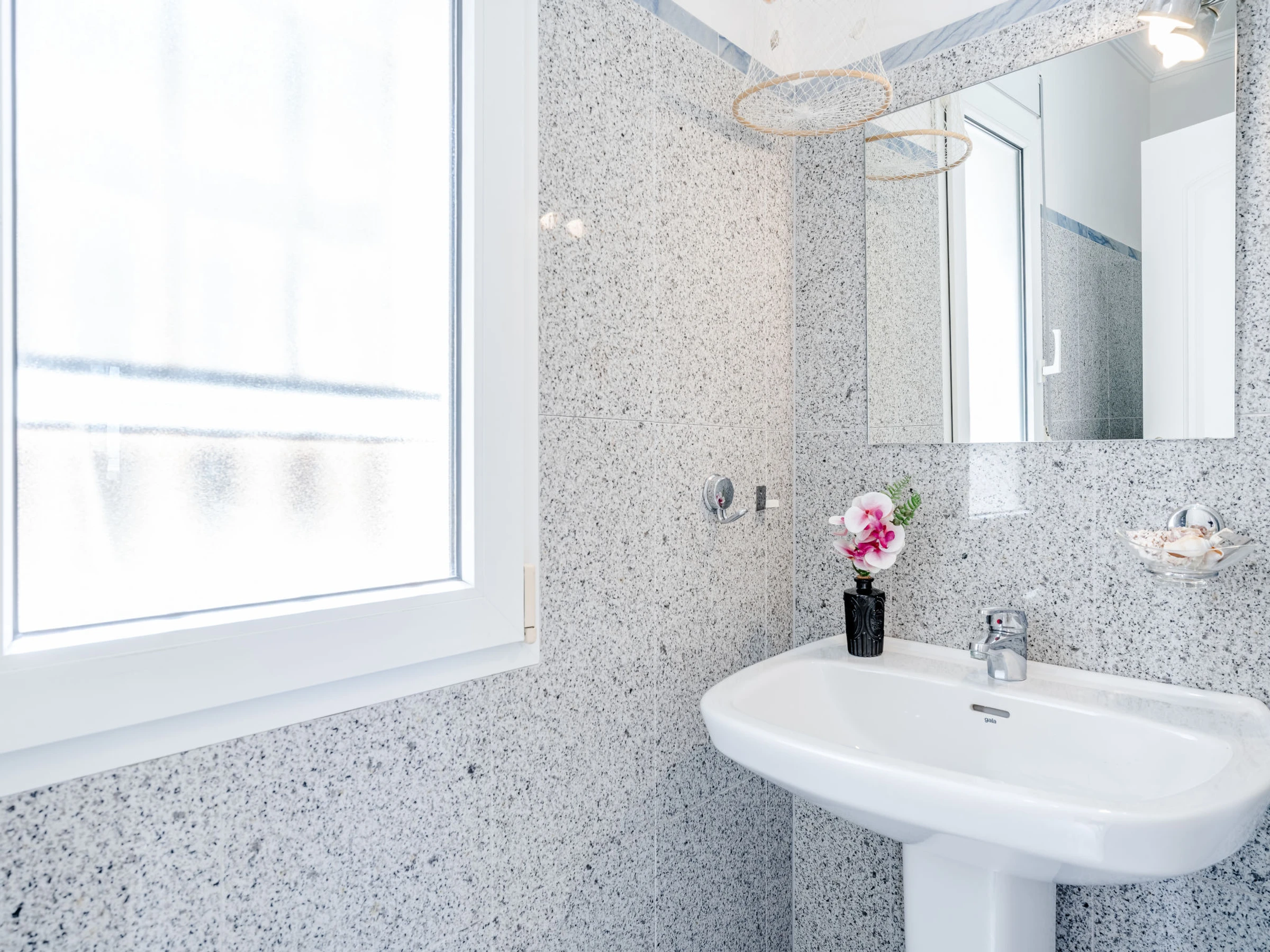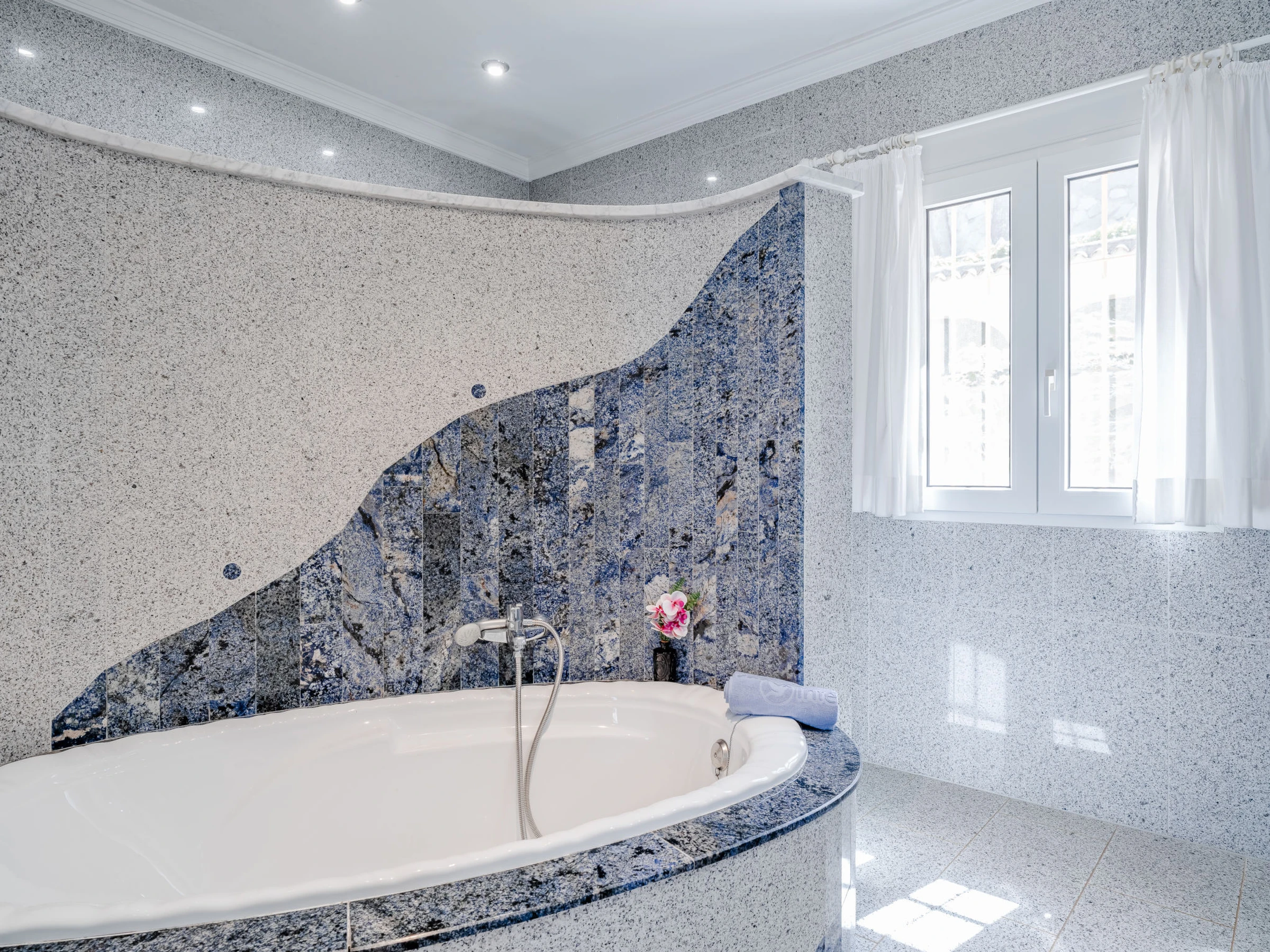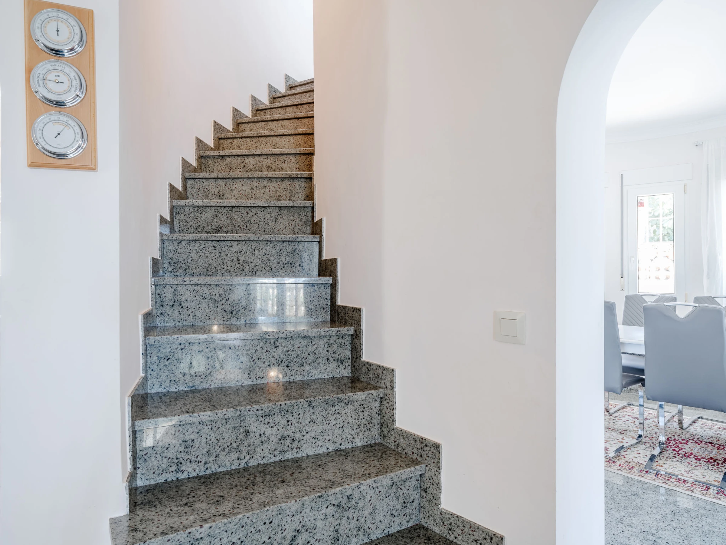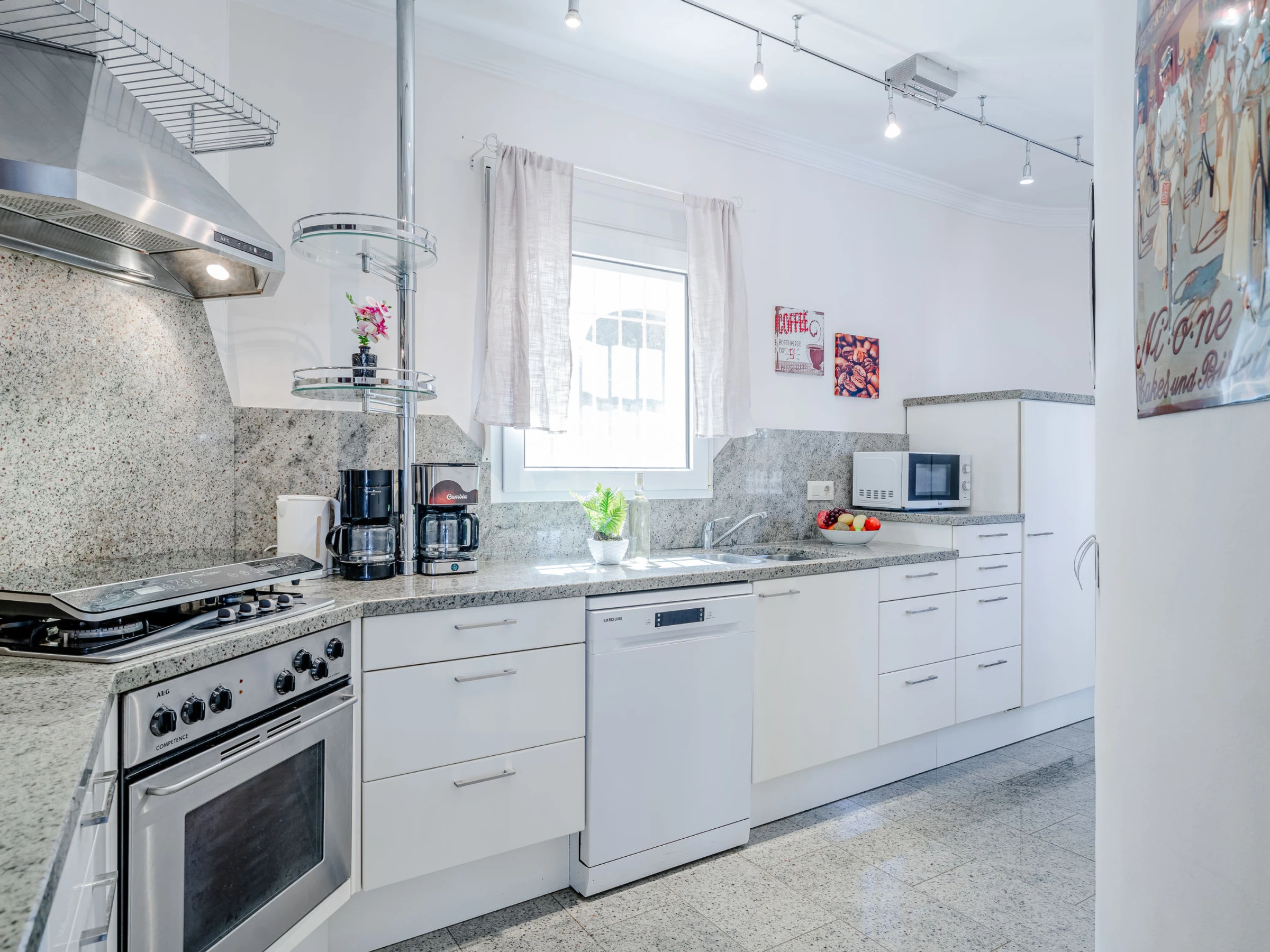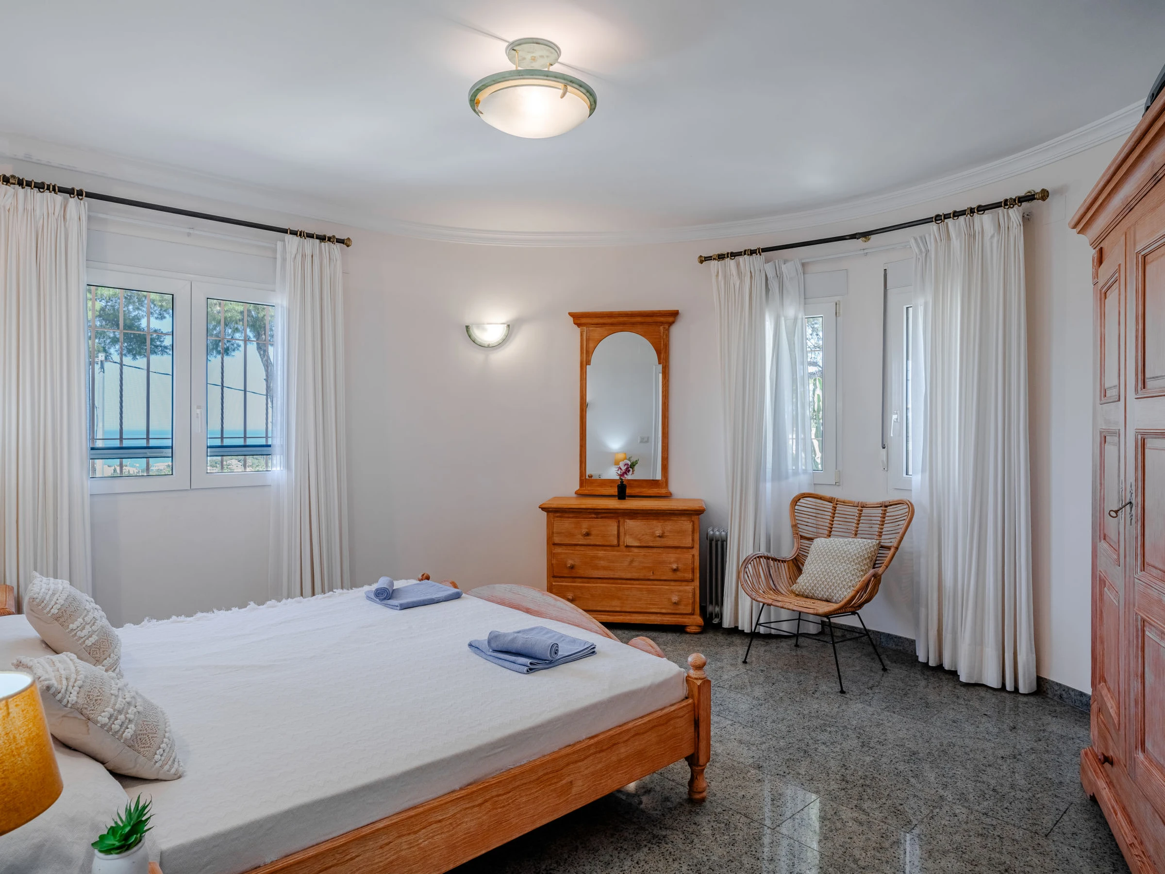 "Villa Rosa", 5-Zimmer-Haus 270 m2 auf 2 Stockwerken. Geräumig und hell, sehr komfortabel und gemütlich eingerichtet: Wohn-/Esszimmer mit offenem Kamin, Sat-TV, Klimaanlage, Ventilator und Warmluftheizung. Ausgang zur Terrasse. 1 Zimmer mit 1 franz. Bett (2 x 90 cm, Länge 200 cm), Klimaanlage und Warmluftheizung. Offene Küche (4 Kochplatten, Backofen, Geschirrspüler, 2 Glaskeramikplatten, Toaster, Mikrowelle, Tiefkühler, elektrische Kaffeemaschine). Sep. WC, Bad/Dusche/WC. Bodenheizung. Unteres Geschoss: Wohn-/Esszimmer mit Klimaanlage und Warmluftheizung. Obergeschoss: 1 Zimmer mit 2 Betten (90 cm, Länge 200 cm). 1 Zimmer mit 1 franz. Bett (2 x 90 cm, Länge 200 cm), Dusche/WC, Klimaanlage und Warmluftheizung. Gartensitzplatz. Terrassenmöbel, Gartengrill, Loggia. Sehr schöne Sicht auf das Meer. Zur Verfügung: Waschmaschine, Wäschetrockner, Bügeleisen, Haartrockner. Internet (WLAN, gratis). [hidden] // Reg. Nr.: ESFCTU00000305500025946700000000000000000AT-437917-A3