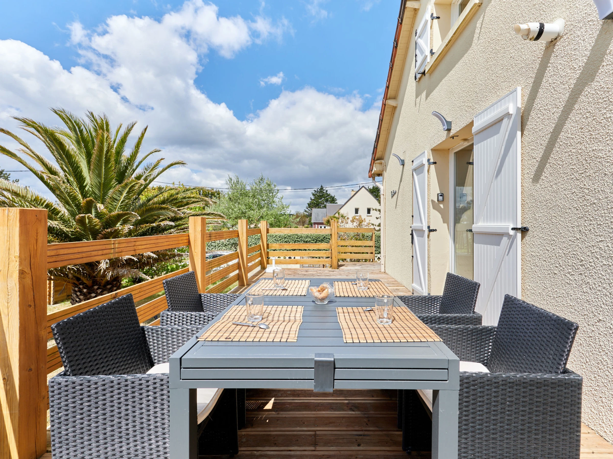 4-Zimmer-Haus 90 m2 auf 2 Stockwerken. Komfortabel und schön eingerichtet: Wohn-/Esszimmer mit TV (Flachbildschirm). 1 Zimmer mit 1 franz. Bett (140 cm, Länge 190 cm) mit sep. WC. Offene Küche (Backofen, Geschirrspüler, 4 Induktionskochplatten, Toaster, Wasserkocher, Mikrowelle, elektrische Kaffeemaschine). Dusche. G-Heizung. Obergeschoss: 1 Zimmer mit 1 franz. Bett (140 cm, Länge 190 cm). 1 Zimmer mit 2 Betten (90 cm, Länge 190 cm) mit Dusche/WC. Terrasse 30 m2, Südlage und Westlage. Terrassenmöbel, Gartengrill, Liegestühle (2). Zur Verfügung: Waschmaschine, Wäschetrockner. Internet (WLAN, gratis). Bitte beachten: Maximal 1 Haustier/Hund erlaubt. Rauchmelder. Inserat einer Privatperson nach Artikel 155, IV, CGI.