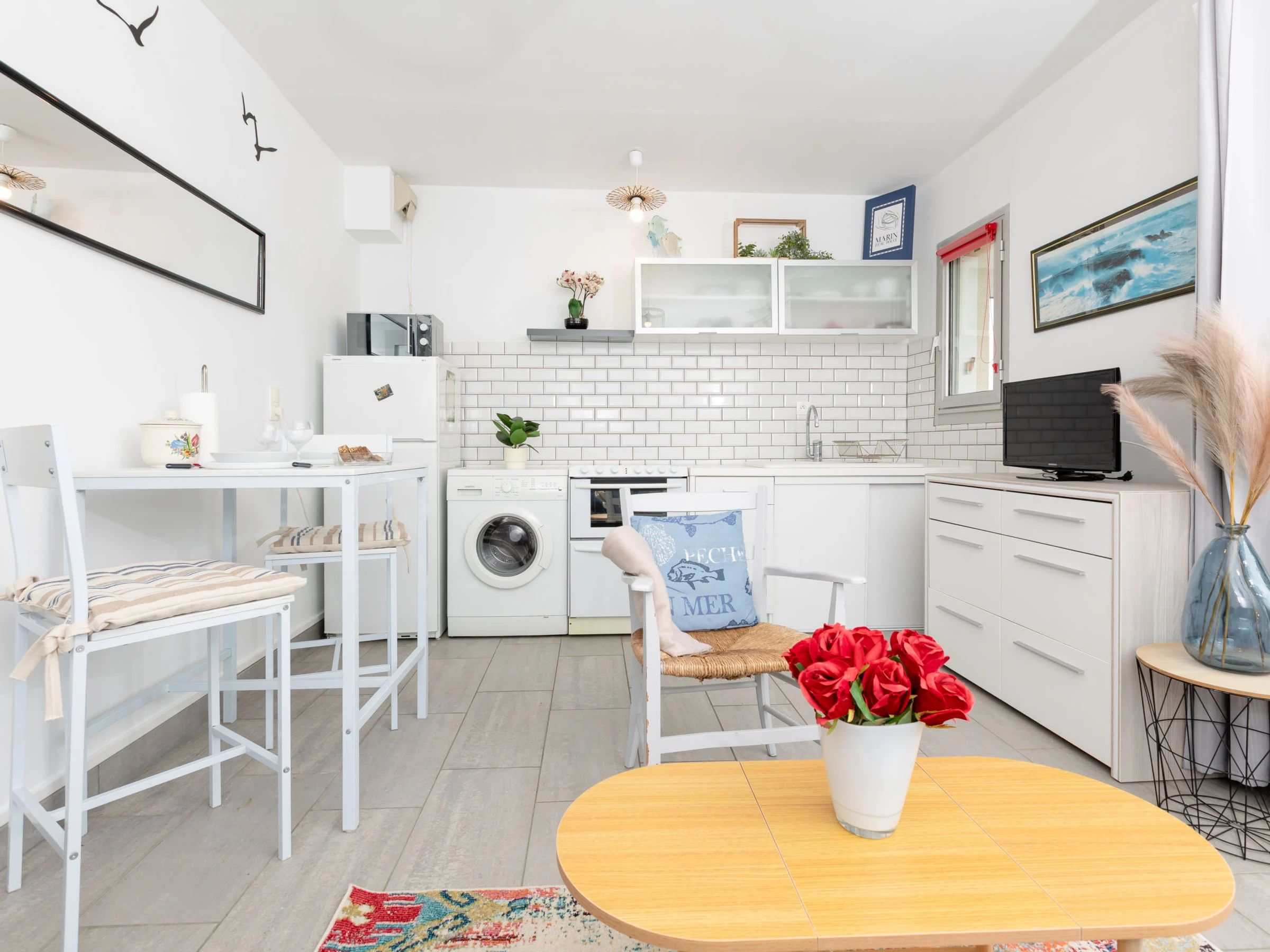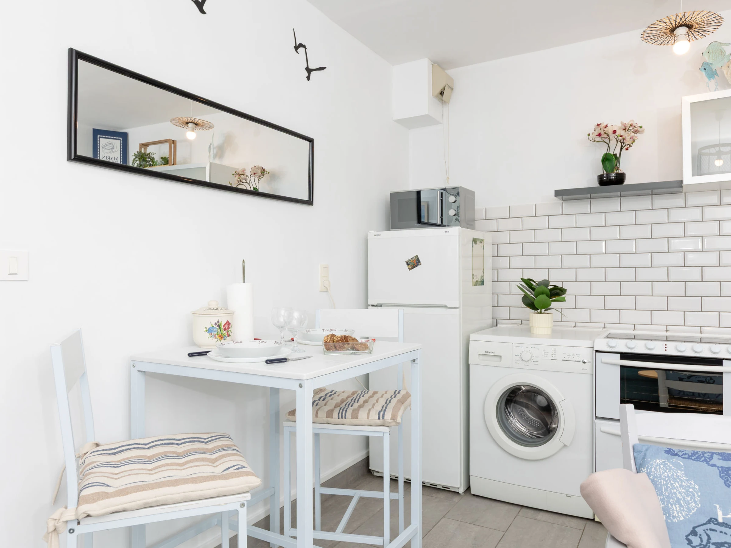 "L'Albatros", 1-Zimmer-Studio 21 m2 im 1. Stock. Einfach und komfortabel eingerichtet: Wohn-/Schlafzimmer mit 1 Doppeldiwanbett (1 x 160 cm, Länge 190 cm), TV (Flachbildschirm). Ausgang zum Balkon. Kochnische (Backofen, Geschirrspüler, 4 Induktionskochplatten, Toaster, Wasserkocher, Mikrowelle, elektrische Kaffeemaschine). Bad, sep. WC. E-Heizung. Balkon 7 m2, Südlage. Balkonmöbel. Zur Verfügung: Waschmaschine, Bügeleisen, Haartrockner. Internet (WLAN, extra). Parkplatz. Bitte beachten: Wohnung auf Strassenseite. Nichtraucher-Unterkunft. Rauchmelder. Inserat einer Privatperson nach Artikel 155, IV, CGI.
