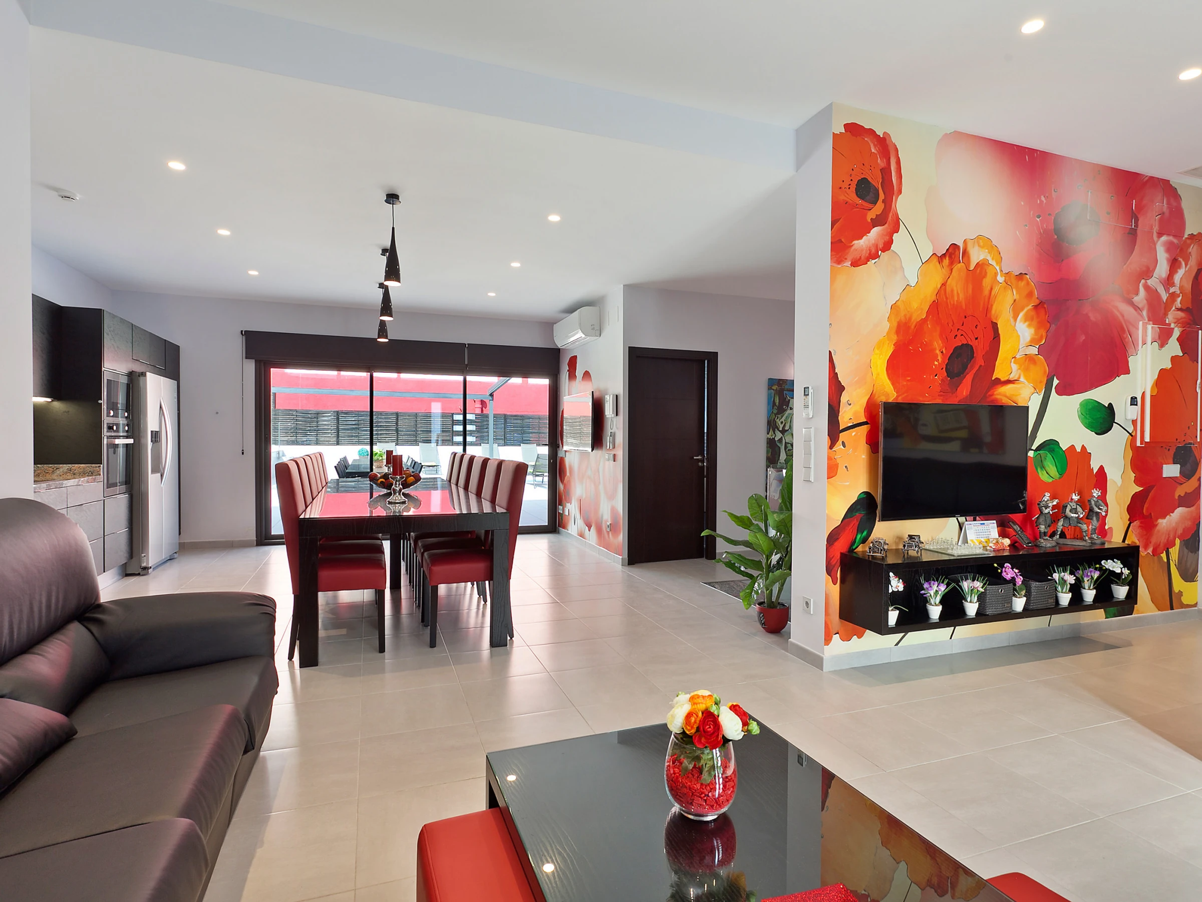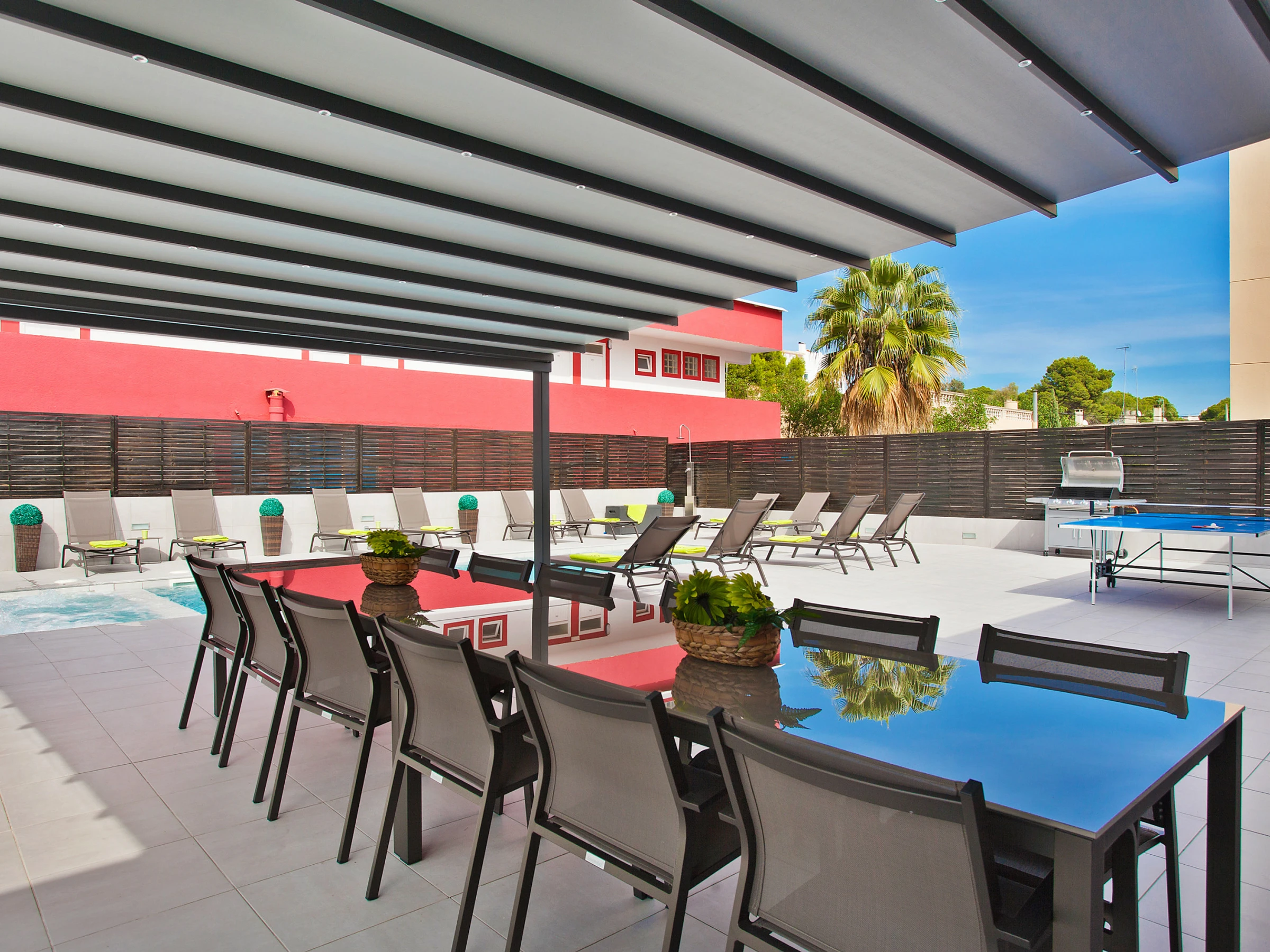 Im Außenbereich bietet die Villa Maravilla einen wunderschönen Swimmingpool, bequeme Sonnenliegen, einen möblierten Bereich für gemeinsame Snacks, einen Chill-out-Bereich und einen exklusiven Jacuzzi. Es gibt auch einen Garagenbereich. Die Villa Maravilla liegt nur wenige Meter vom Strand, von Restaurants und Freizeitangeboten entfernt und hat eine gute Anbindung an die Autobahn, um in alle Teile der Insel zu gelangen.