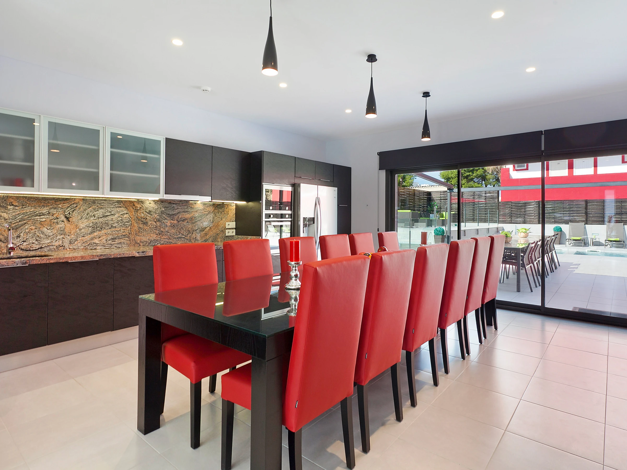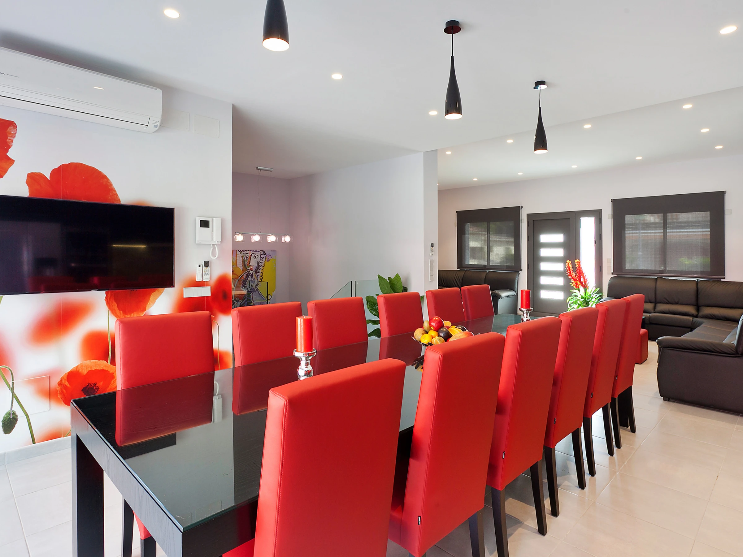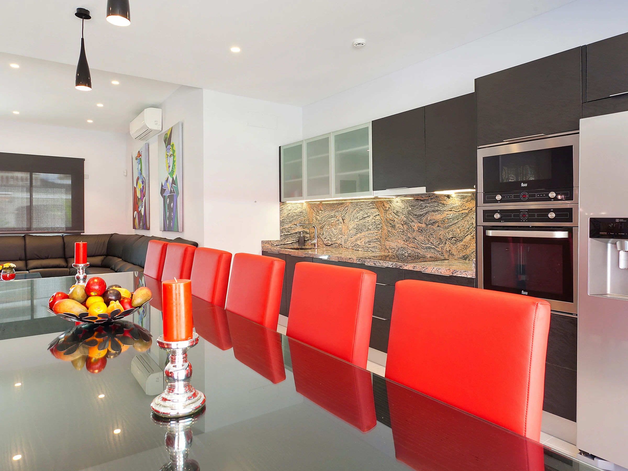 Die Villa Maravilla ist eine luxuriöse Villa auf zwei Etagen mit hochwertigen Ausstattungen. Sie verfügt über sechs Schlafzimmer, alle mit Klimaanlage und eigenem Bad, sowie ein Gästebad in der Nähe des Essbereichs. Die Einrichtung ist modern und einladend, mit Designermöbeln und zeitgenössischer Dekoration. Die Küche ist komplett ausgestattet und der Essbereich verfügt über einen großen Esstisch, an dem alle Gäste Platz finden.