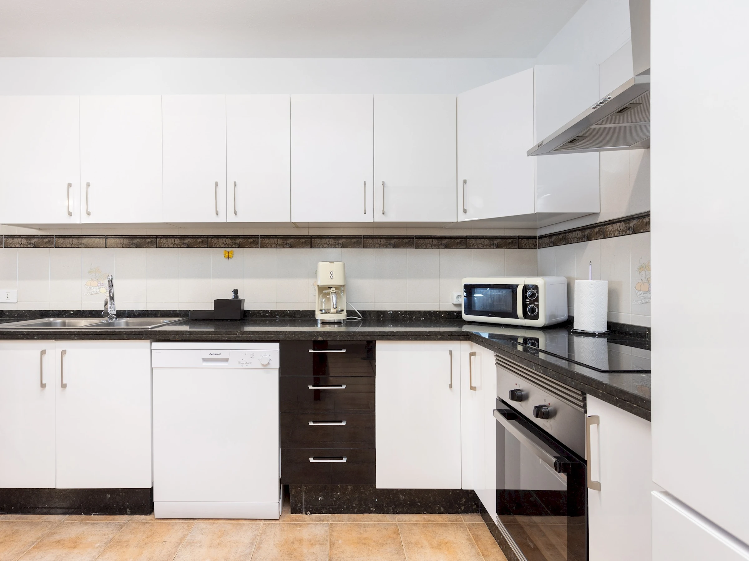 Dieses küche, ist ausgestattet in kühlschrank, mikrowelle, backofen, spülmaschine und kaffeemaschine.