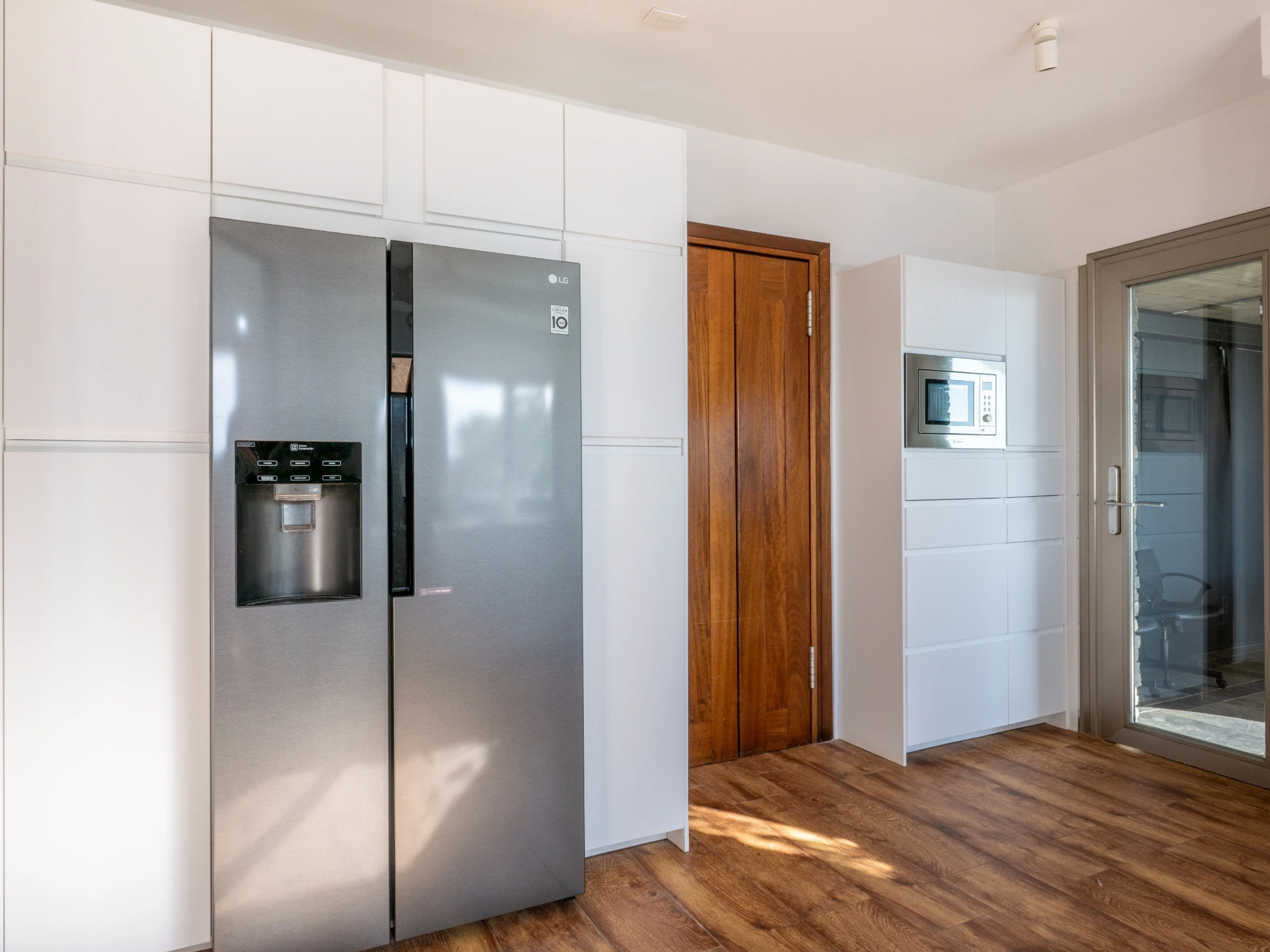 Dieses separate küche, mit ceranfeld, ist ausgestattet in kühlschrank, mikrowelle, backofen, gefrierschrank, spülmaschine, geschirr/besteck, kochutensilien, kaffeemaschine, friteuse und toaster.
