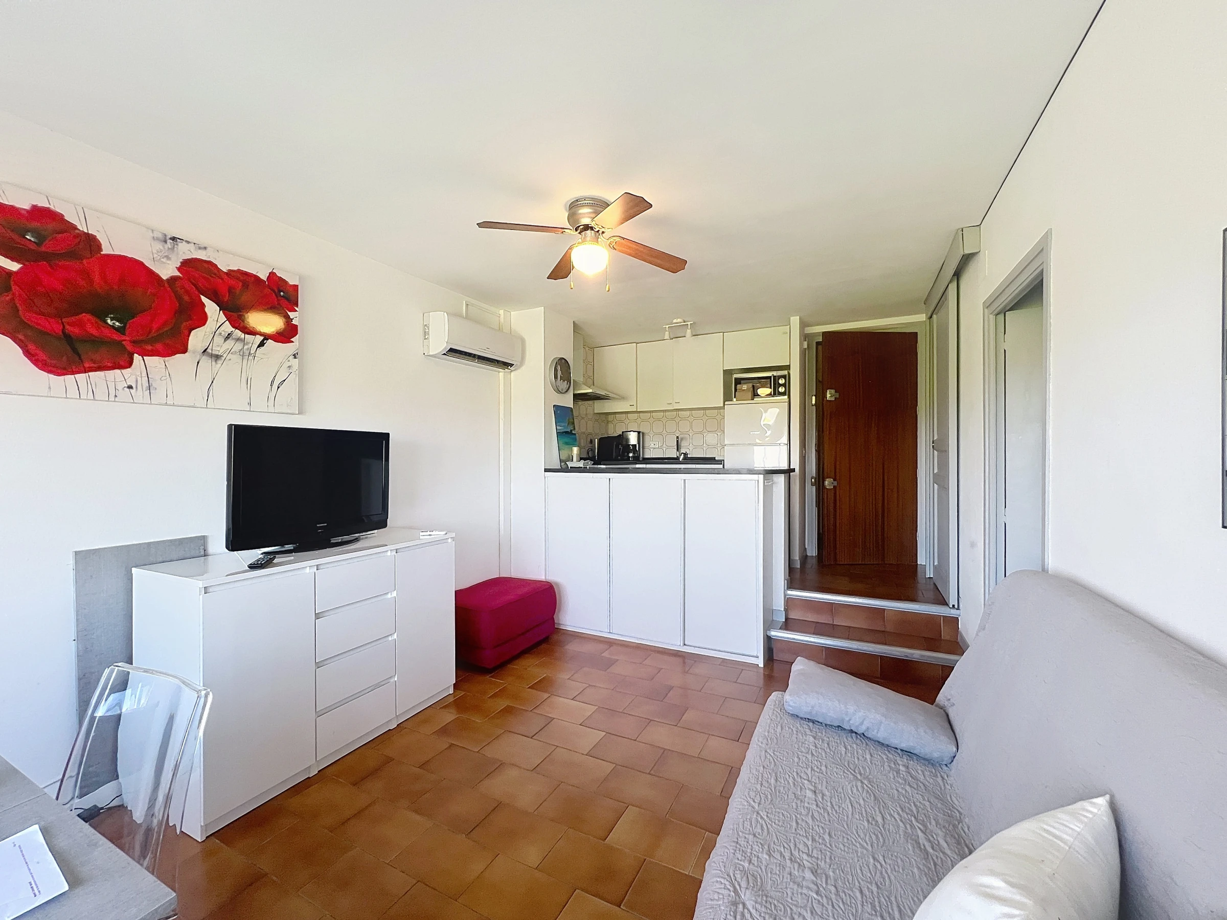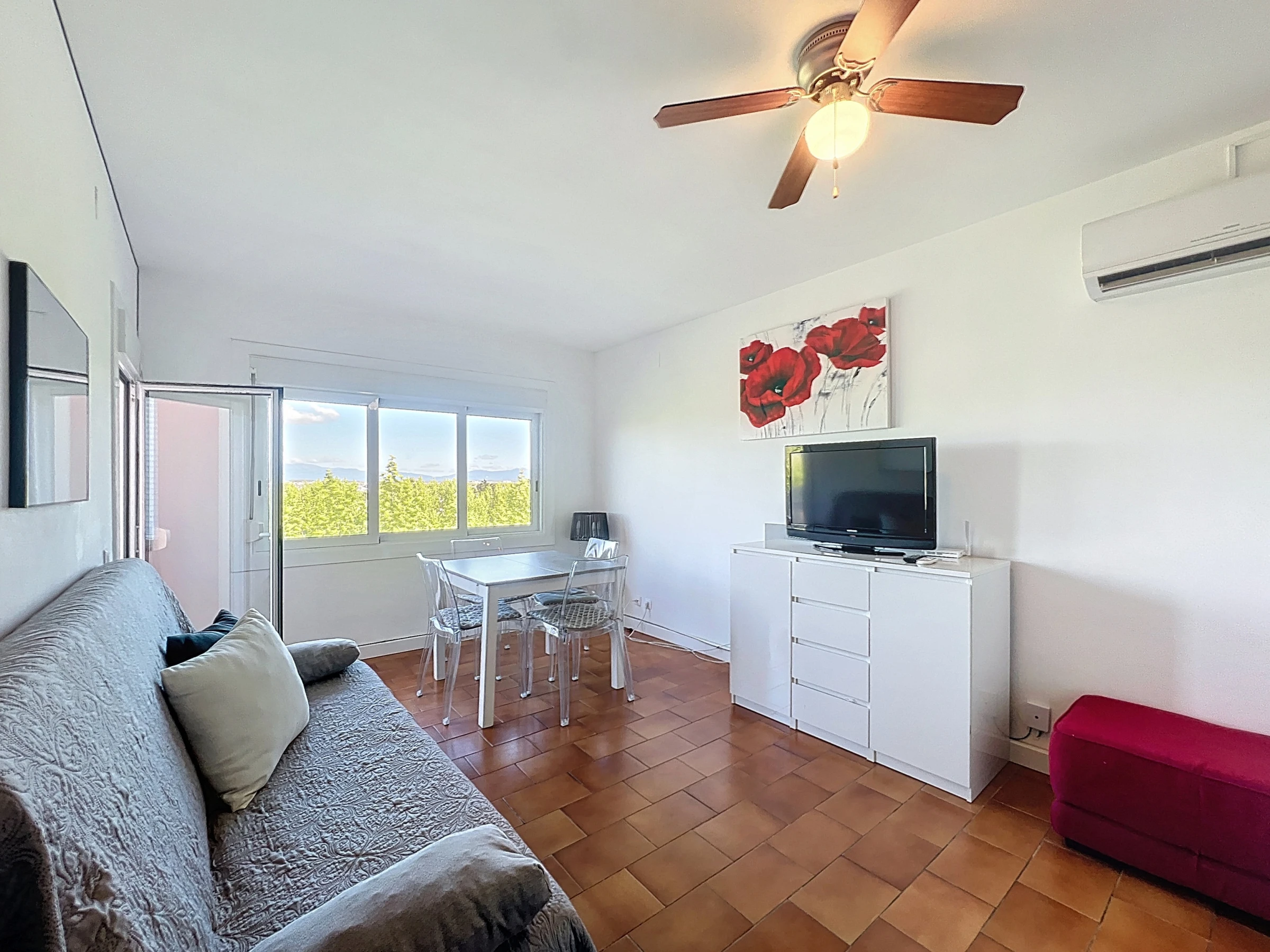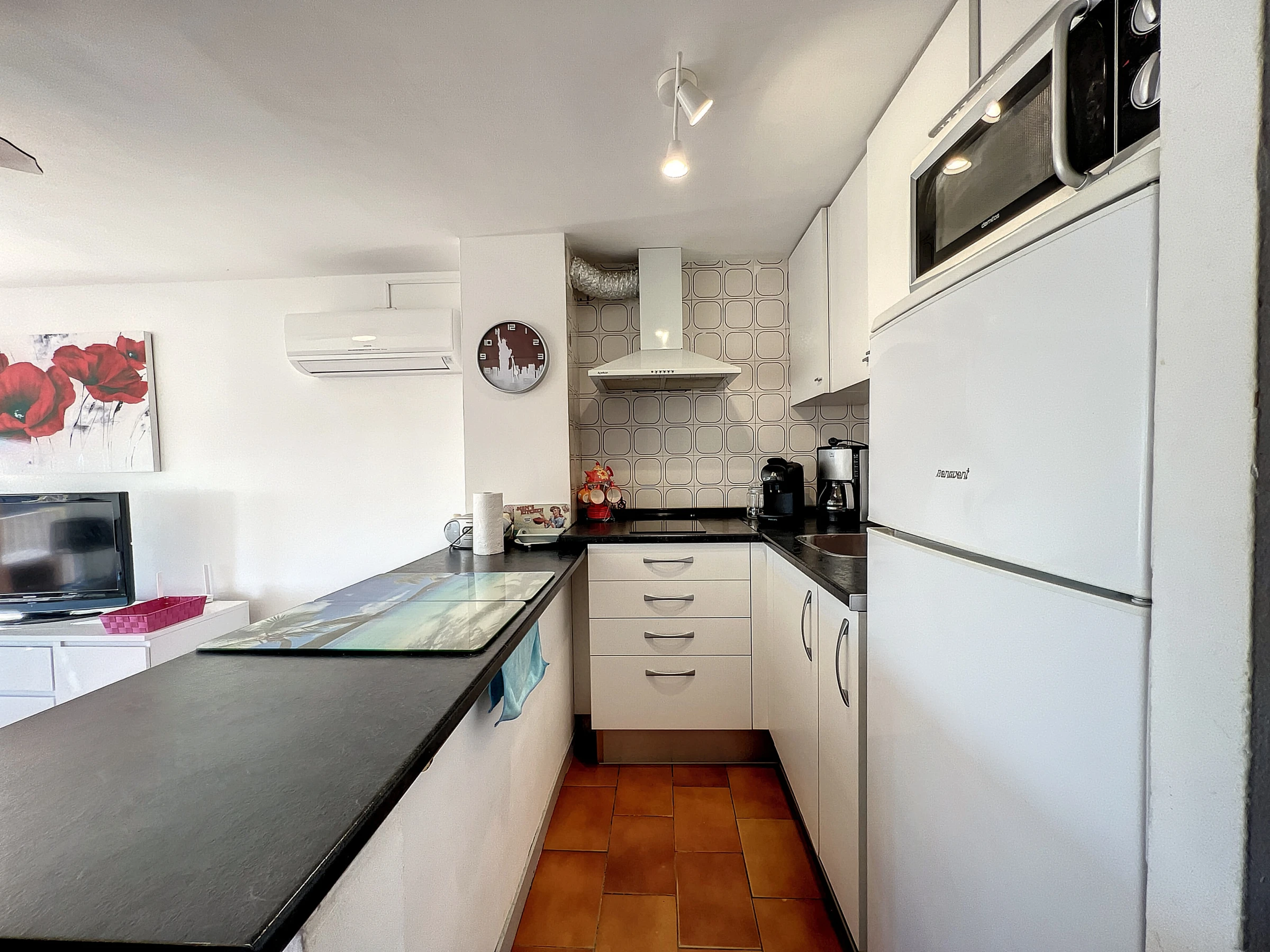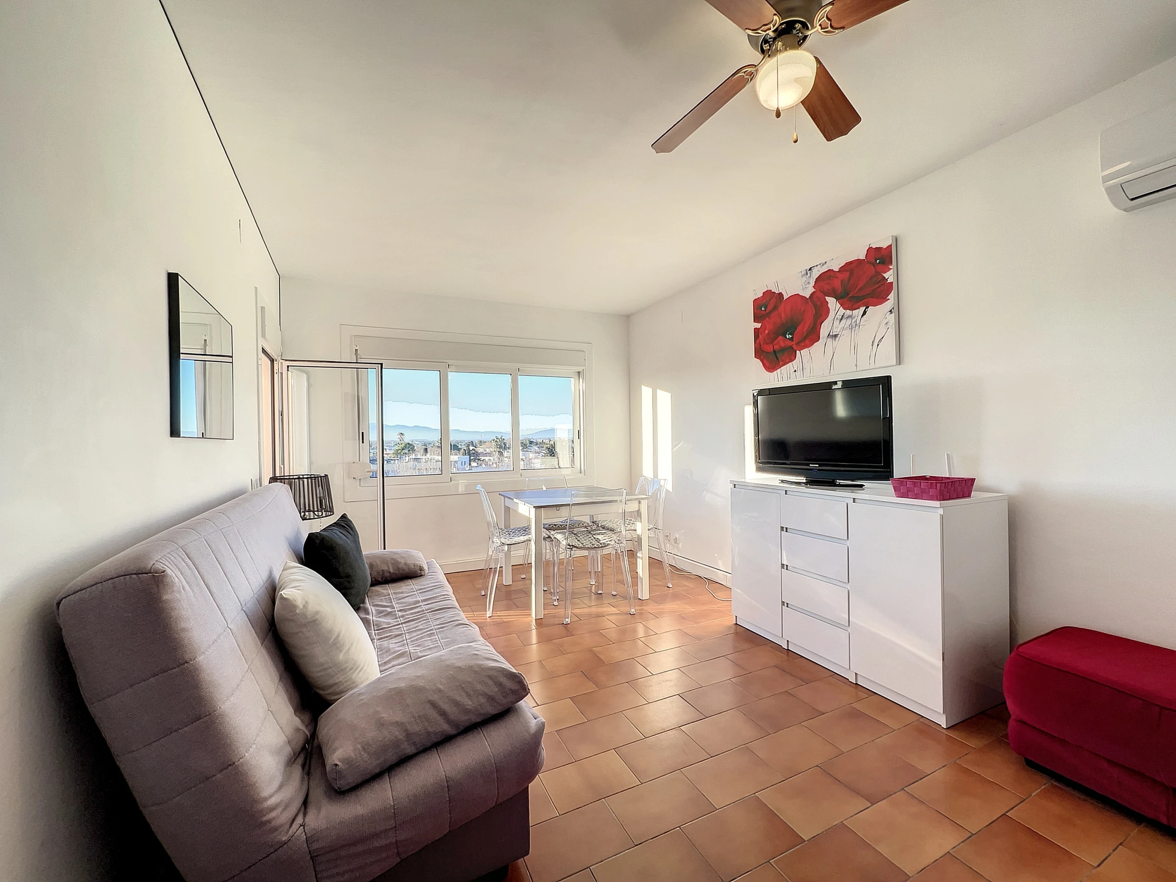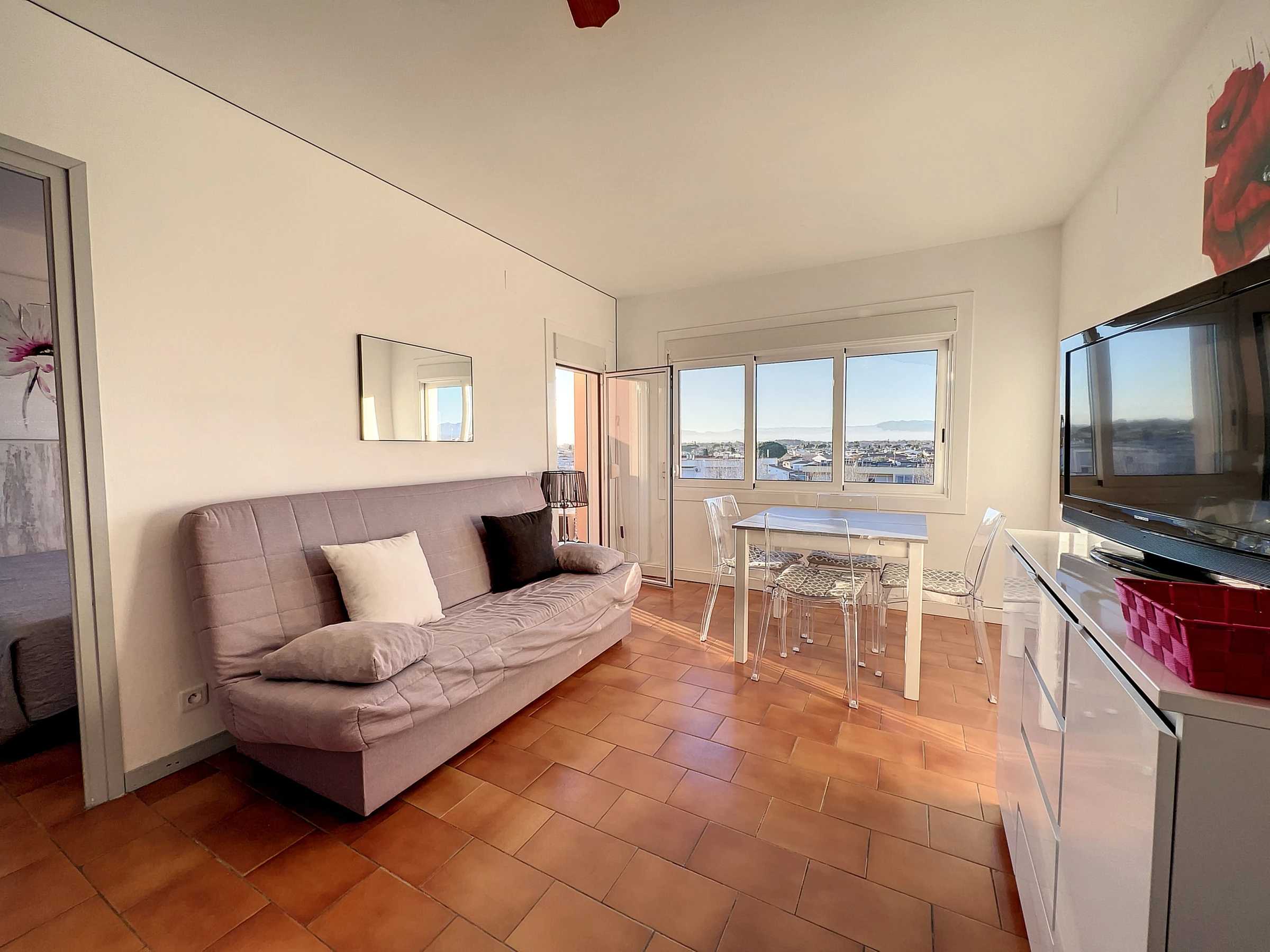 Diese schöne 35m2 große Wohnung besteht aus einem Schlafzimmer mit Dusche, einem Badezimmer mit Badewanne und Waschmaschine, einer offenen Küche und einem hellen Wohnbereich mit Blick auf Empuriabrava, mit Terrassenzugang.