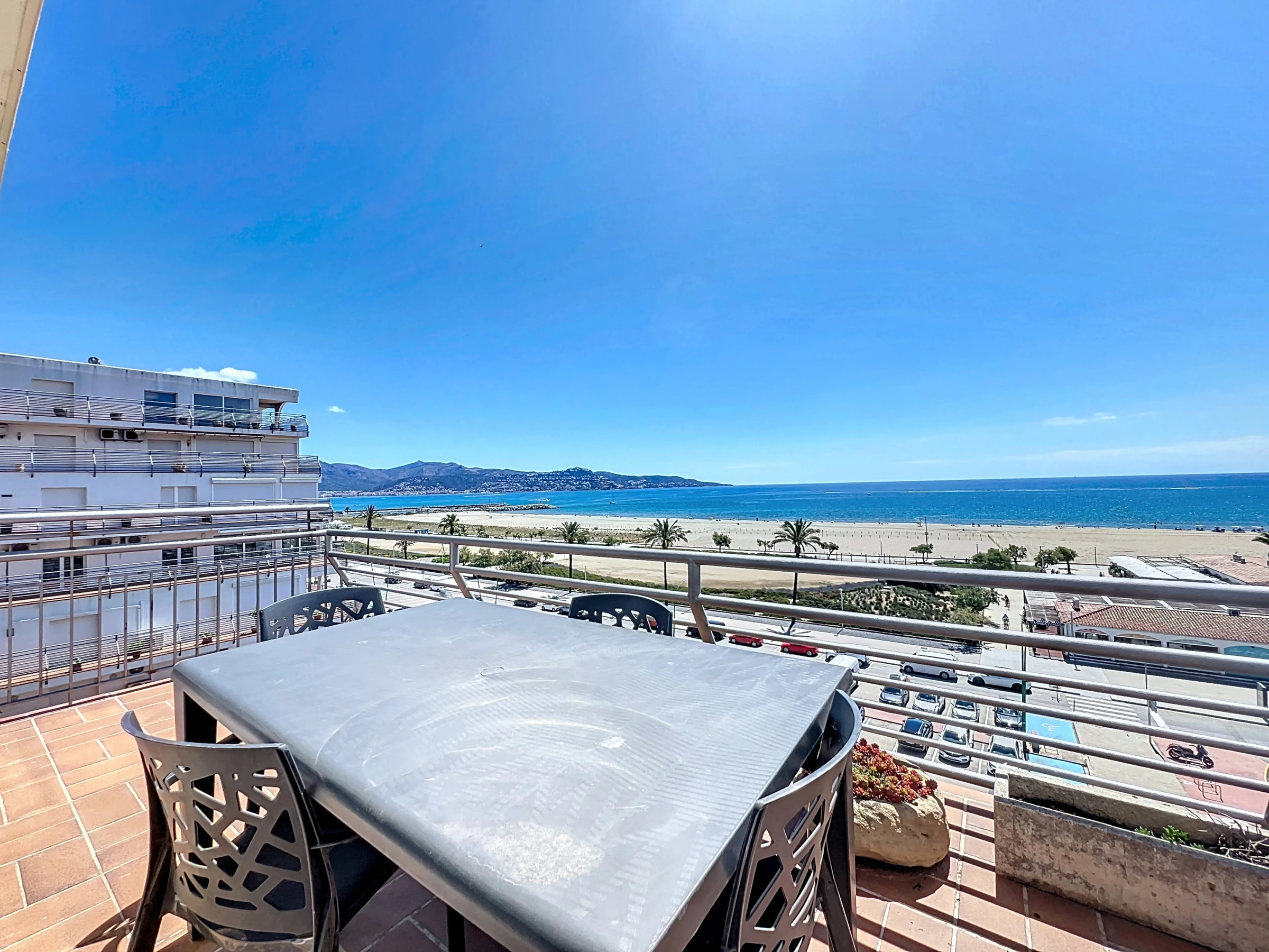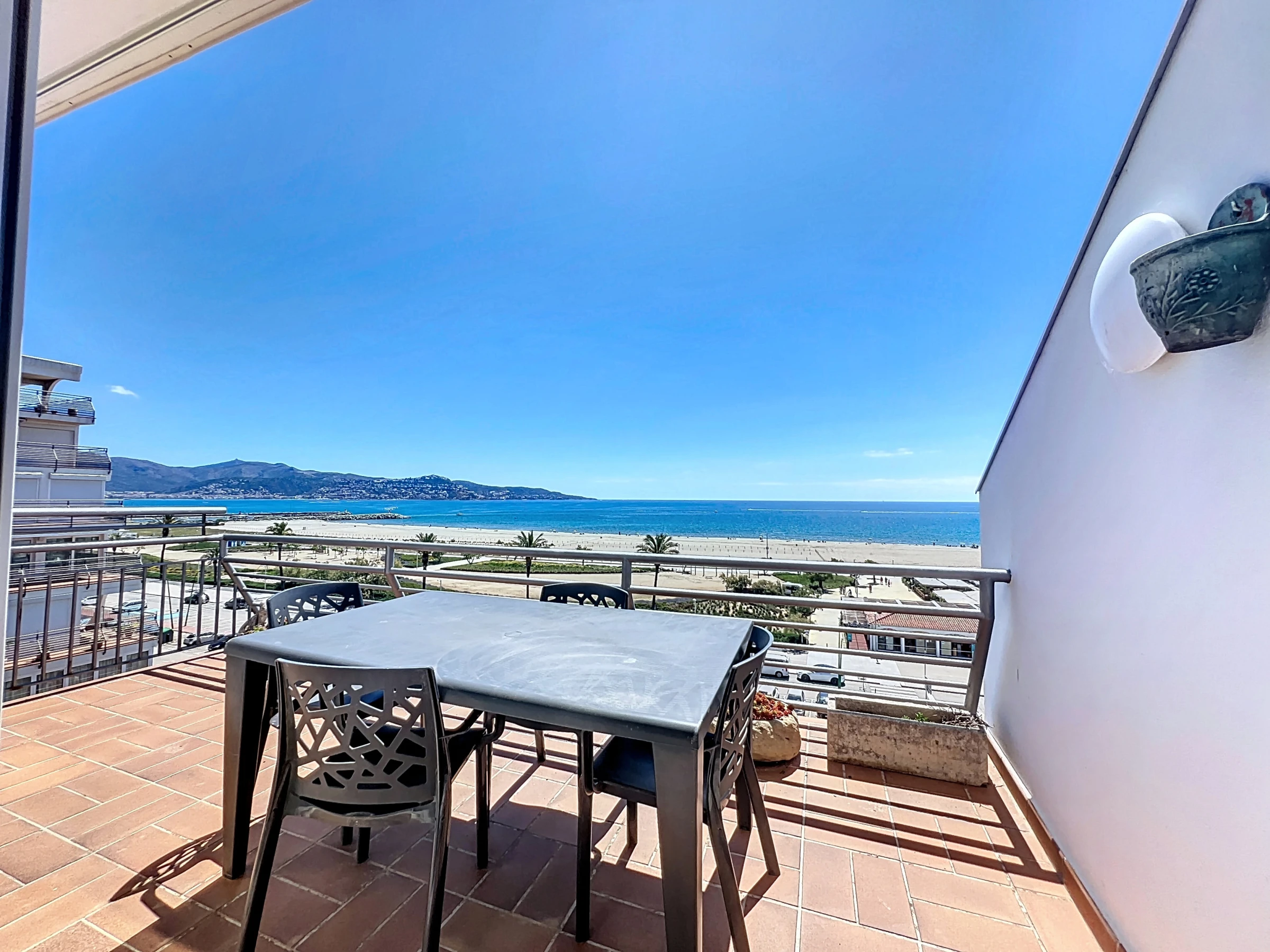 Panorama-Meerblick-Apartment mit großer Terrasse nur wenige Schritte vom Strand entfernt.
