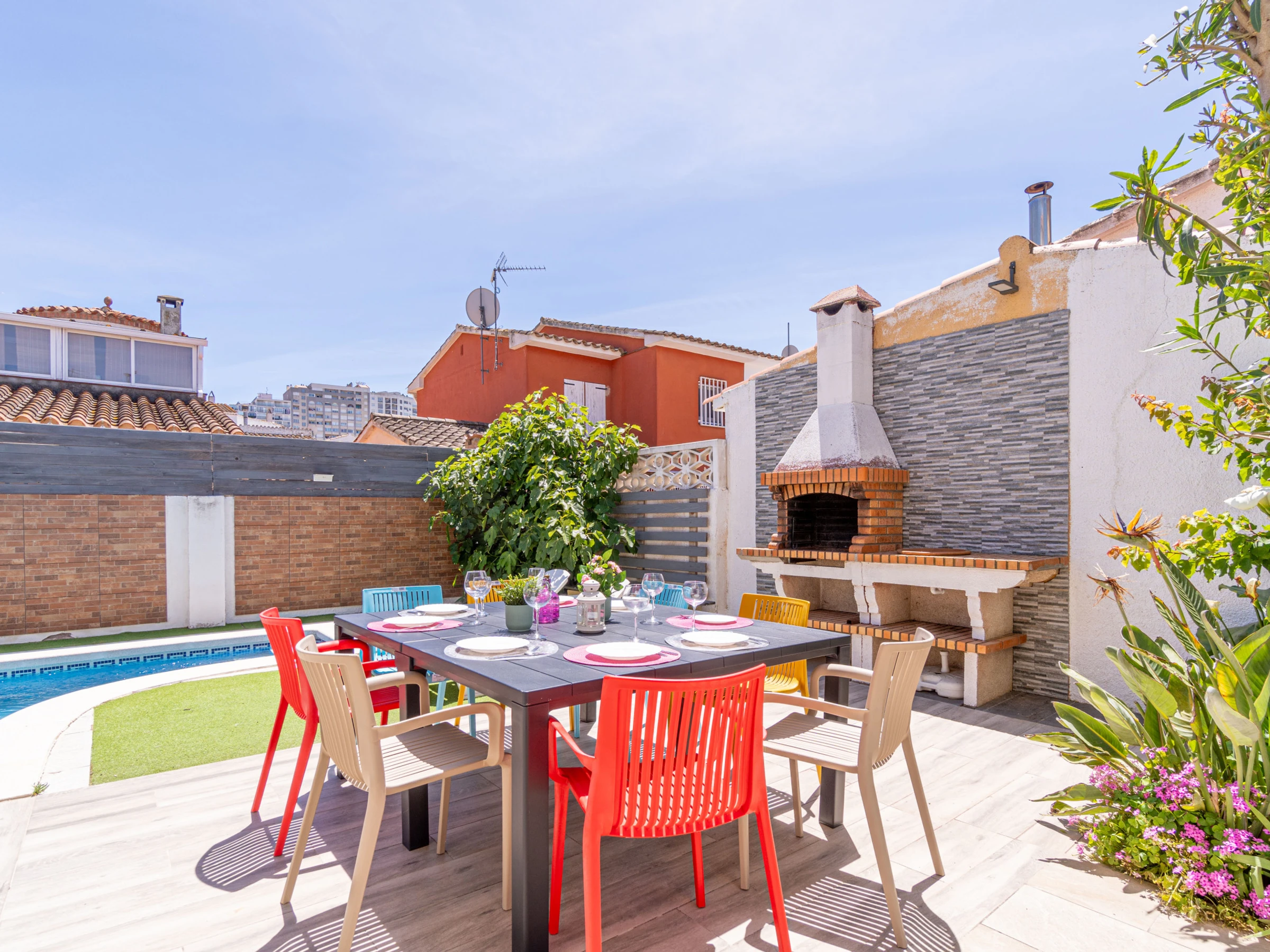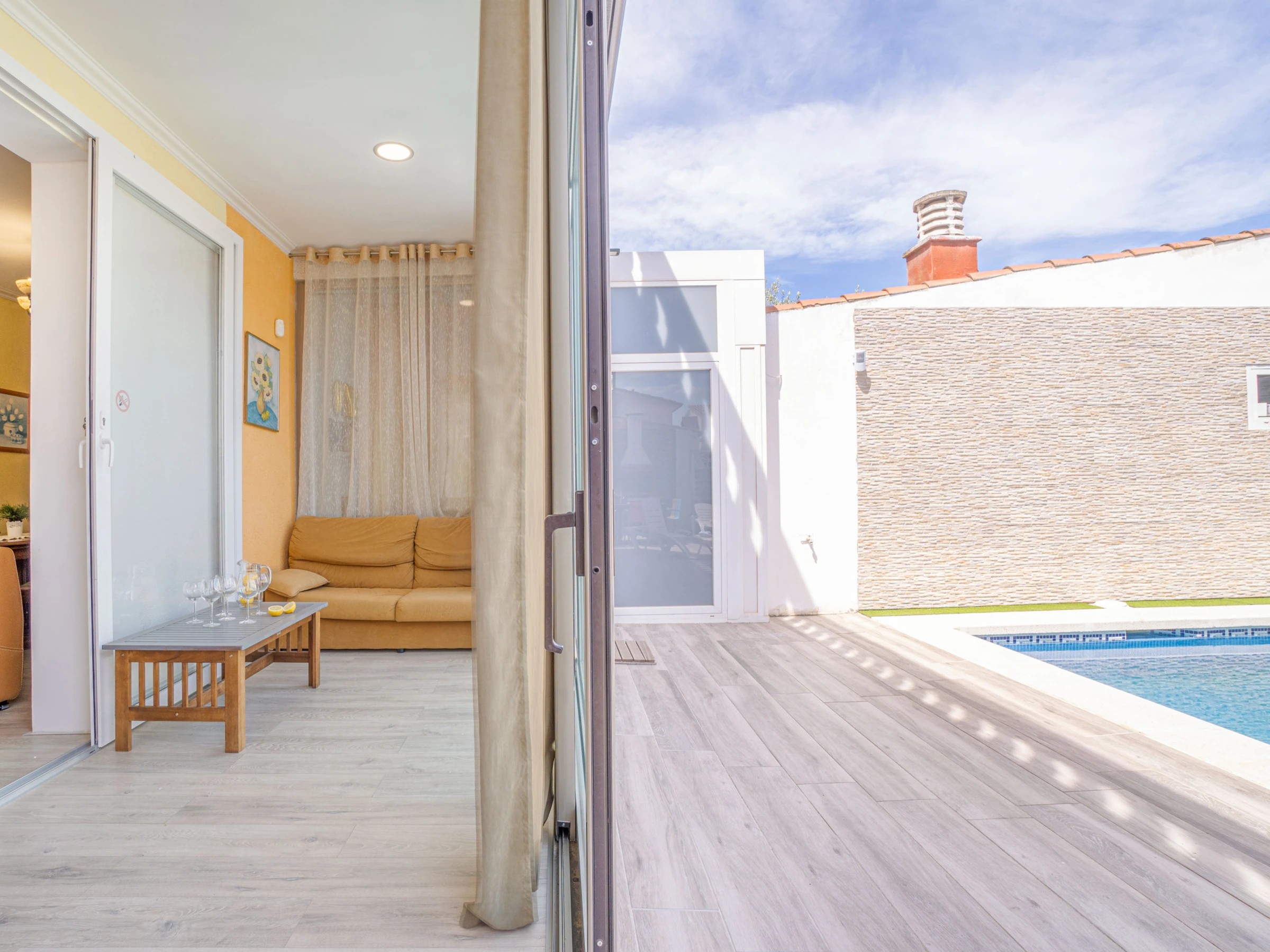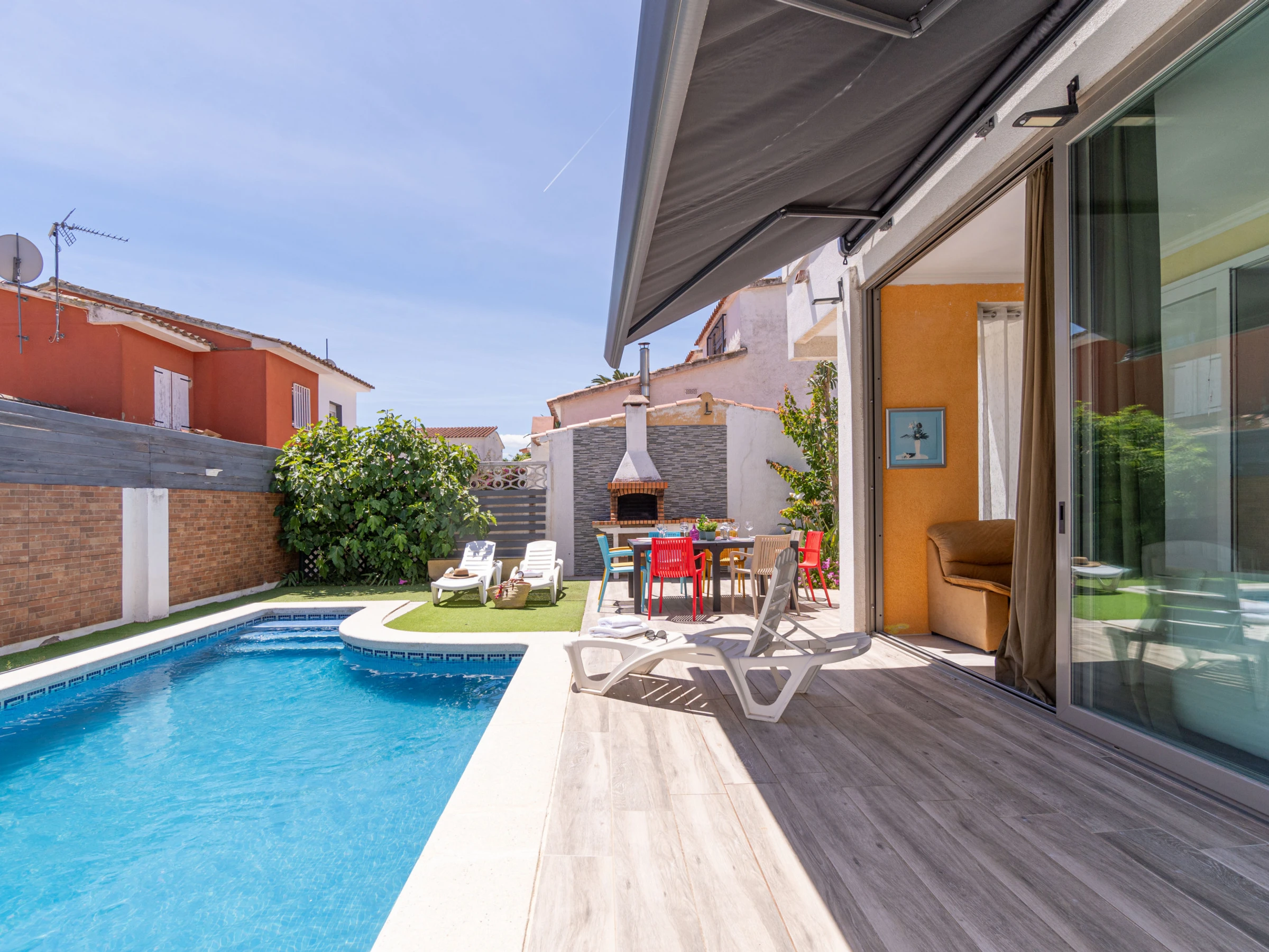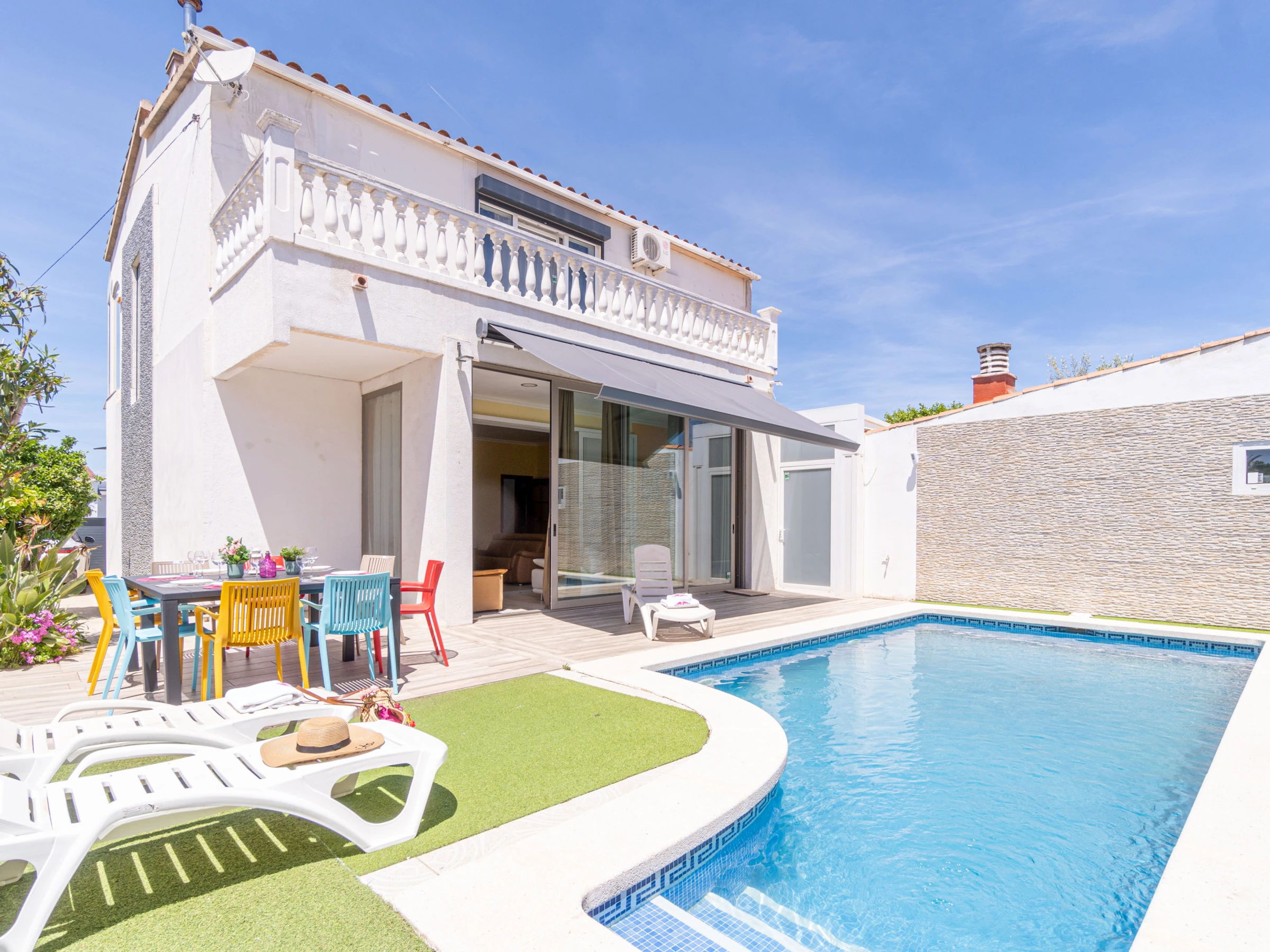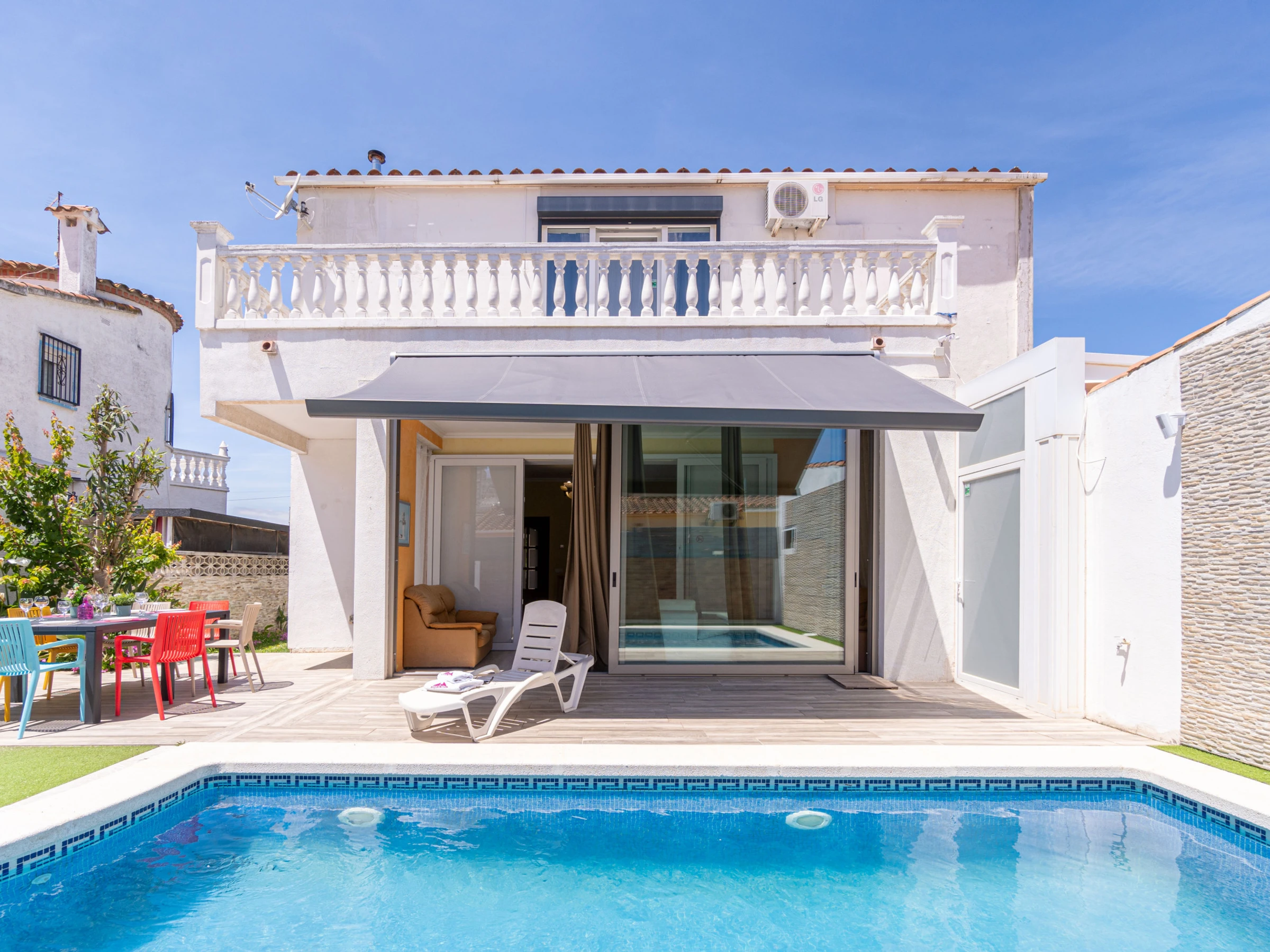 Die Villa mit privatem Pool in Empuriabrava verfügt über 3 Schlafzimmer und bietet Platz für 8 Personen. Mit 200 m² ist sie eine komfortable, geräumige und gut ausgestattete Unterkunft mit Blick auf den Pool, ideal für einen Familienurlaub an der Costa Brava.