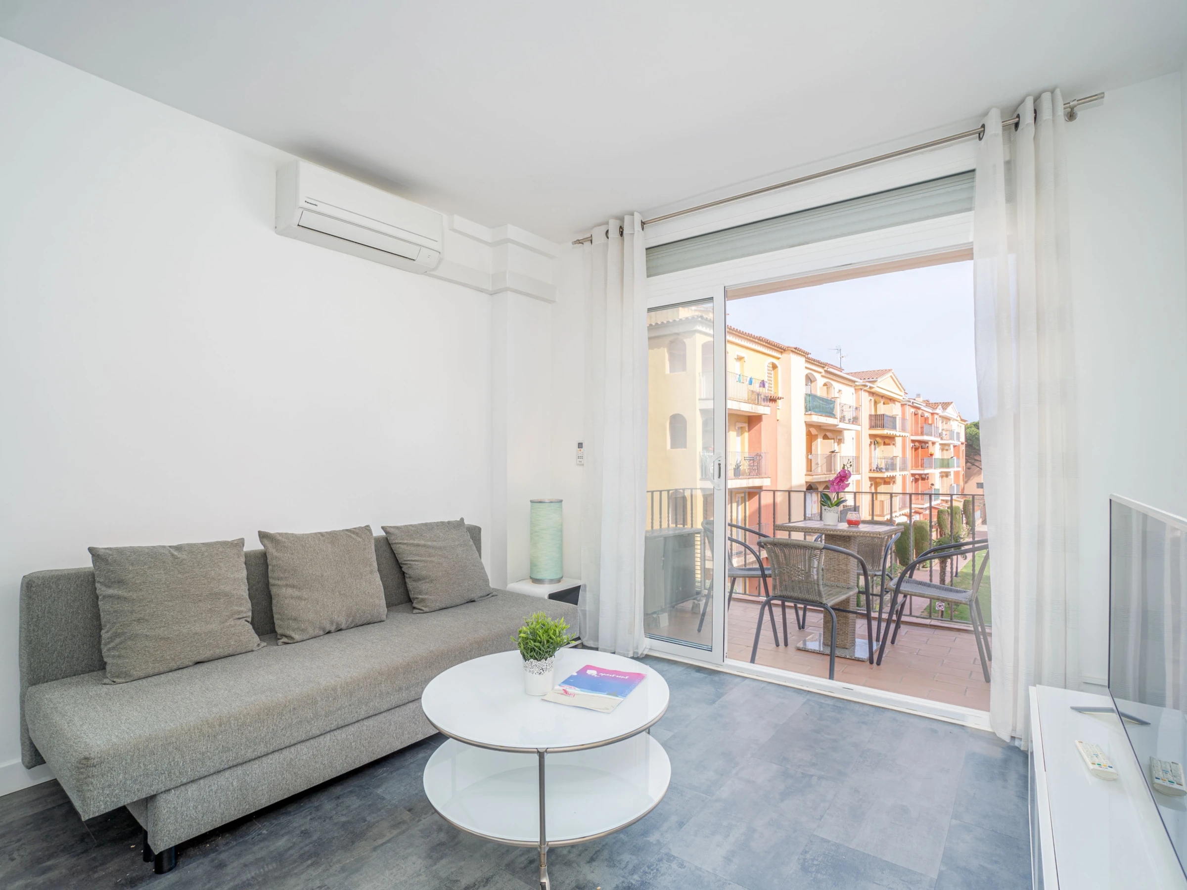 Die Unterkunft verfügt über Gartenmöbel, Terrasse, Bügeleisen, Internetzugang (WLAN), elektrische Heizkörper, Klimaanlage im Wohnzimmer, Gemeinschaftspool und Fernseher.