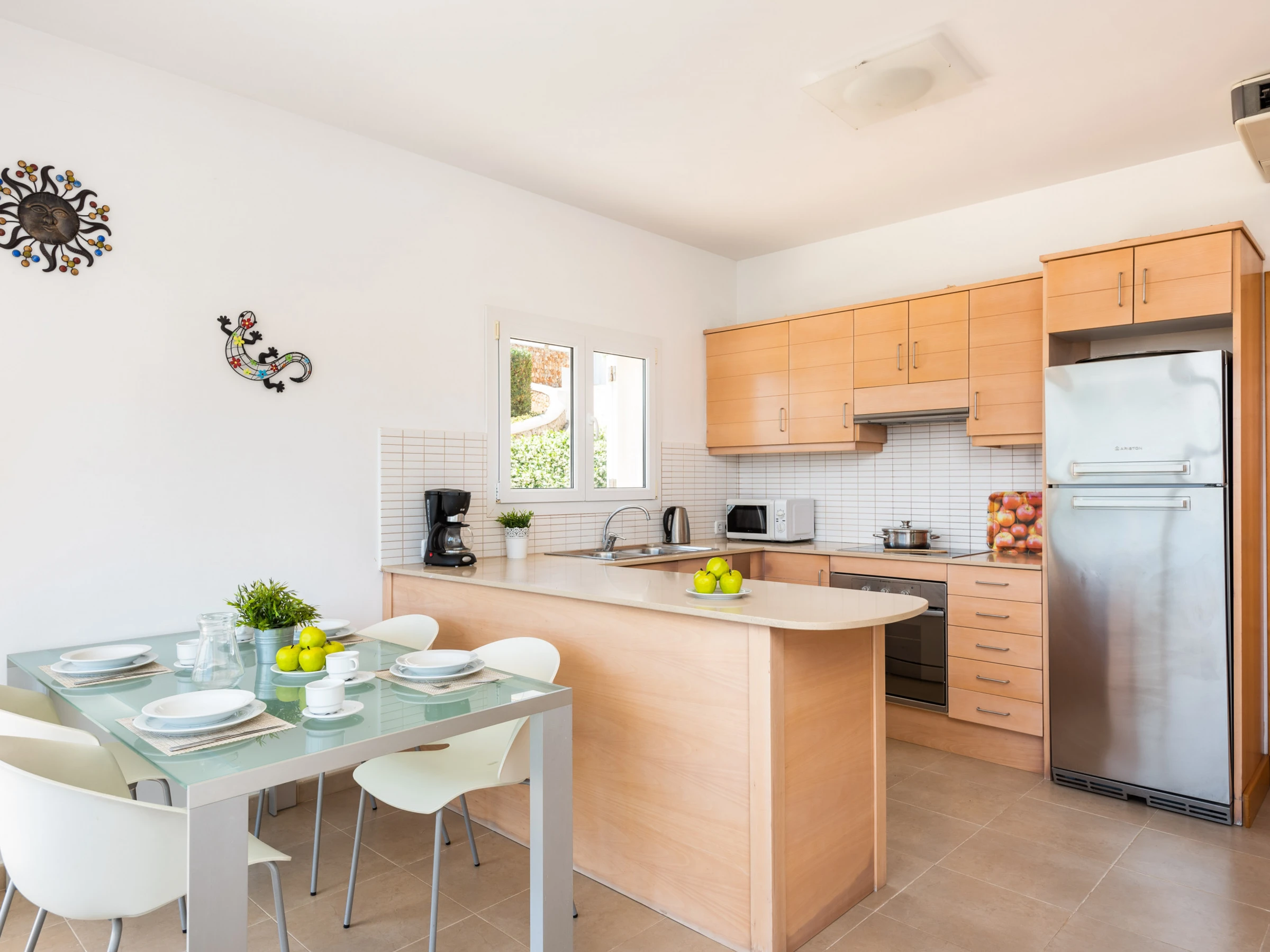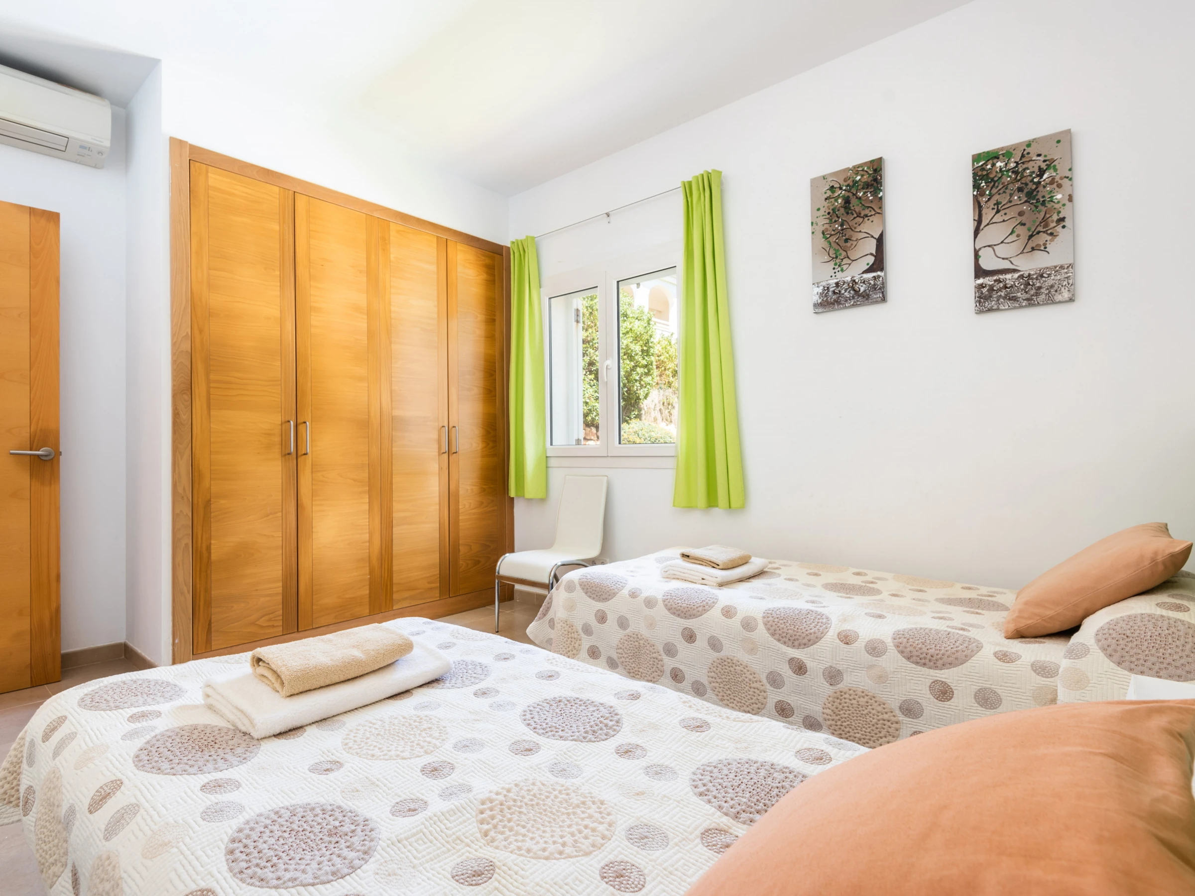 Die Villa verfügt über eine Wohnfläche von 203 m² und bietet drei klimatisierte Doppelzimmer: zwei mit Einzelbetten und eines mit Doppelbett und Bad en suite. Zusätzlich gibt es ein zweites komplettes Badezimmer mit Badewanne.