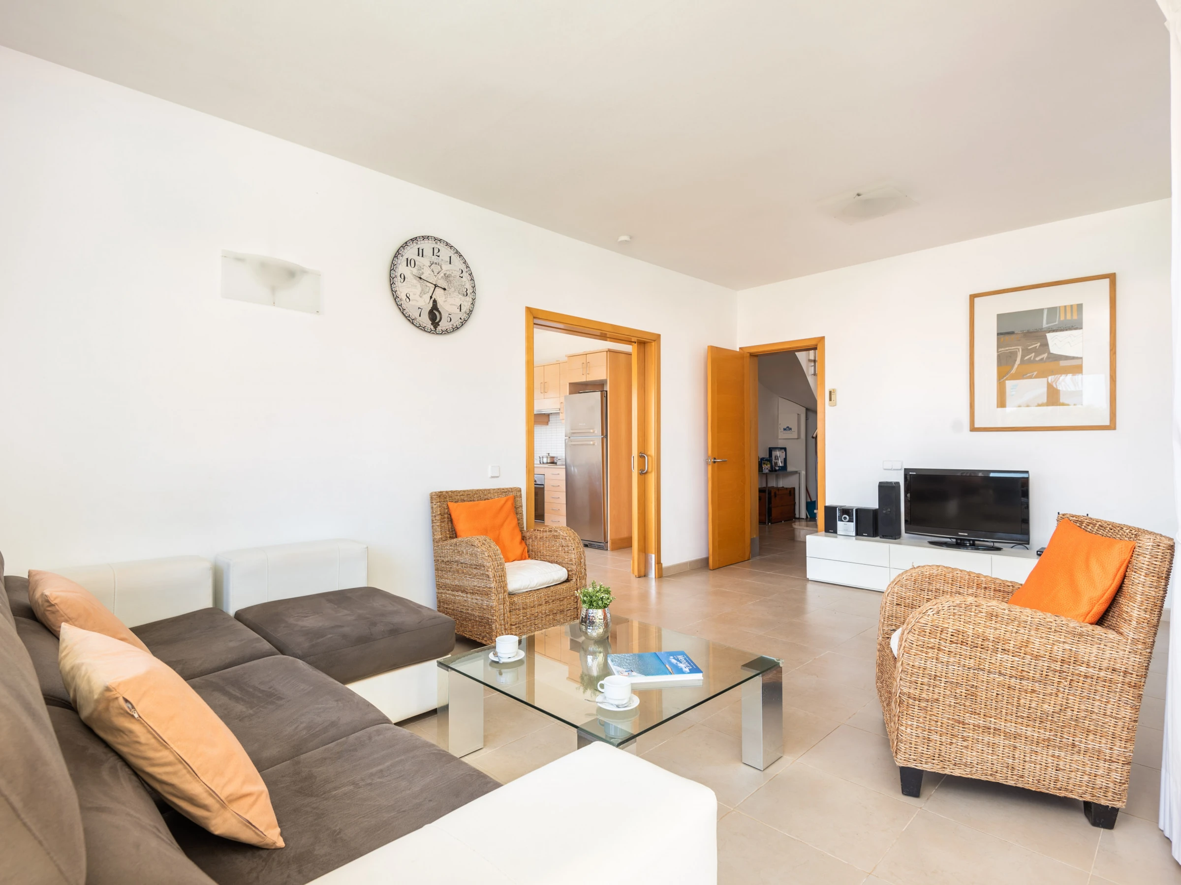 Das Wohnzimmer ist geräumig und hell, eingerichtet mit Sofa und Sesseln, Satellitenfernsehen und kostenlosem WLAN. Zudem bietet es direkten Zugang zum Außenbereich, was eine perfekte Umgebung zum Entspannen oder für geselliges Beisammensein schafft.