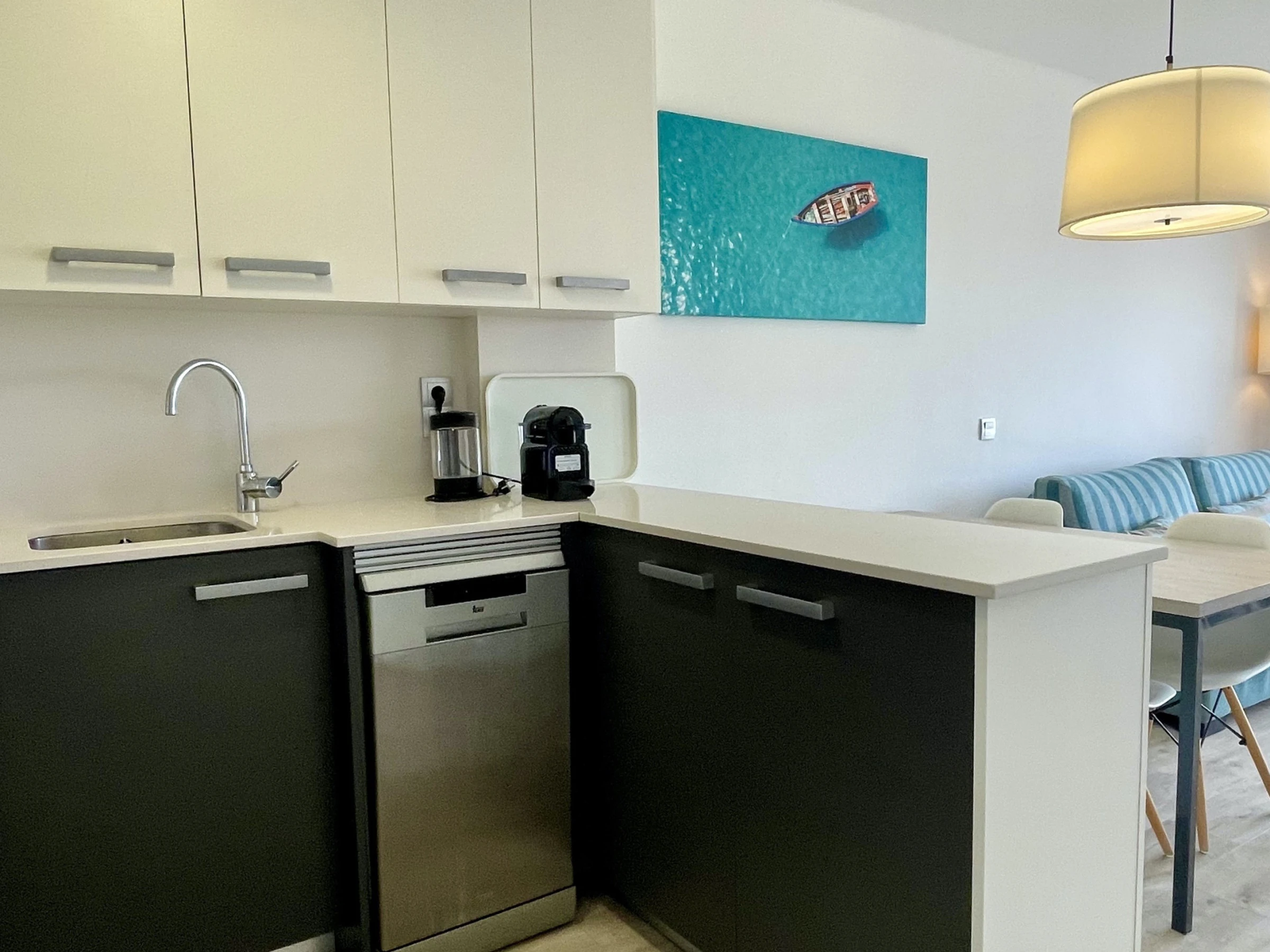 Die amerikanische Küche ist komplett mit modernen Haushaltsgeräten ausgestattet, einschließlich Kühlschrank, Gefrierschrank, Geschirrspüler, Mikrowelle, Kaffeemaschine, Toaster und Wasserkocher. Sie werden über alle notwendigen Küchenutensilien verfügen, um während Ihres Aufenthalts köstliche Mahlzeiten zuzubereiten.