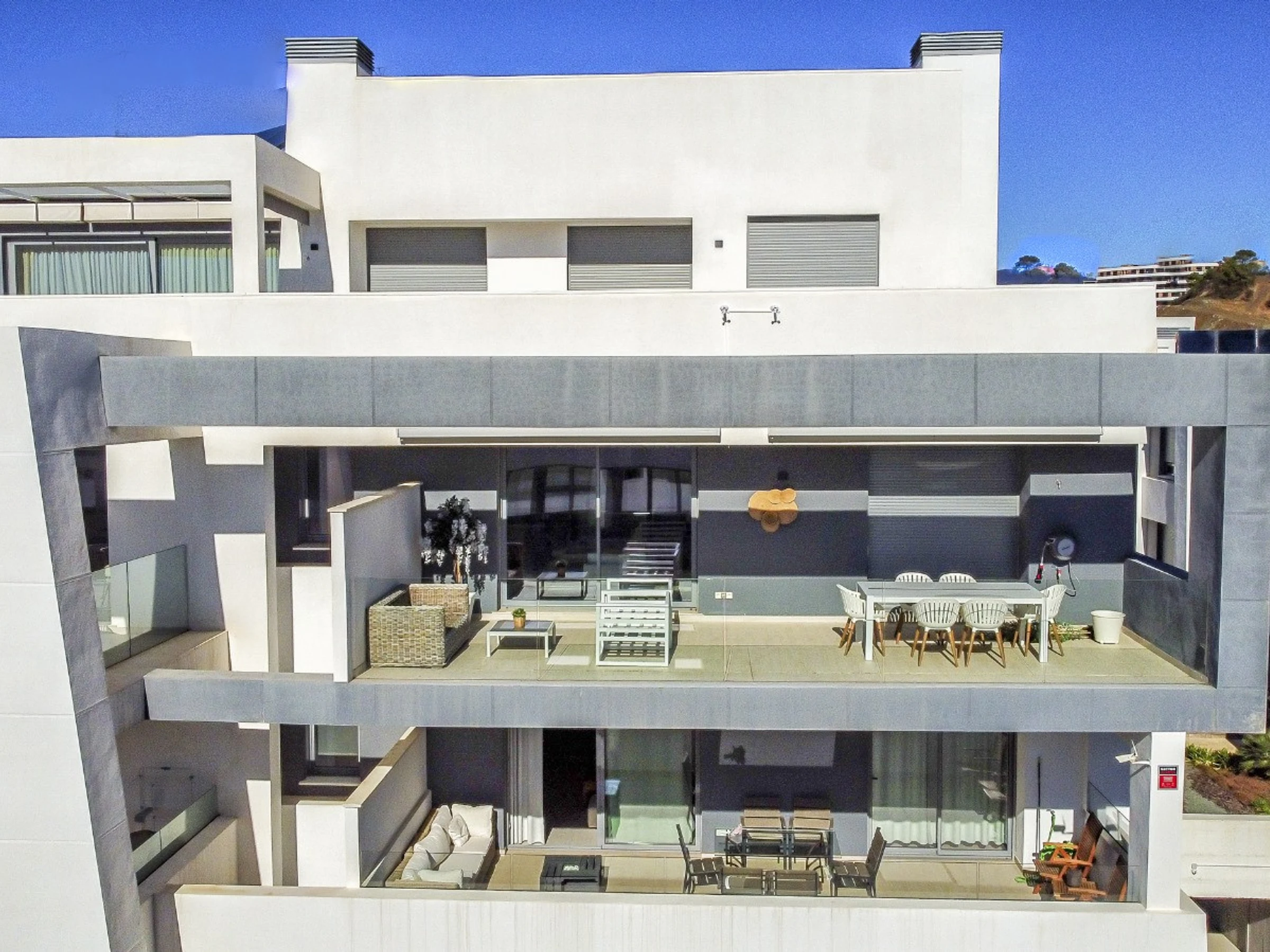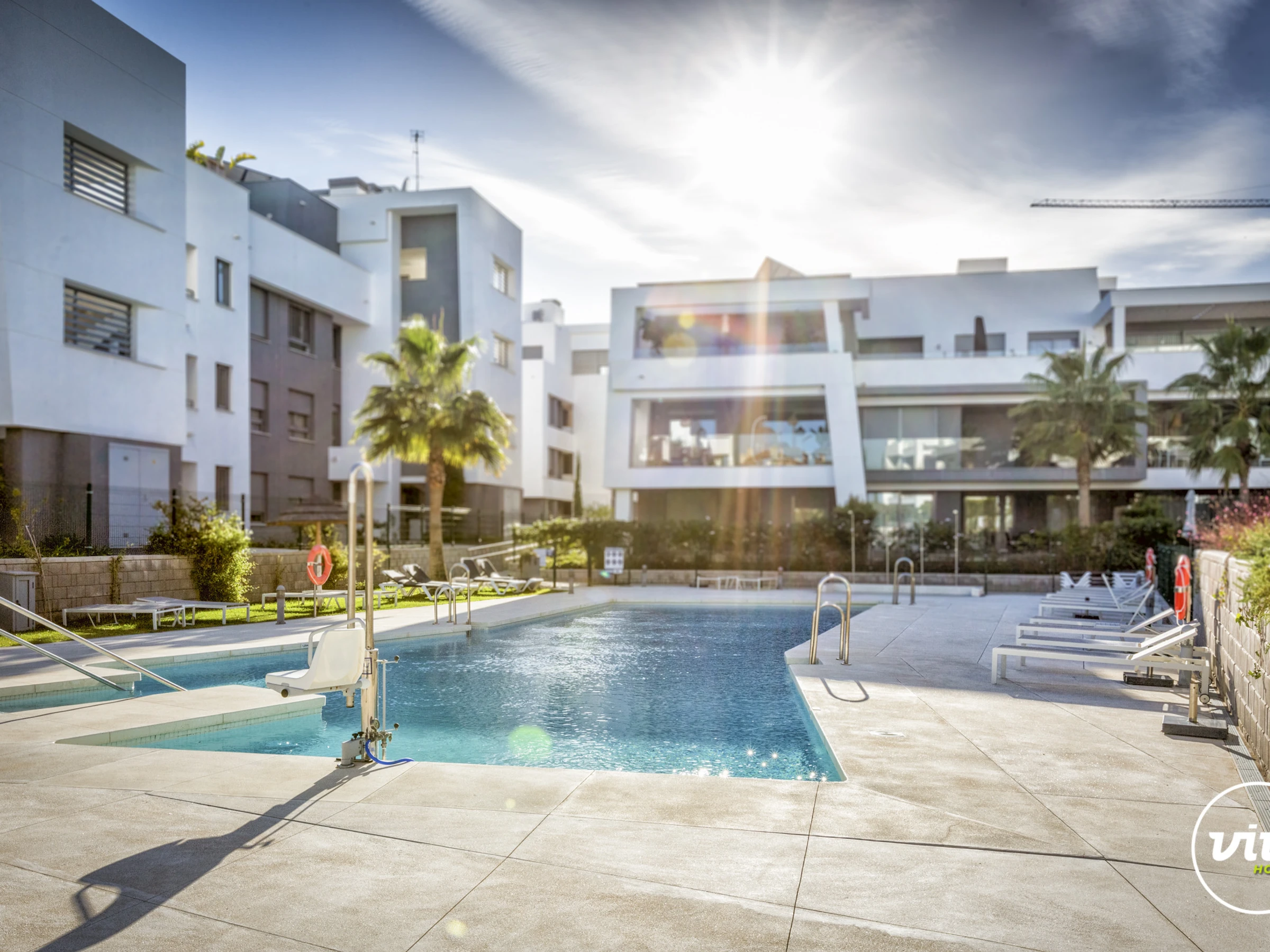 Die Unterkunft verfügt über aufzug, gartenmöbel, umzäuntes grundstück, 25 m² terrasse, waschmaschine, bügeleisen/-brett, safe, internet (WLAN), haartrockner, balkon, fitnessraum, zentralheizung, klimaanlage, swimming-pool gemeinschaftlicher swimming pool + kinderbecken, garage in auf dem grundstück, 1 Fernseher.