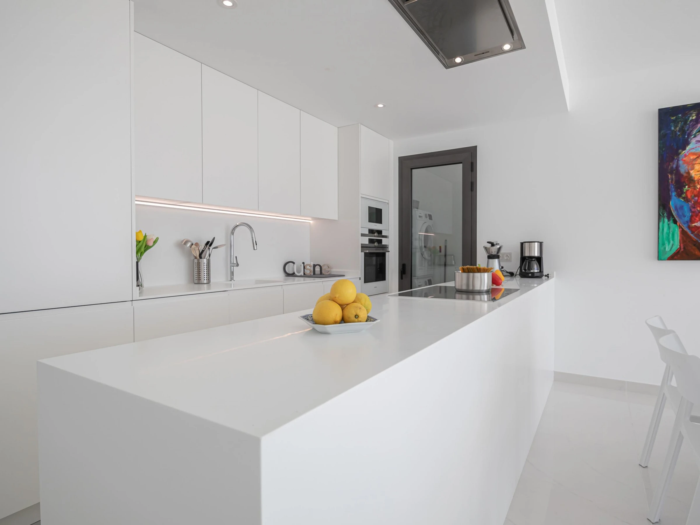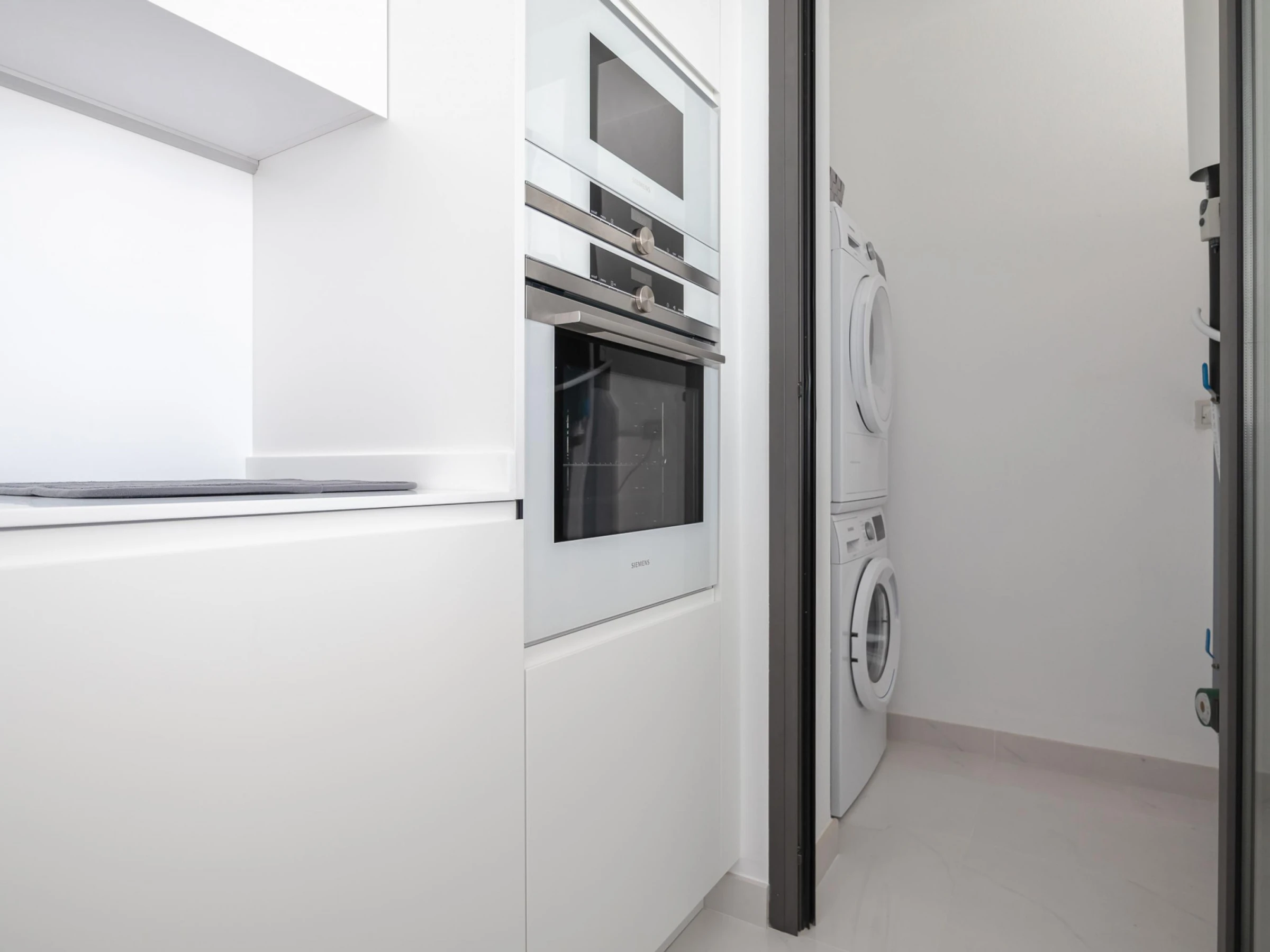 Dieses küche, ist ausgestattet in mikrowelle, spülmaschine, kaffeemaschine und toaster.