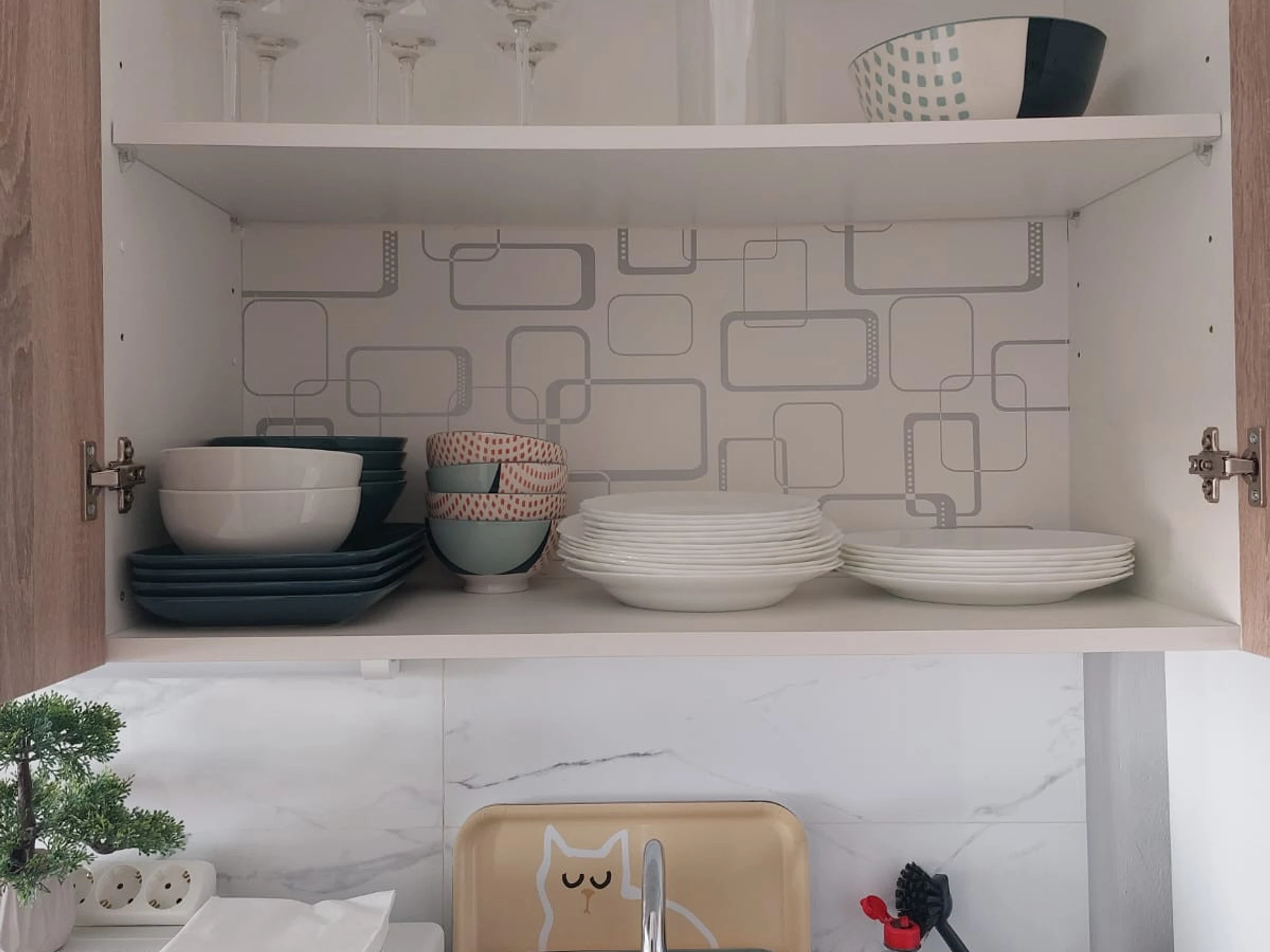 Dieses offene küche, ist ausgestattet in kühlschrank, mikrowelle, backofen, gefrierschrank, geschirr/besteck, kochutensilien, kaffeemaschine, toaster, wasserkocher und saftpresse.