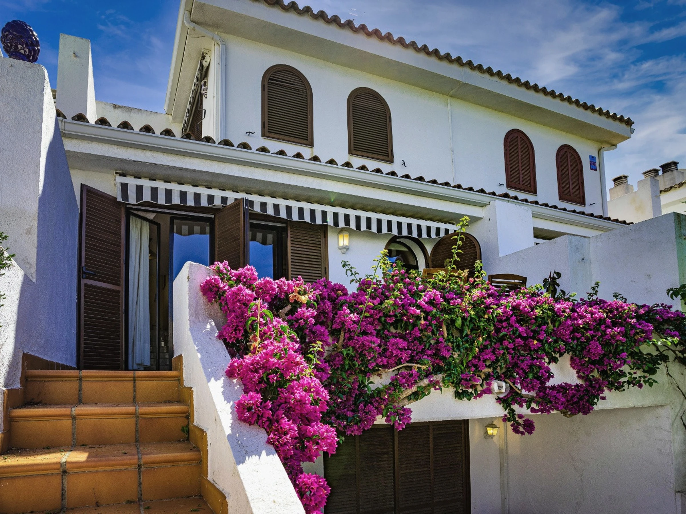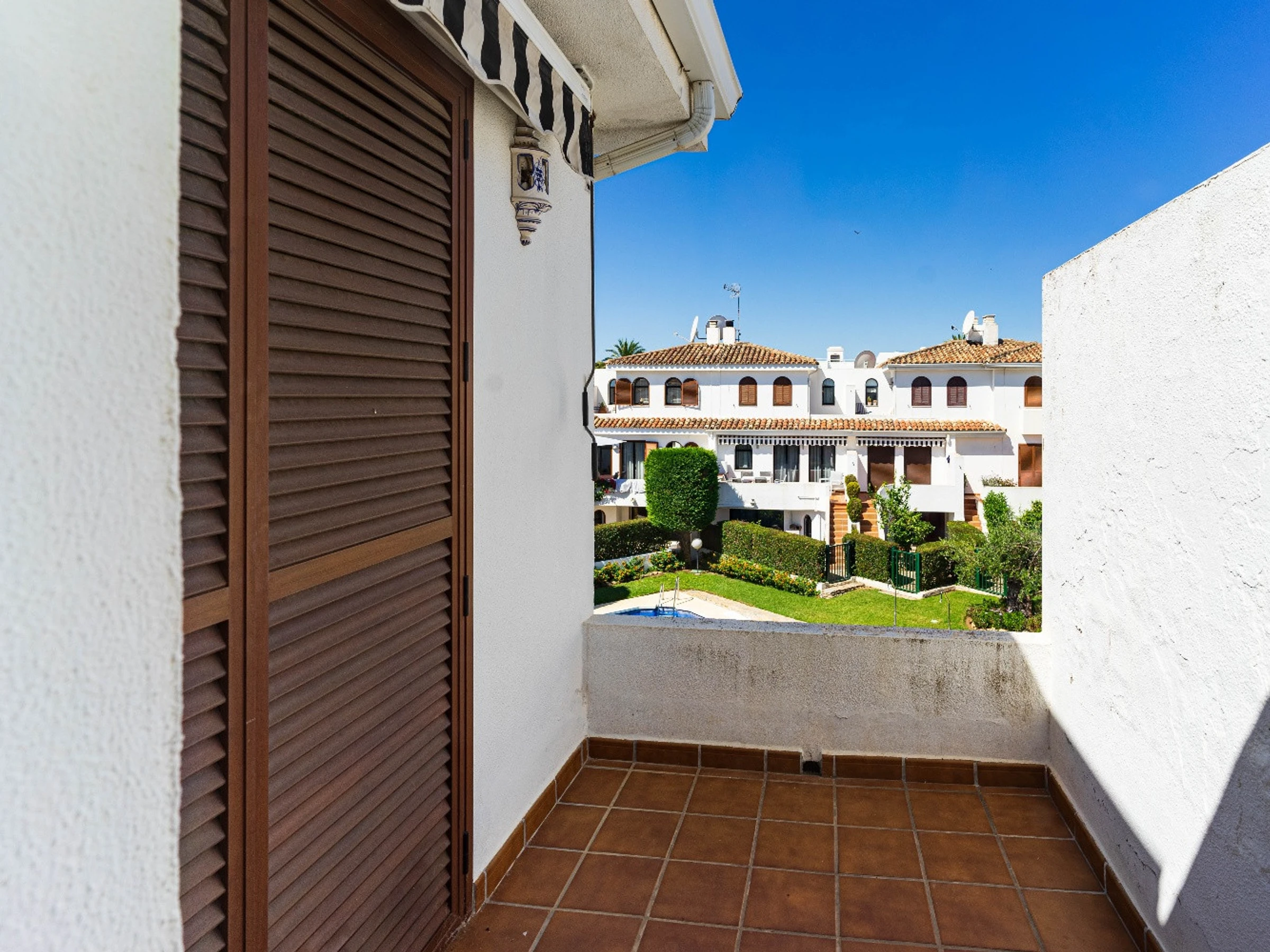 Die Unterkunft verfügt über garten, gartenmöbel, umzäuntes grundstück, 14 m² terrasse, waschmaschine, grill, kamin, internet (WLAN), balkon, heizung, klimaanlage in der ganzen unterkunft, swimming-pool gemeinschaftlicher swimming-pool, parkplatz im freien in auf dem grundstück, 1 Fernseher.
