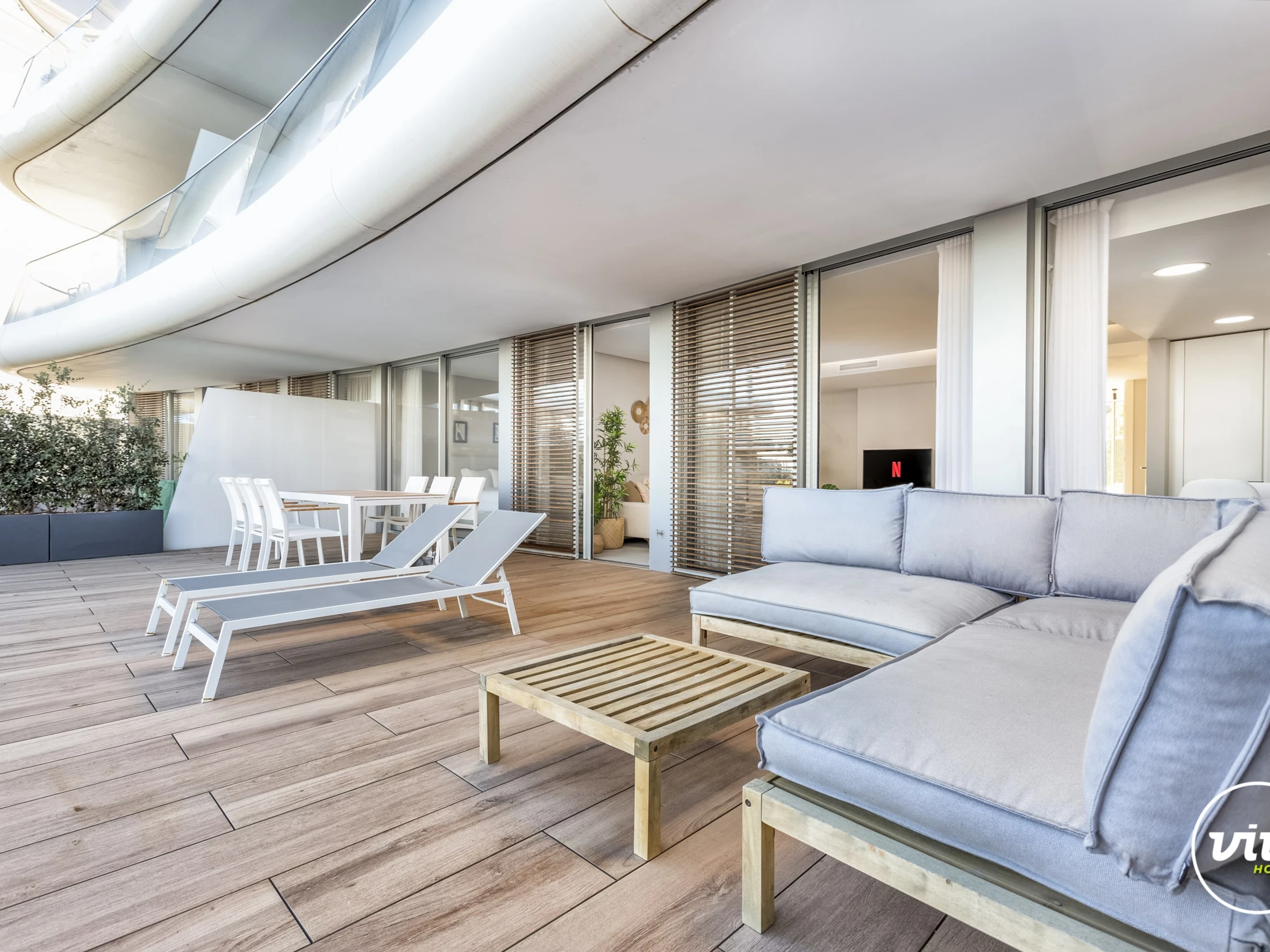 Die Unterkunft verfügt über aufzug, garten, gartenmöbel, umzäuntes grundstück, 43 m² terrasse, waschmaschine, bügeleisen/-brett, internet (WLAN), haartrockner, tischtennisplatte, fitnessraum, spa, zentralheizung, klimaanlage, swimming-pool gemeinschaftlicher swimming-pool, garage in auf dem grundstück, 1 Fernseher.