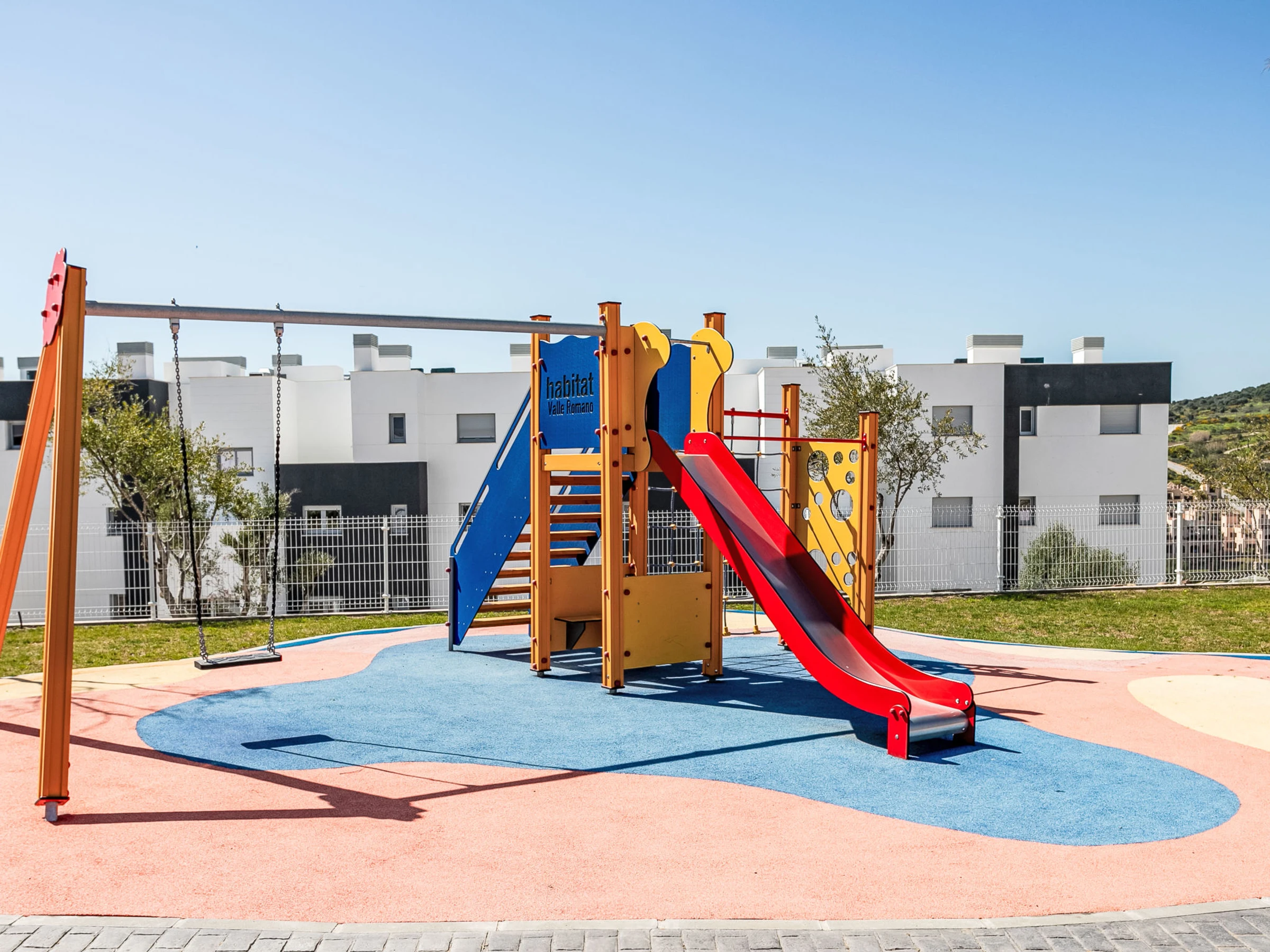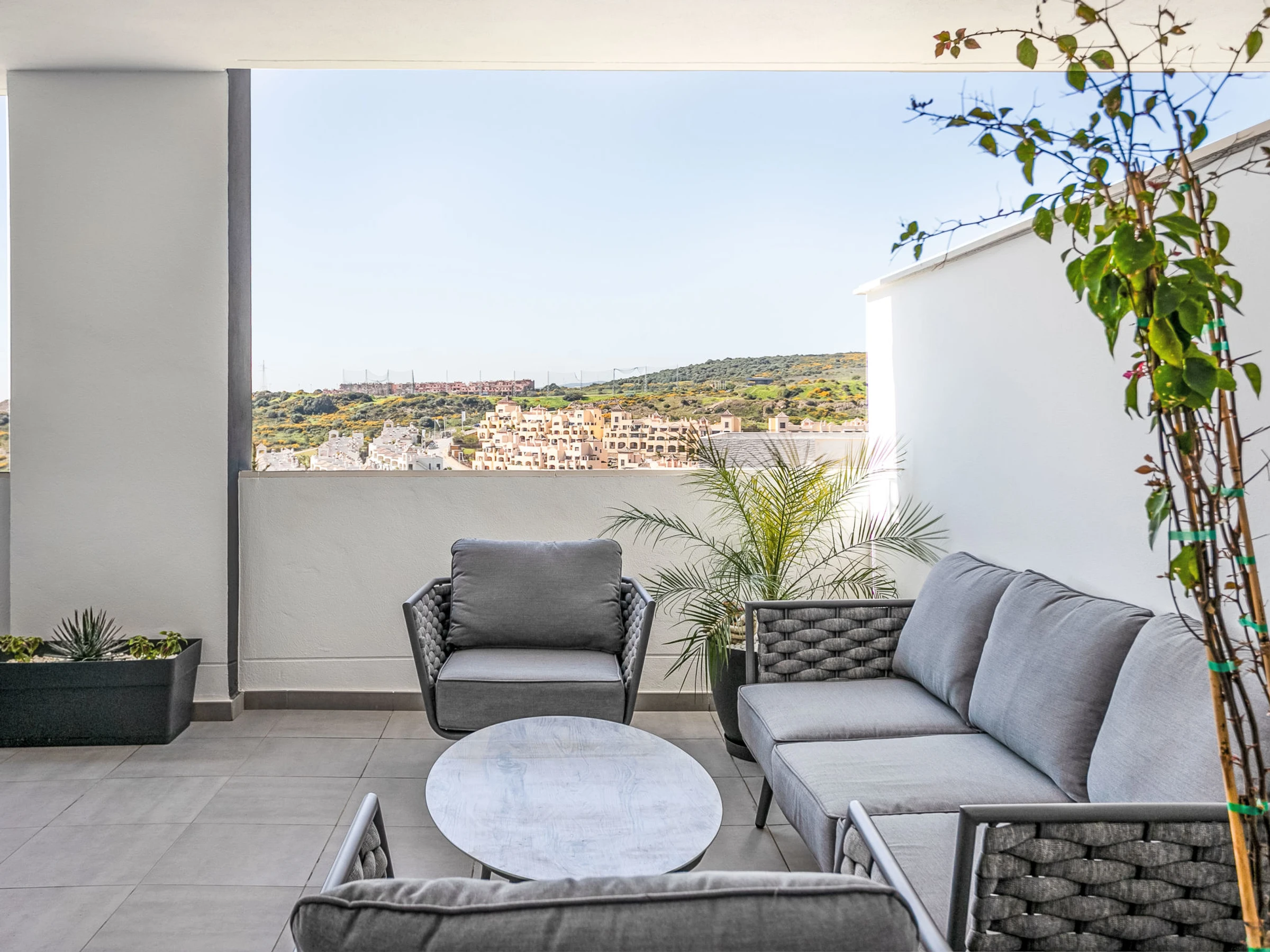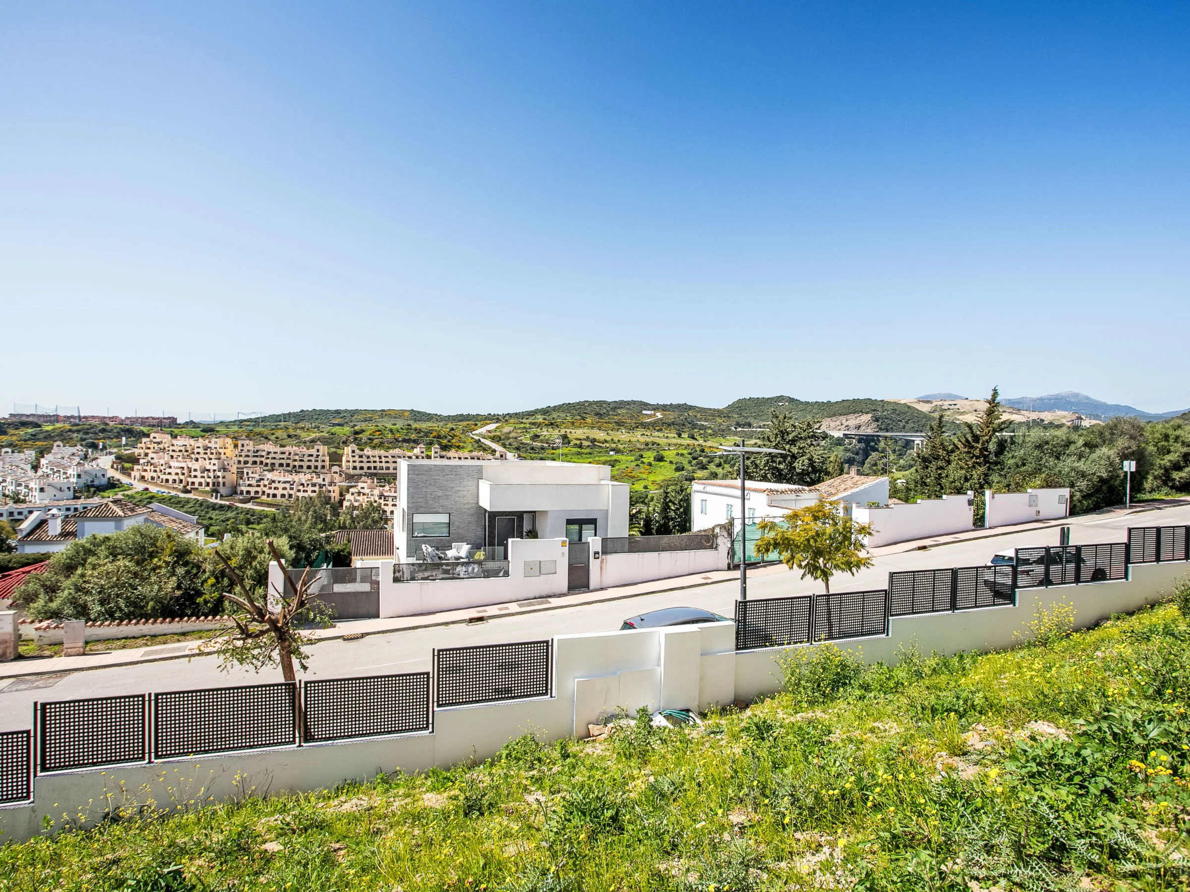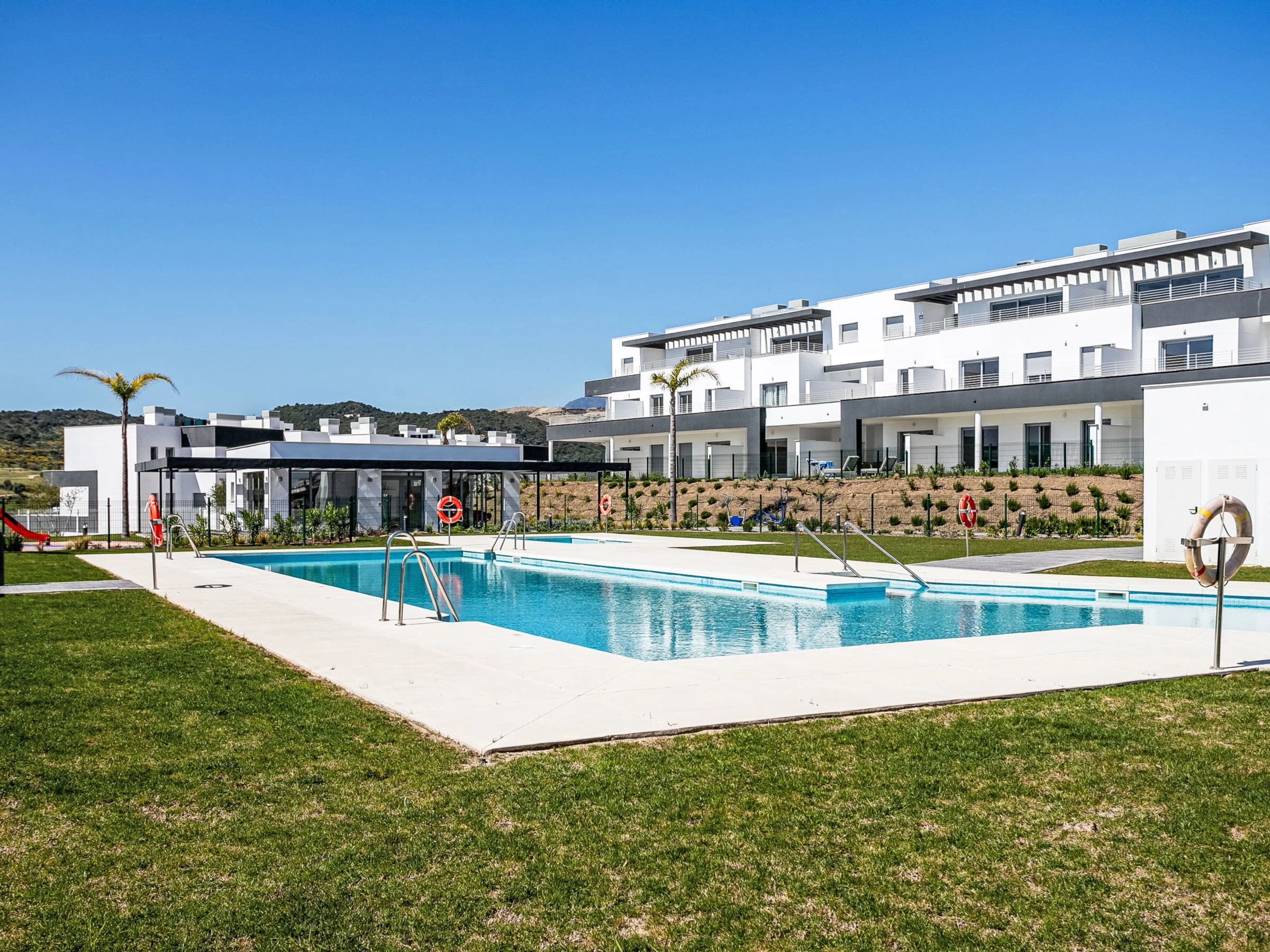 Appartementhaus "Habitat Valle Romano", Baujahr 2025. Ruhige Lage auf einem Hügel, 3 km vom Meer, 3 km vom Strand. Zur Mitbenutzung: Garten mit Rasen und Pflanzen, Schwimmbad (26 x 6 m, 160 - 80 cm tief, saisonale Verfügbarkeit: [hidden] - [hidden] mit Innentreppe. Ungleichmässige Schwimmbadform WC im Poolbereich, Kinderbecken, Aussendusche, Boccia, Kinderspielplatz (Rutschbahn, Schaukel). In der Anlage: Wireless LAN, Fitnessraum. Gemeinschaftsgarage Nr. 42. Restaurant 2.4 km, Café 2.7 km, Bushaltestelle "Hospital" 2.7 km, Bahnstation "Algeciras" 65 km, Sandstrand "Playa Arroyo Vaquero" 4.1 km. Sporthafen 6.4 km, Jacht-Hafen 21 km, Golfplatz (18 Loch) 1.1 km, Surfschule 6.4 km, Segelschule 6.4 km, Tennis 6.7 km, Reitstall 13 km. Nahe gelegene Sehenswürdigkeiten: Casares Castle 13 km, Termas Romanas de Guadalmina 20 km, Aeropuerto internacional de Gibraltar 46 km, Parque Ferial y Deportivo 4.7 km, Centro Historico Estepona 9.7 km, Selwo Adventure Park 16.8 km. Wandergebiete: Caminito del Rey - Acceso Sur 108 km. Bitte beachten: Fahrzeug empfohlen. Der Besitzer akzeptiert keine Jugendgruppen.