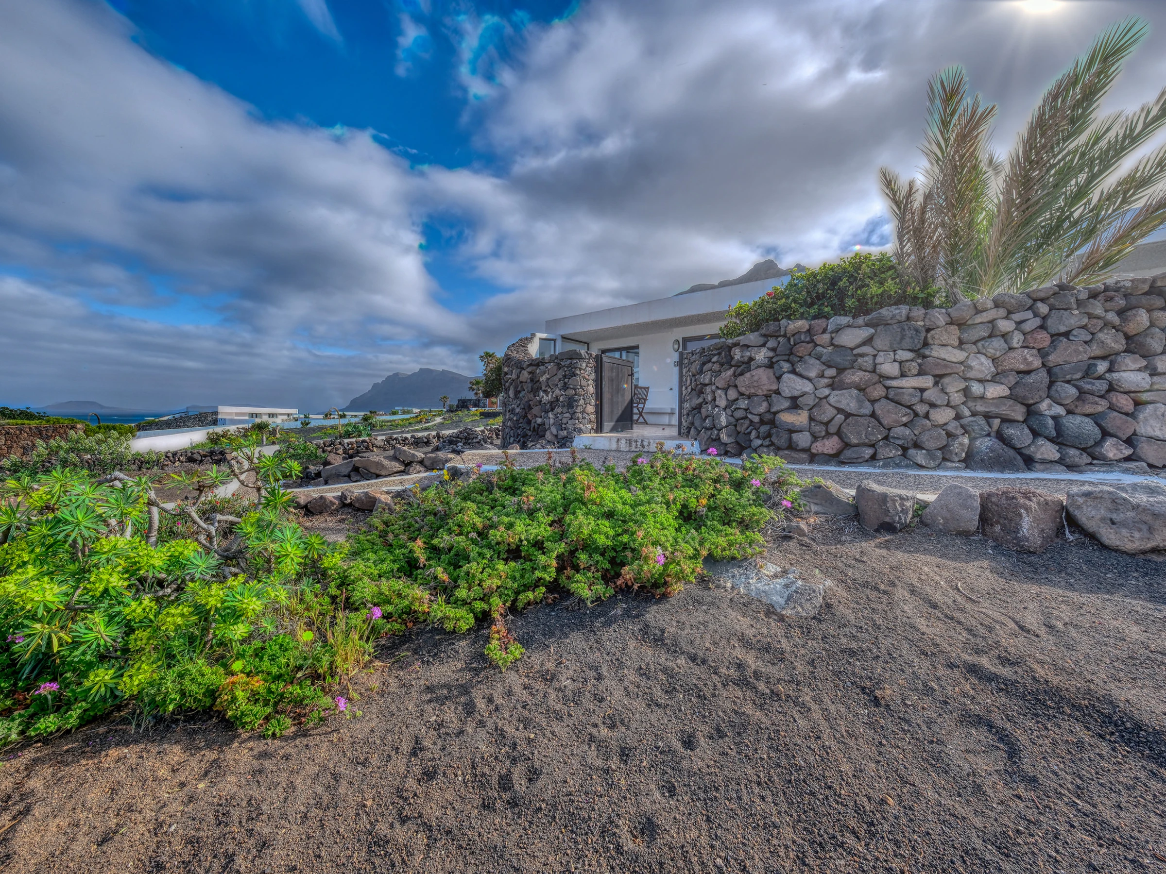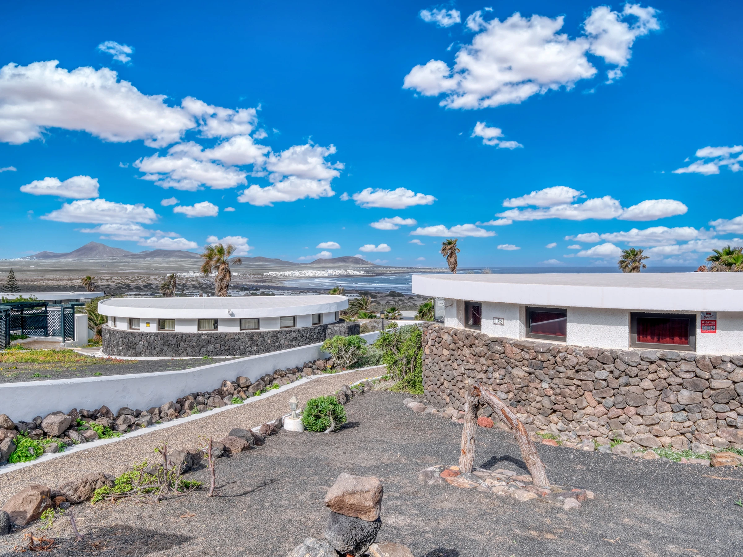 Bungalow Famara Mar 122 ist eine gemütliche und elegante Unterkunft mit bezauberndem Blick auf den Ozean, gelegen in der ruhigen und exklusiven Wohnsiedlung von Famara, nur 2 Gehminuten von dem spektakulären Strand von Famara entfernt.