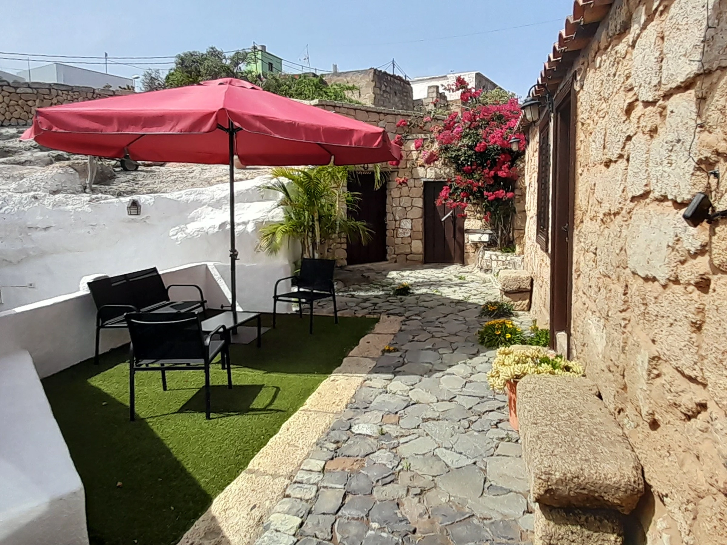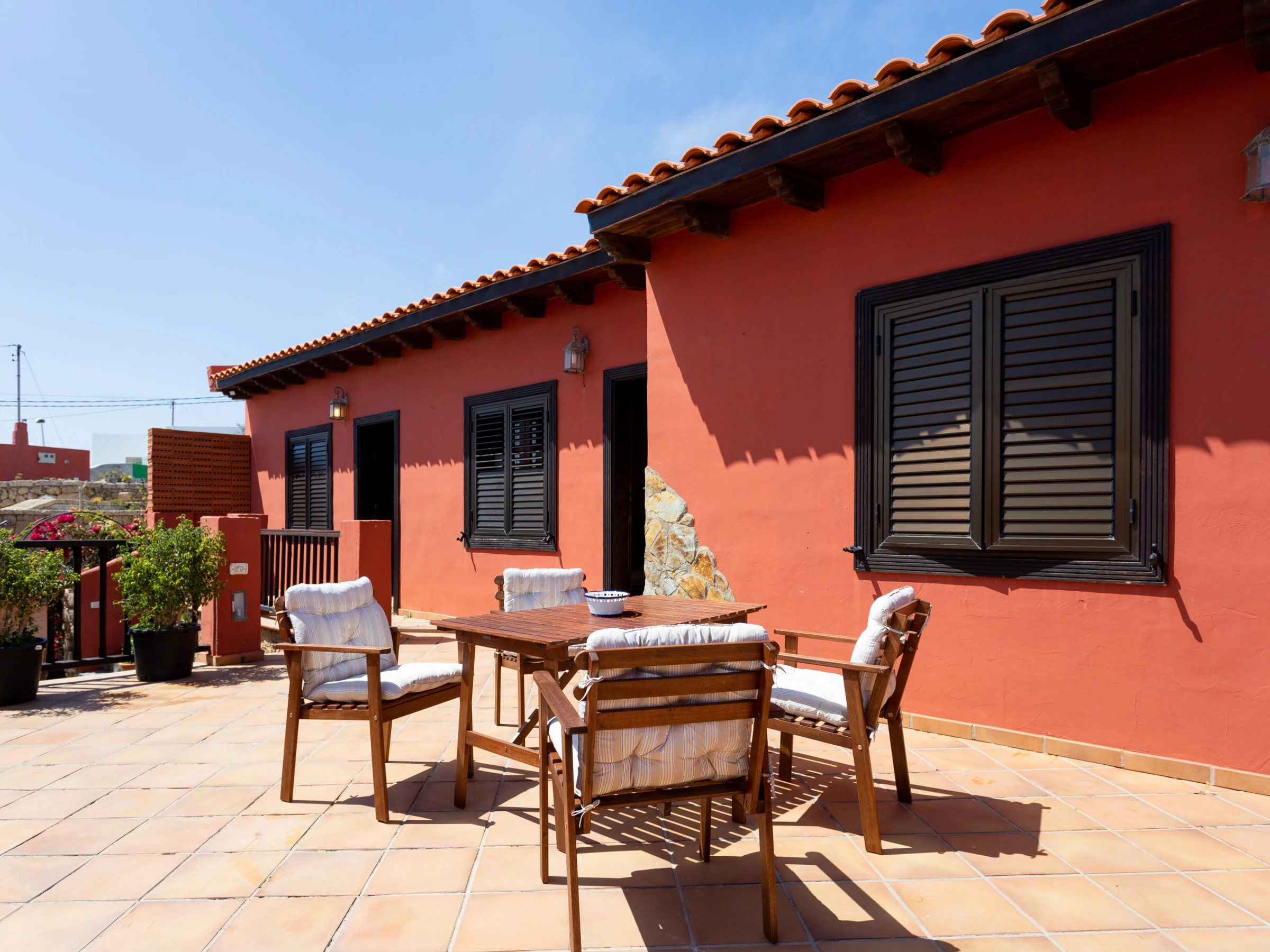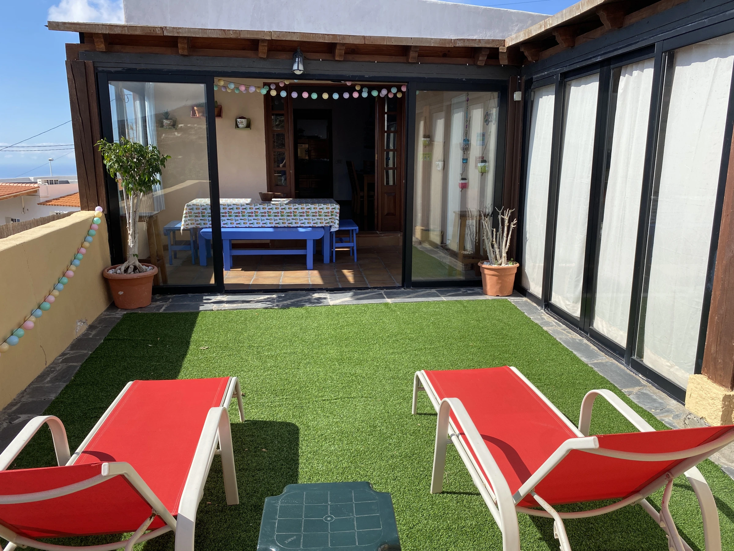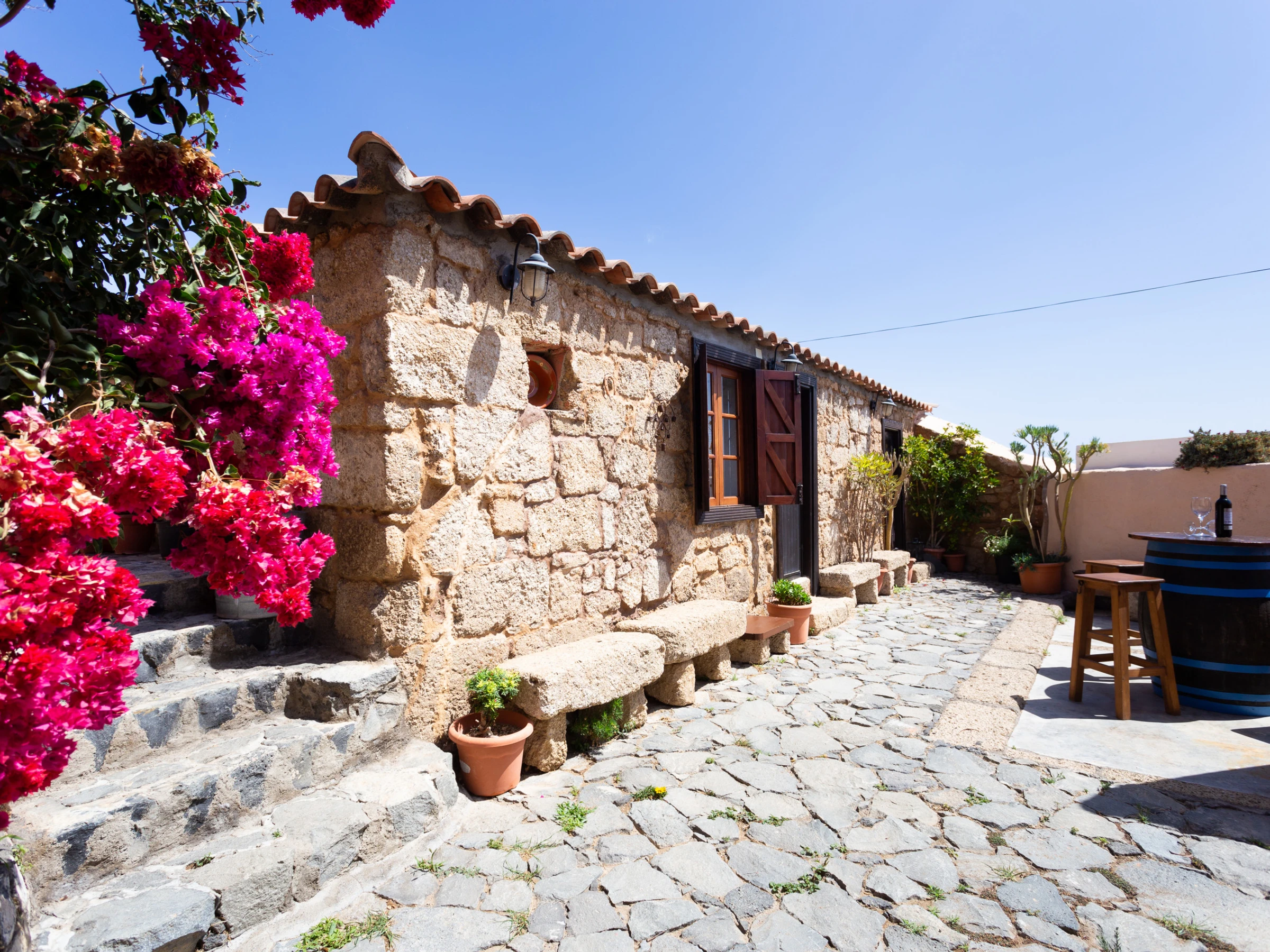 Typisches kanarisches Landhaus, das aus einer alten Geschichte zu stammen scheint. Es ist ideal für große Familien oder Gruppen von Freunden, da es von mehreren Terrassen umgeben, um die Natur zu genießen. Die Zimmer sind wie folgt aufgeteilt: ein hundertjähriges Haupthaus, das mit viel Sorgfalt und sorgfälltig mit Decken und Holzböden restauriert wurde, in denen die Zeit stehen geblieben zu sein scheint. Es verfügt über ein großes Wohnzimmer mit Essbereich, ein Esszimmer in einer verschlossenen Terrasse mit Meerblick, eine weitere große Terrasse mit einem spektakulären Blick auf den Atlantik mit Sonnenliegen und eine Außendusche und eine große moderne Küche ist komplett ausgestattet. Es hat auch ein großes Schlafzimmer mit einem zusätzlichen Bett für ein Kind, ein kleines Schlafzimmer mit Einzelbett und ein Badezimmer mit Dusche. Die beiden weiteren Schlafzimmer sind durch eine Terrasse zu erreichen. Jedes Schlafzimmer hat ein eigenes Badezimmer mit Dusche. Einer von ihnen hat ein Doppelbett und der andere ist absolut ideal für eine Gruppe von Kindern, mit 3 Einzelbetten und 2 Etagenbetten. Die zusätzlichen Schlafzimmer werden ab einer Belegung von 4 Personen zur Verfügung gestellt. Das Haus ist mit einer Klimaanlage für Kälte und Wärme im Wohnzimmer, im Hauptschlafzimmer sowie in den zwei separaten Zimmern ausgestattet. Die Küche und das Badezimmer im Haupthaus verfügen über keine Heizung. Wenn das Haus durch etwas definiert ist, ist es, weil es nicht nur innen, sondern auch als Ganzes, kokett ist, umgeben von mehreren Ecken und Terrassen zum Ausruhen und Genießen. Es ist ein ländlicher Ort voller Frieden und Ruhe, ideal für Individualreisende, die die authentische ländliche und familiäre Atmosphäre abseits der großen Touristenzentren suchen.