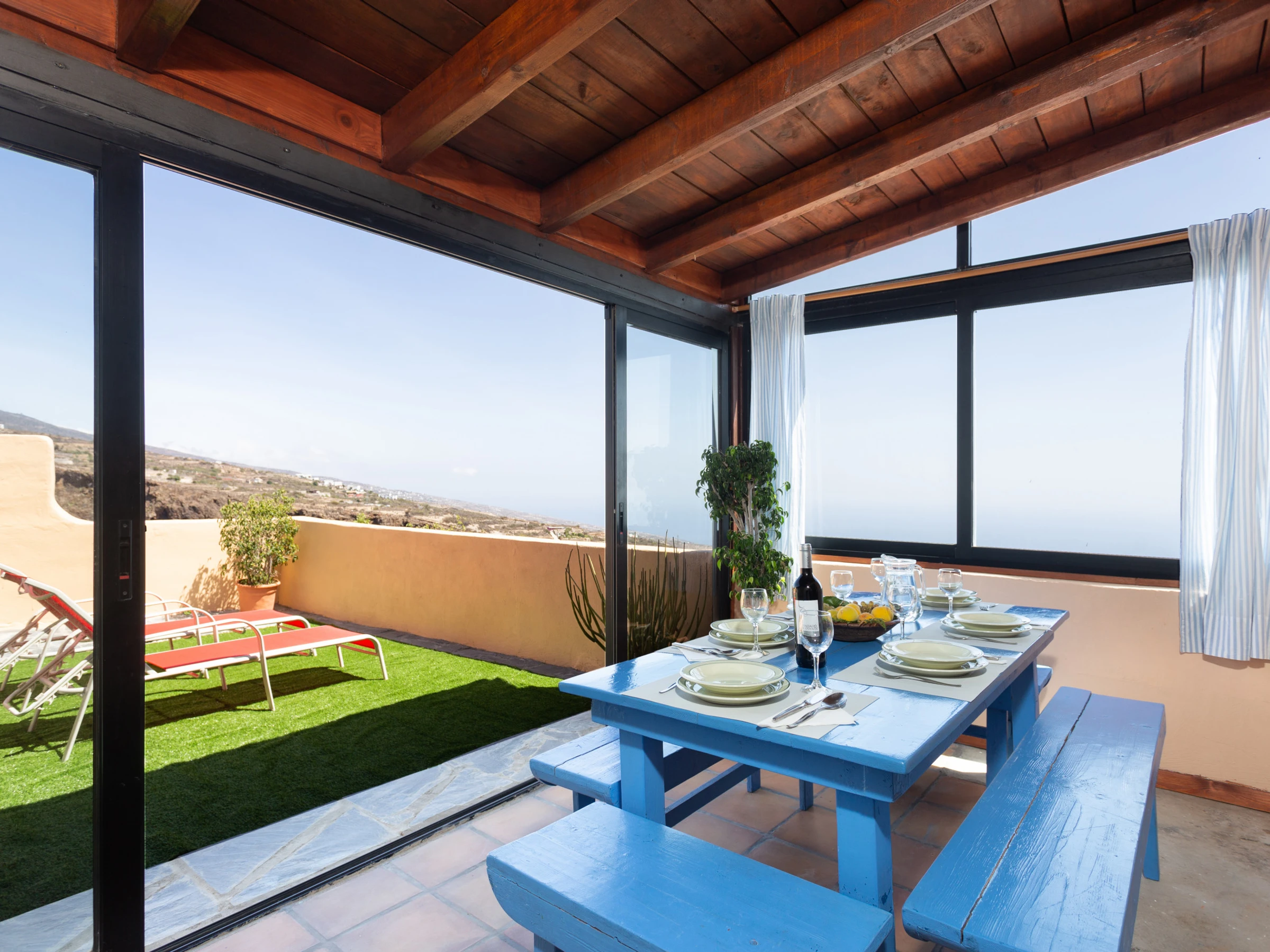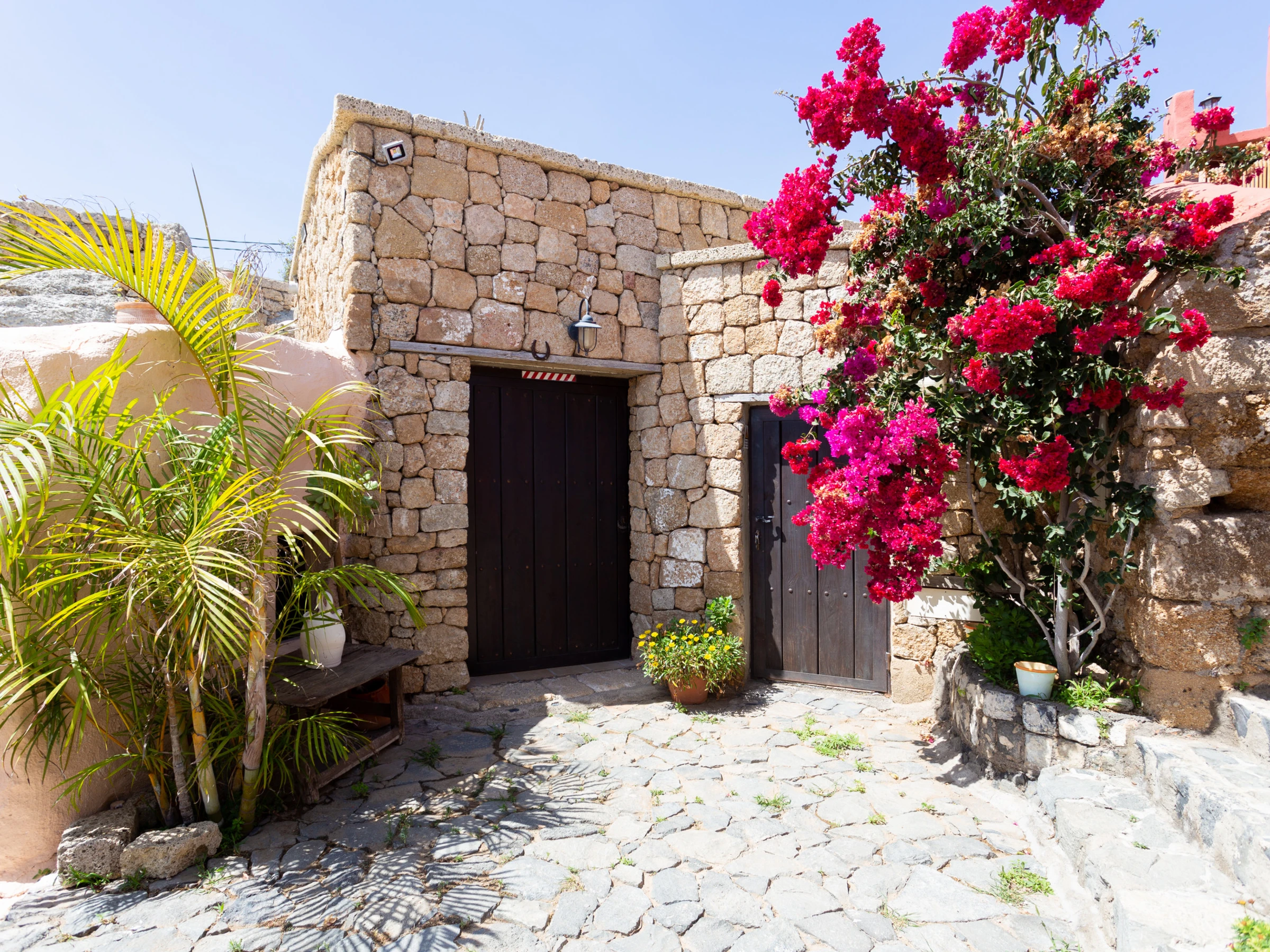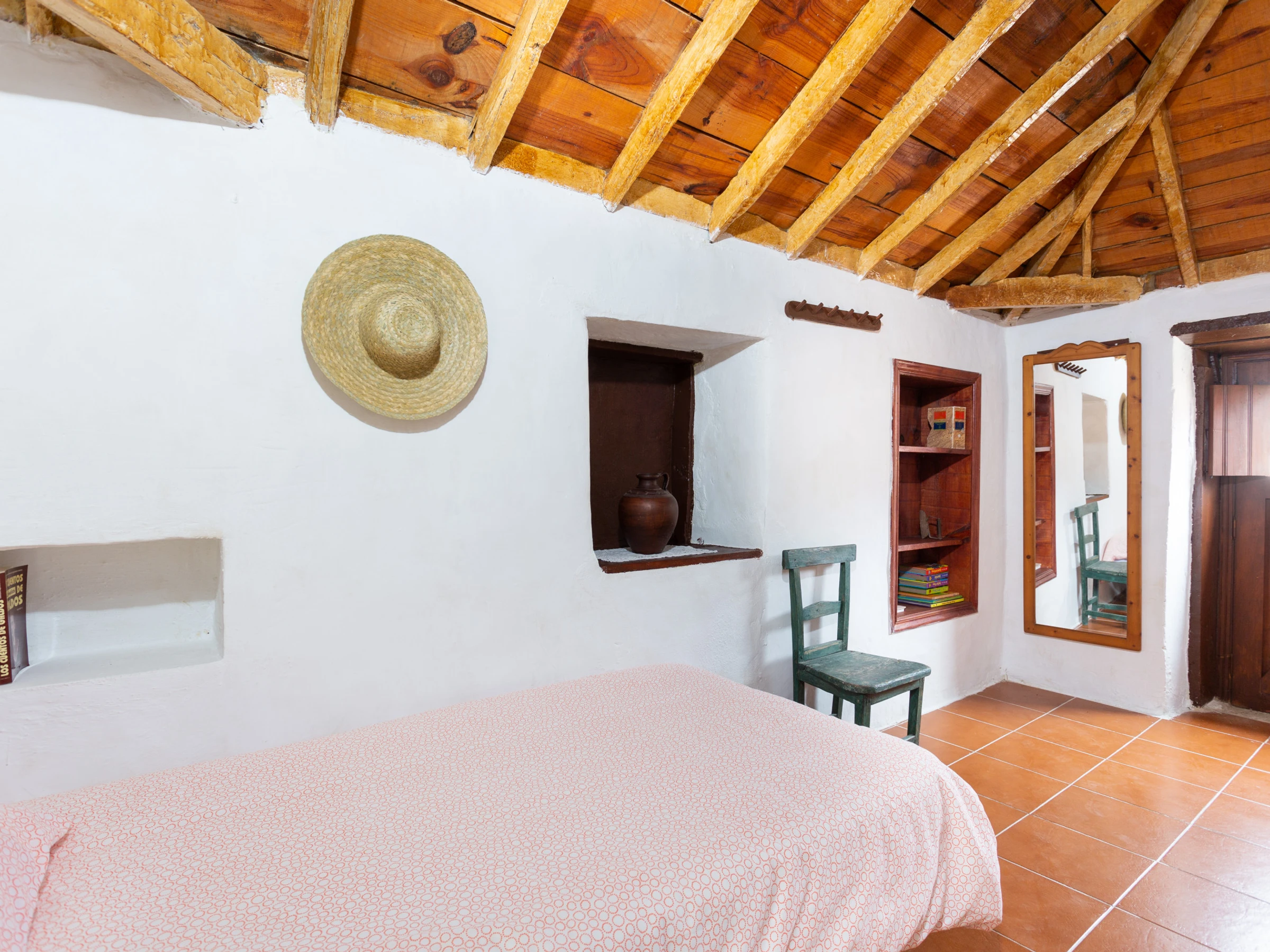 Typisches kanarisches Landhaus, das aus einer alten Geschichte zu stammen scheint. Es ist ideal für große Familien oder Gruppen von Freunden, da es von mehreren Terrassen umgeben, um die Natur zu genießen. Die Zimmer sind wie folgt aufgeteilt: ein hundertjähriges Haupthaus, das mit viel Sorgfalt und sorgfälltig mit Decken und Holzböden restauriert wurde, in denen die Zeit stehen geblieben zu sein scheint. Es verfügt über ein großes Wohnzimmer mit Essbereich, ein Esszimmer in einer verschlossenen Terrasse mit Meerblick, eine weitere große Terrasse mit einem spektakulären Blick auf den Atlantik mit Sonnenliegen und eine Außendusche und eine große moderne Küche ist komplett ausgestattet. Es hat auch ein großes Schlafzimmer mit einem zusätzlichen Bett für ein Kind, ein kleines Schlafzimmer mit Einzelbett und ein Badezimmer mit Dusche. Die beiden weiteren Schlafzimmer sind durch eine Terrasse zu erreichen. Jedes Schlafzimmer hat ein eigenes Badezimmer mit Dusche. Einer von ihnen hat ein Doppelbett und der andere ist absolut ideal für eine Gruppe von Kindern, mit 3 Einzelbetten und 2 Etagenbetten. Die zusätzlichen Schlafzimmer werden ab einer Belegung von 4 Personen zur Verfügung gestellt. Das Haus ist mit einer Klimaanlage für Kälte und Wärme im Wohnzimmer, im Hauptschlafzimmer sowie in den zwei separaten Zimmern ausgestattet. Die Küche und das Badezimmer im Haupthaus verfügen über keine Heizung. Wenn das Haus durch etwas definiert ist, ist es, weil es nicht nur innen, sondern auch als Ganzes, kokett ist, umgeben von mehreren Ecken und Terrassen zum Ausruhen und Genießen. Es ist ein ländlicher Ort voller Frieden und Ruhe, ideal für Individualreisende, die die authentische ländliche und familiäre Atmosphäre abseits der großen Touristenzentren suchen.