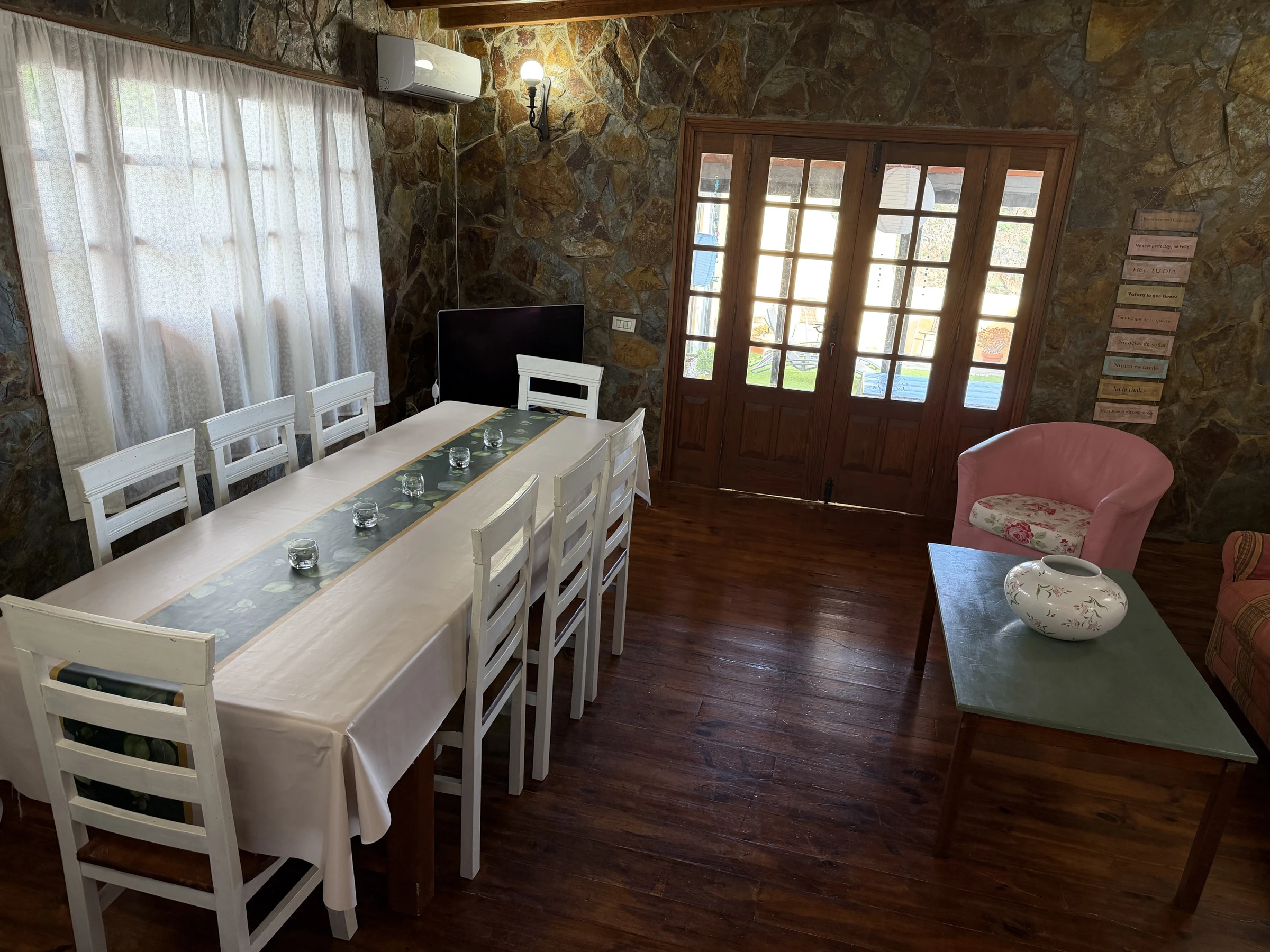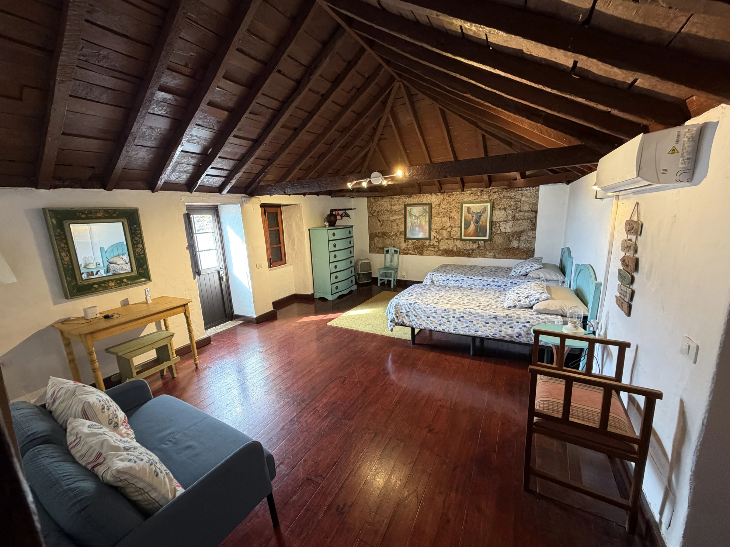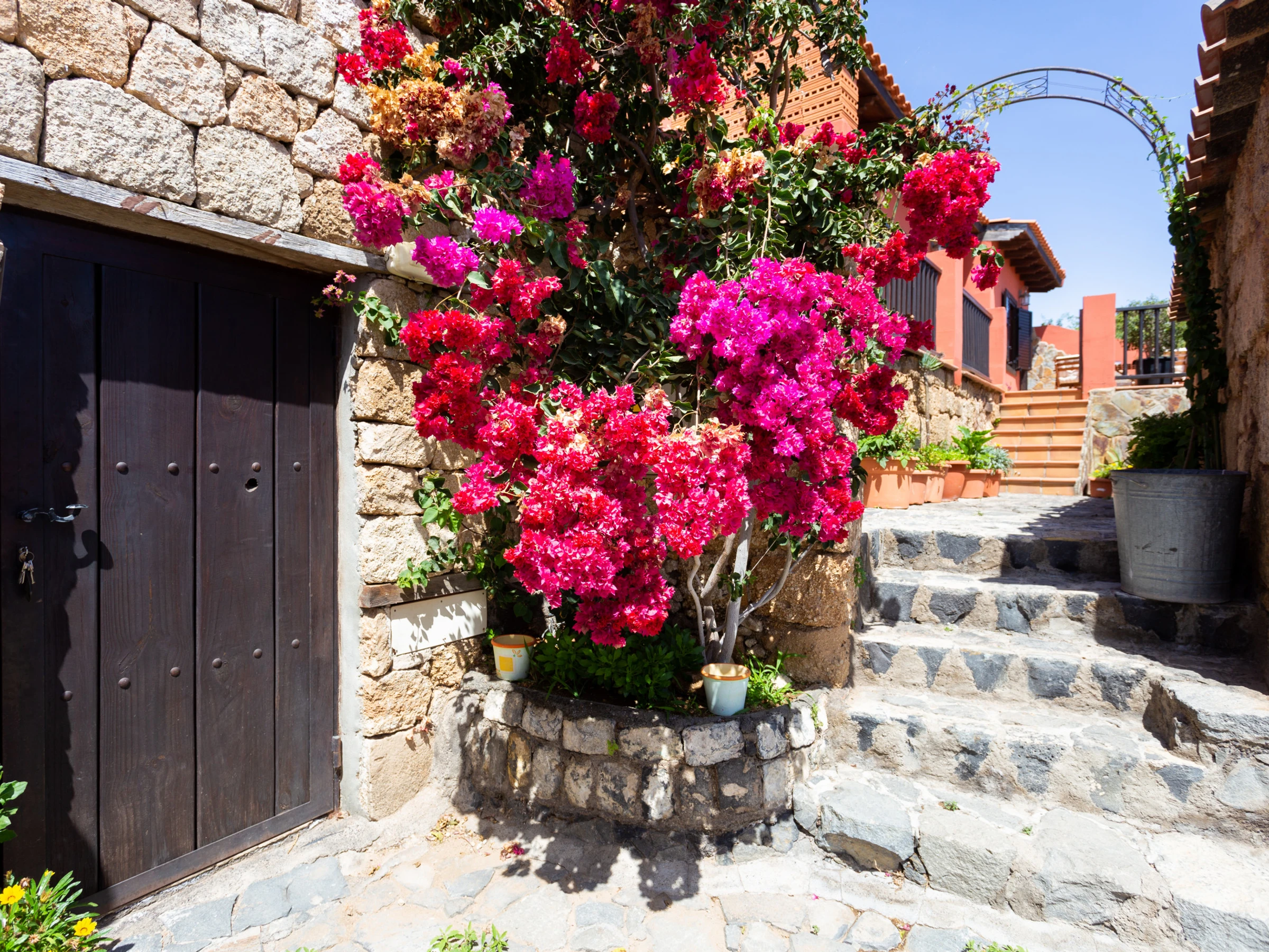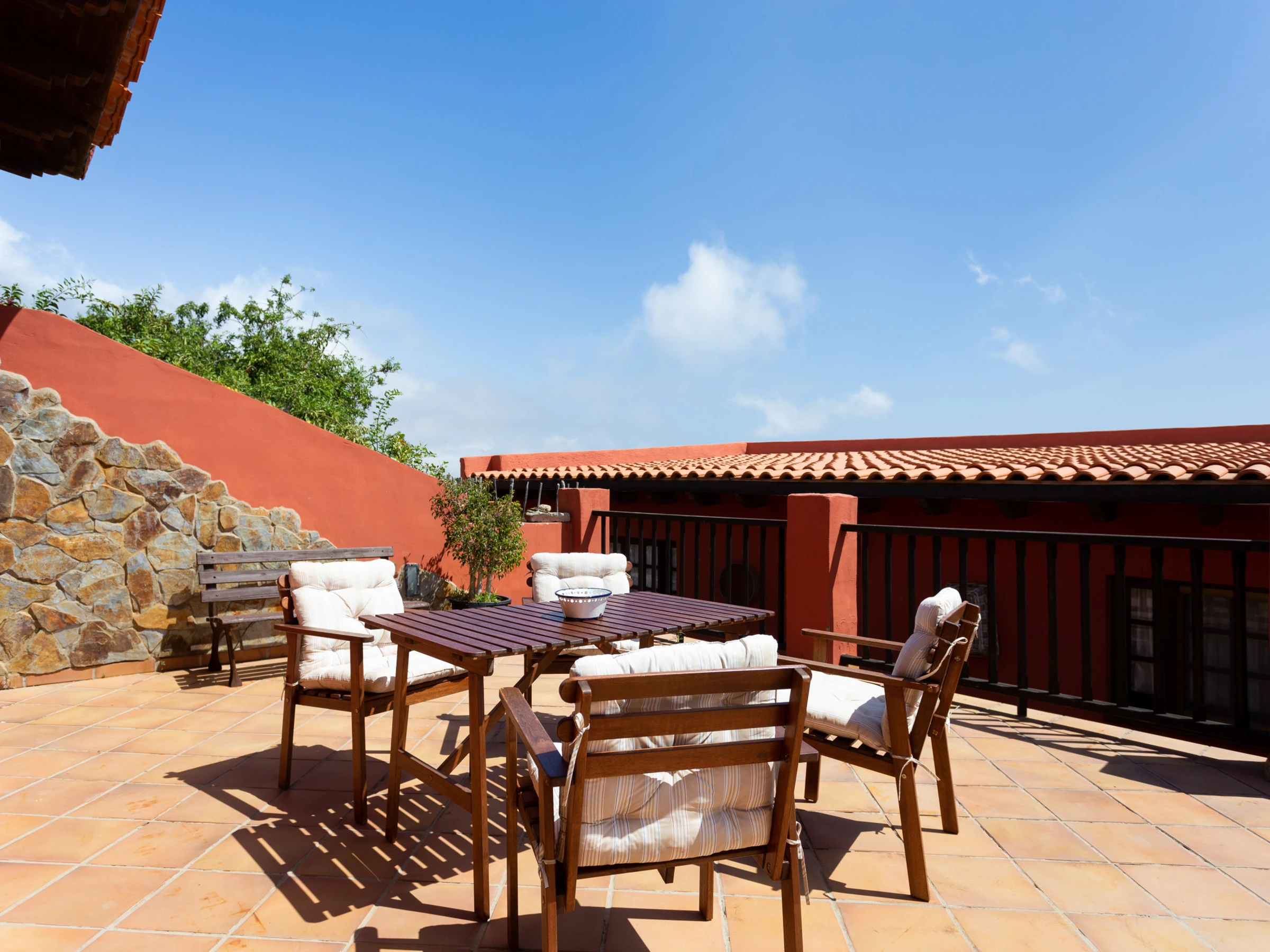 Typisches kanarisches Landhaus, das aus einer alten Geschichte zu stammen scheint. Es ist ideal für große Familien oder Gruppen von Freunden, da es von mehreren Terrassen umgeben, um die Natur zu genießen. Die Zimmer sind wie folgt aufgeteilt: ein hundertjähriges Haupthaus, das mit viel Sorgfalt und sorgfälltig mit Decken und Holzböden restauriert wurde, in denen die Zeit stehen geblieben zu sein scheint. Es verfügt über ein großes Wohnzimmer mit Essbereich, ein Esszimmer in einer verschlossenen Terrasse mit Meerblick, eine weitere große Terrasse mit einem spektakulären Blick auf den Atlantik mit Sonnenliegen und eine Außendusche und eine große moderne Küche ist komplett ausgestattet. Es hat auch ein großes Schlafzimmer mit einem zusätzlichen Bett für ein Kind, ein kleines Schlafzimmer mit Einzelbett und ein Badezimmer mit Dusche. Die beiden weiteren Schlafzimmer sind durch eine Terrasse zu erreichen. Jedes Schlafzimmer hat ein eigenes Badezimmer mit Dusche. Einer von ihnen hat ein Doppelbett und der andere ist absolut ideal für eine Gruppe von Kindern, mit 3 Einzelbetten und 2 Etagenbetten. Die zusätzlichen Schlafzimmer werden ab einer Belegung von 4 Personen zur Verfügung gestellt. Das Haus ist mit einer Klimaanlage für Kälte und Wärme im Wohnzimmer, im Hauptschlafzimmer sowie in den zwei separaten Zimmern ausgestattet. Die Küche und das Badezimmer im Haupthaus verfügen über keine Heizung. Wenn das Haus durch etwas definiert ist, ist es, weil es nicht nur innen, sondern auch als Ganzes, kokett ist, umgeben von mehreren Ecken und Terrassen zum Ausruhen und Genießen. Es ist ein ländlicher Ort voller Frieden und Ruhe, ideal für Individualreisende, die die authentische ländliche und familiäre Atmosphäre abseits der großen Touristenzentren suchen.