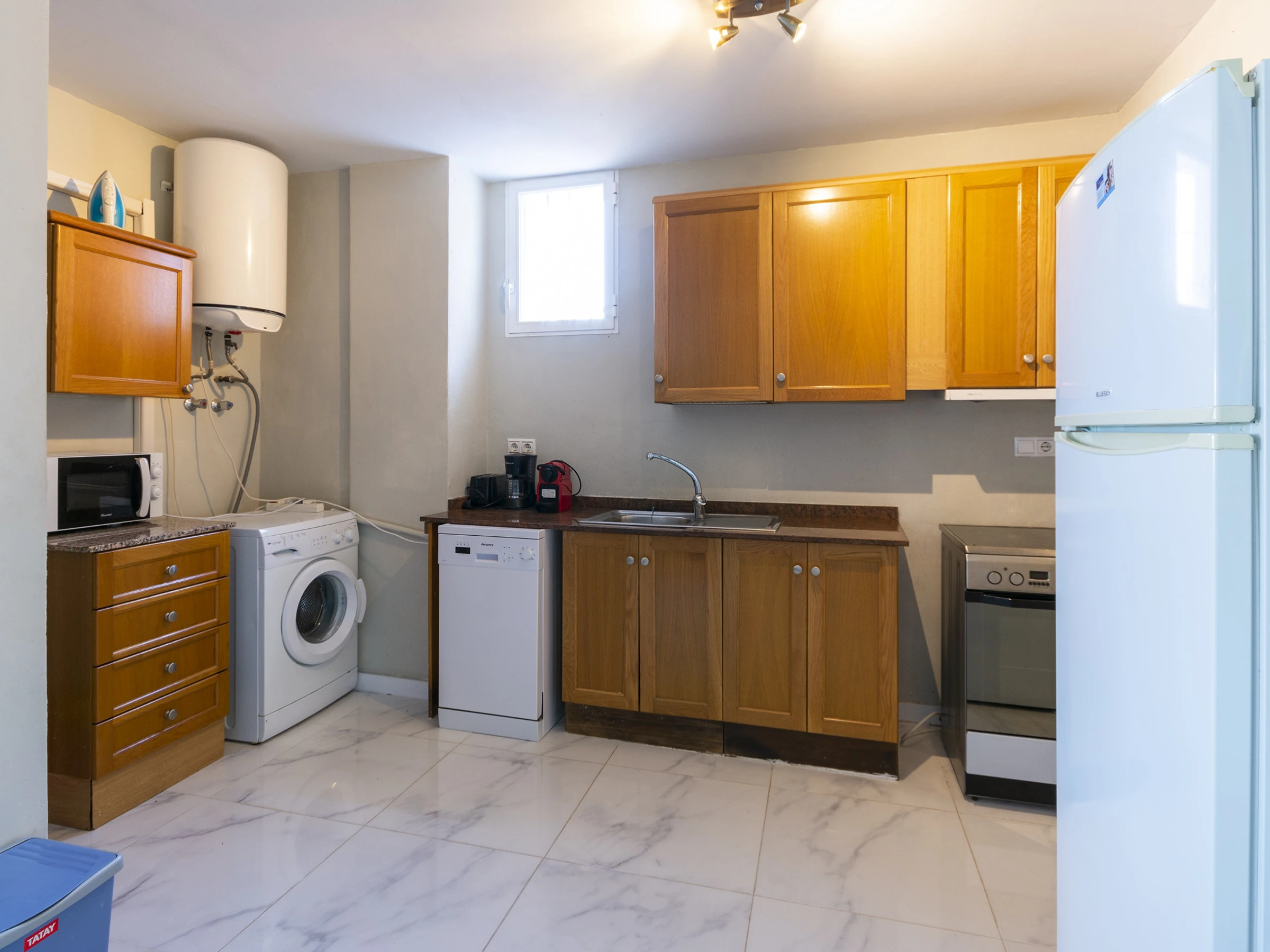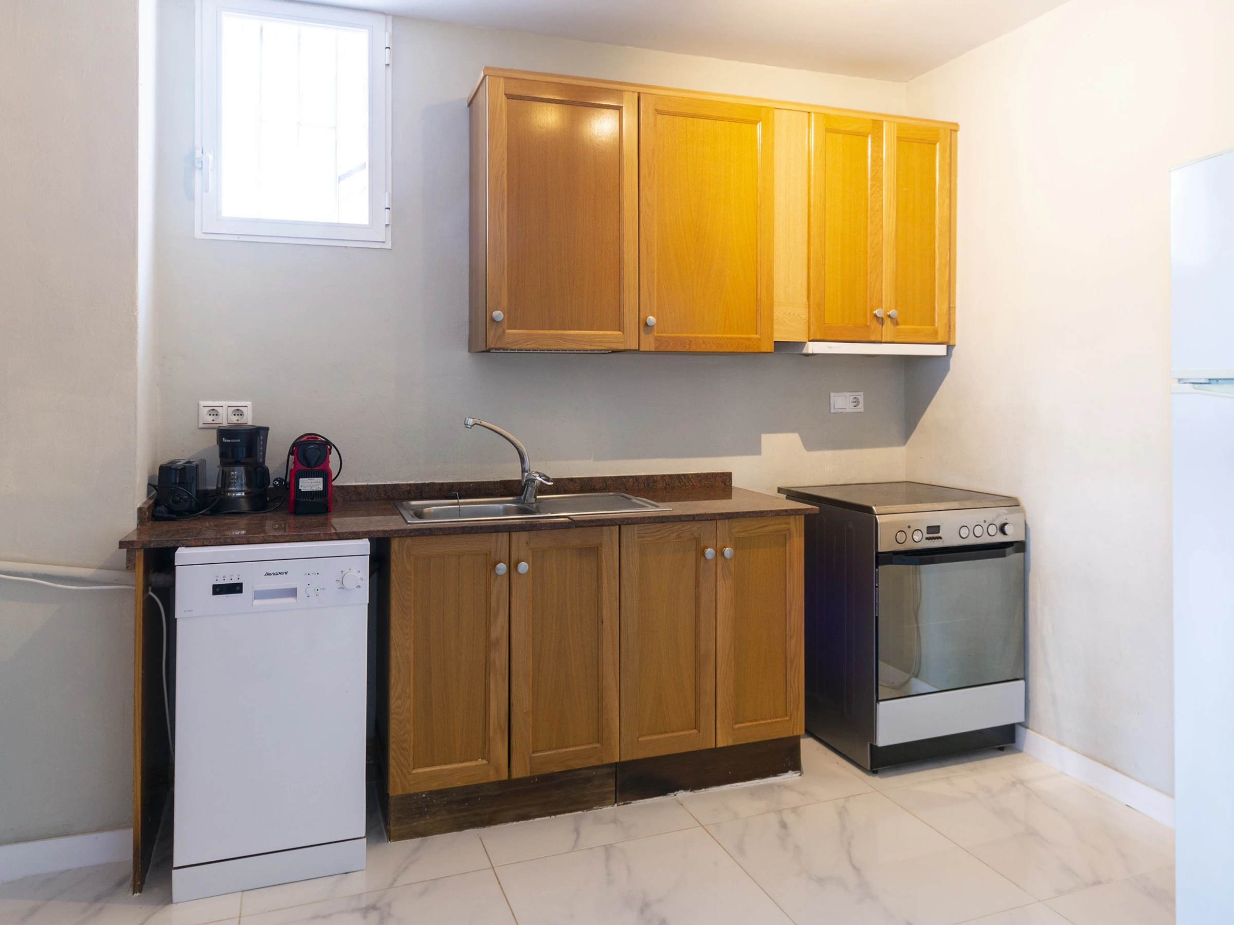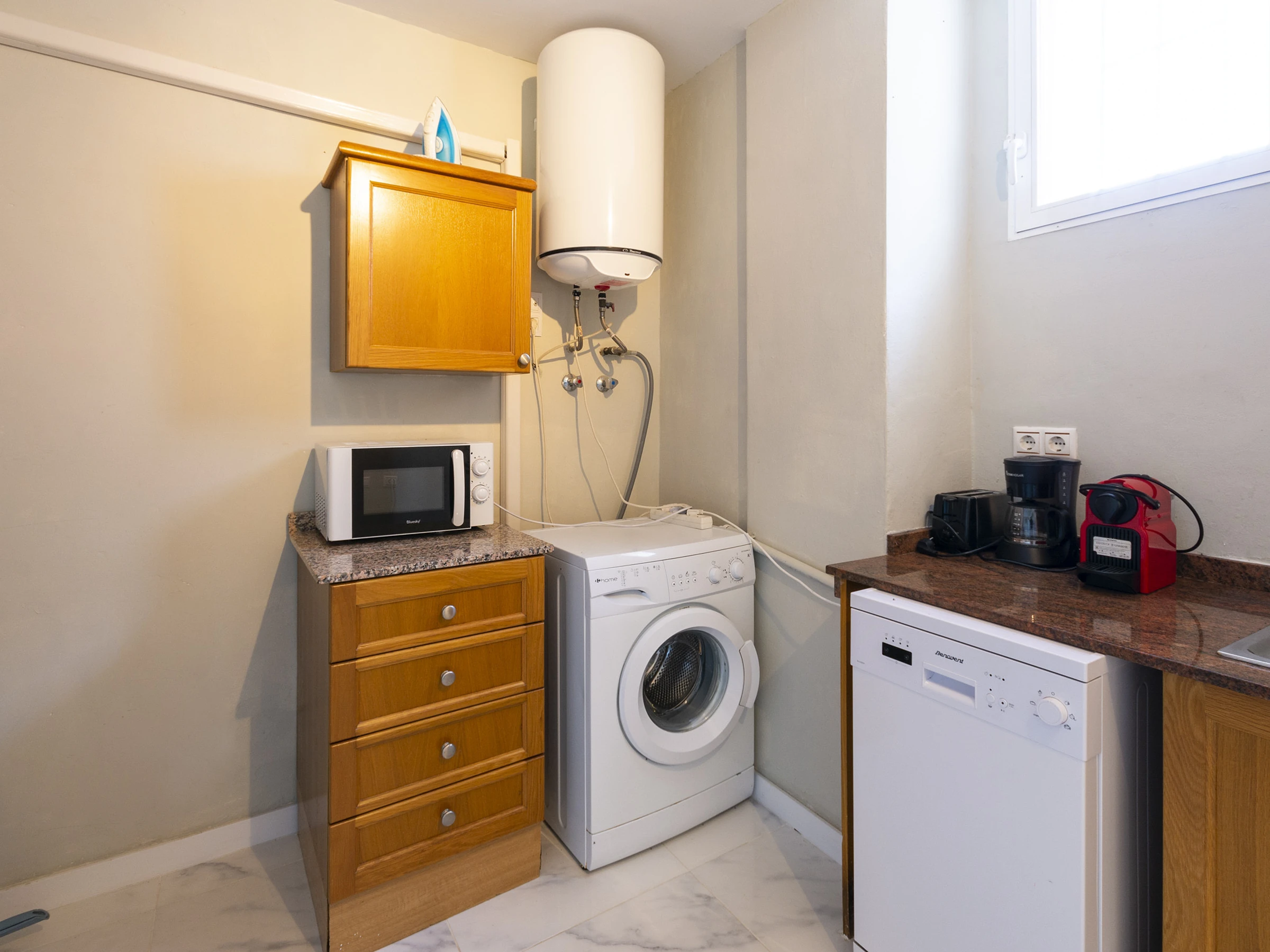 Dieses küche, ist ausgestattet in mikrowelle, gefrierschrank, spülmaschine, kaffeemaschine und toaster.
