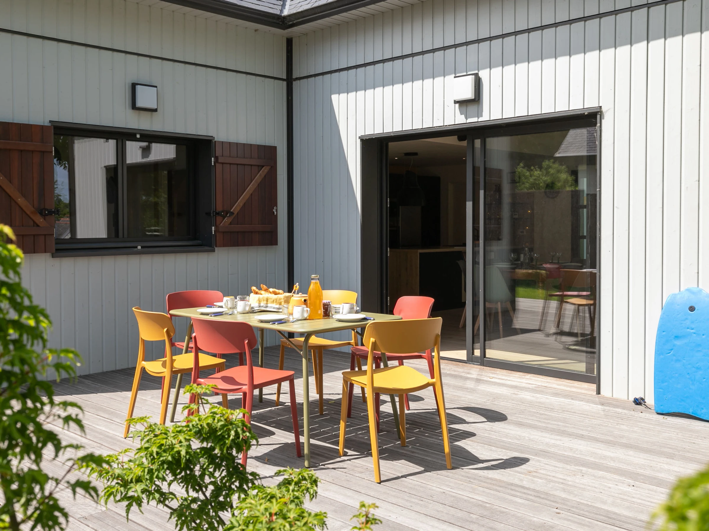 "Ty'vonne", 4-Zimmer-Haus 120 m2 auf 2 Stockwerken. Hell, schön und geschmackvoll eingerichtet: Wohn-/Esszimmer 30 m2. Ausgang zur Terrasse. 1 Zimmer 12 m2 mit 1 franz. Bett (140 cm, Länge 200 cm). Ausgang zur Terrasse. 1 Zimmer 12 m2 mit 1 franz. Bett (160 cm, Länge 200 cm). Offene Küche 15 m2 (Backofen, Geschirrspüler, 4 Induktionskochplatten, Toaster, Wasserkocher, Mikrowelle, Tiefkühler, elektrische Kaffeemaschine). Dusche, Dusche/WC, sep. WC. Obergeschoss: abgeschrägtes grosses Wohn-/Schlafzimmer 30 m2 mit 4 Betten (90 cm, Länge 200 cm). Grosse Terrasse 50 m2, Südlage und Ostlage. Terrassenmöbel. Zur Verfügung: Waschmaschine, Wäschetrockner, Kinderhochstuhl, Babybett bis 2 Jahre, Haartrockner. Internet (WLAN, gratis). Bitte beachten: geeignet für Familien. Nichtraucher-Haus. Rauchmelder. Inserat einer Privatperson nach Artikel 155, IV, CGI.