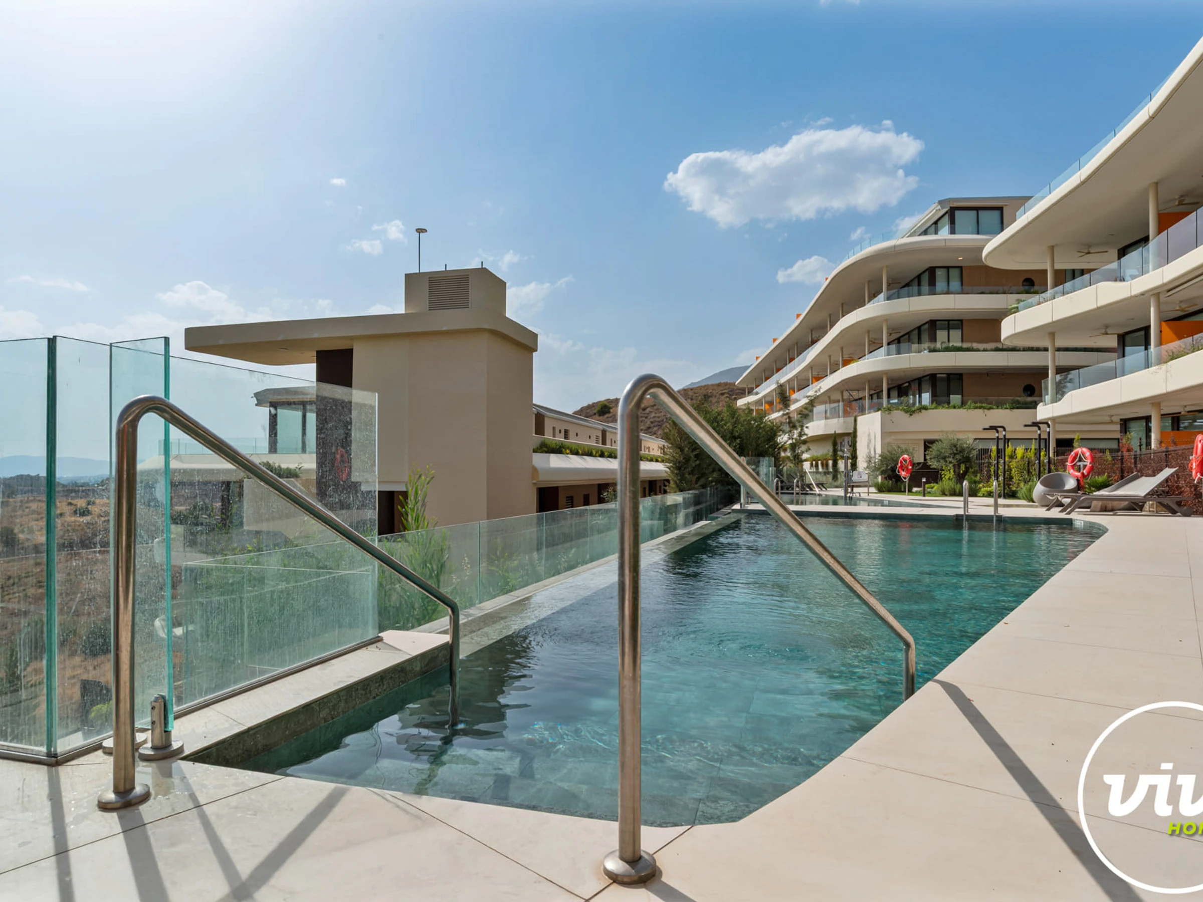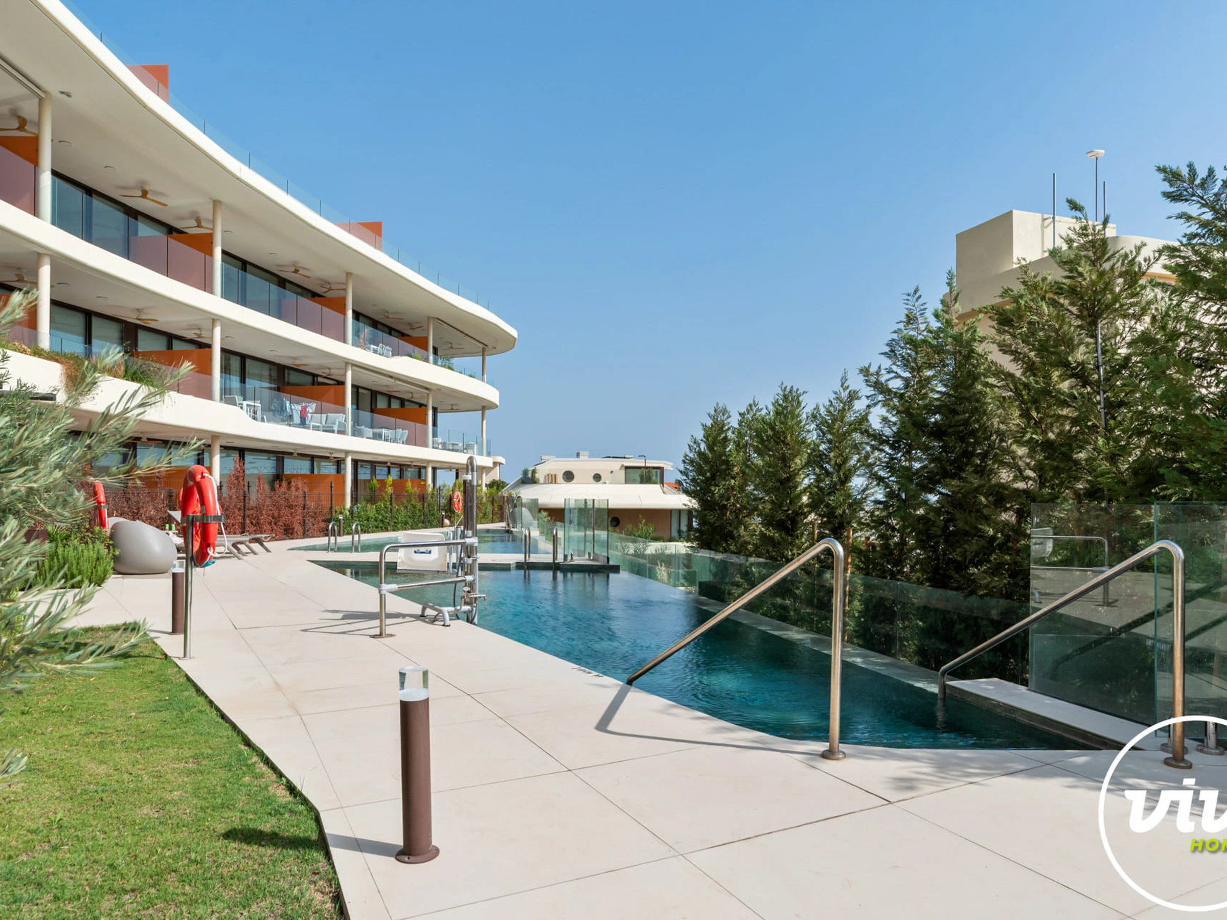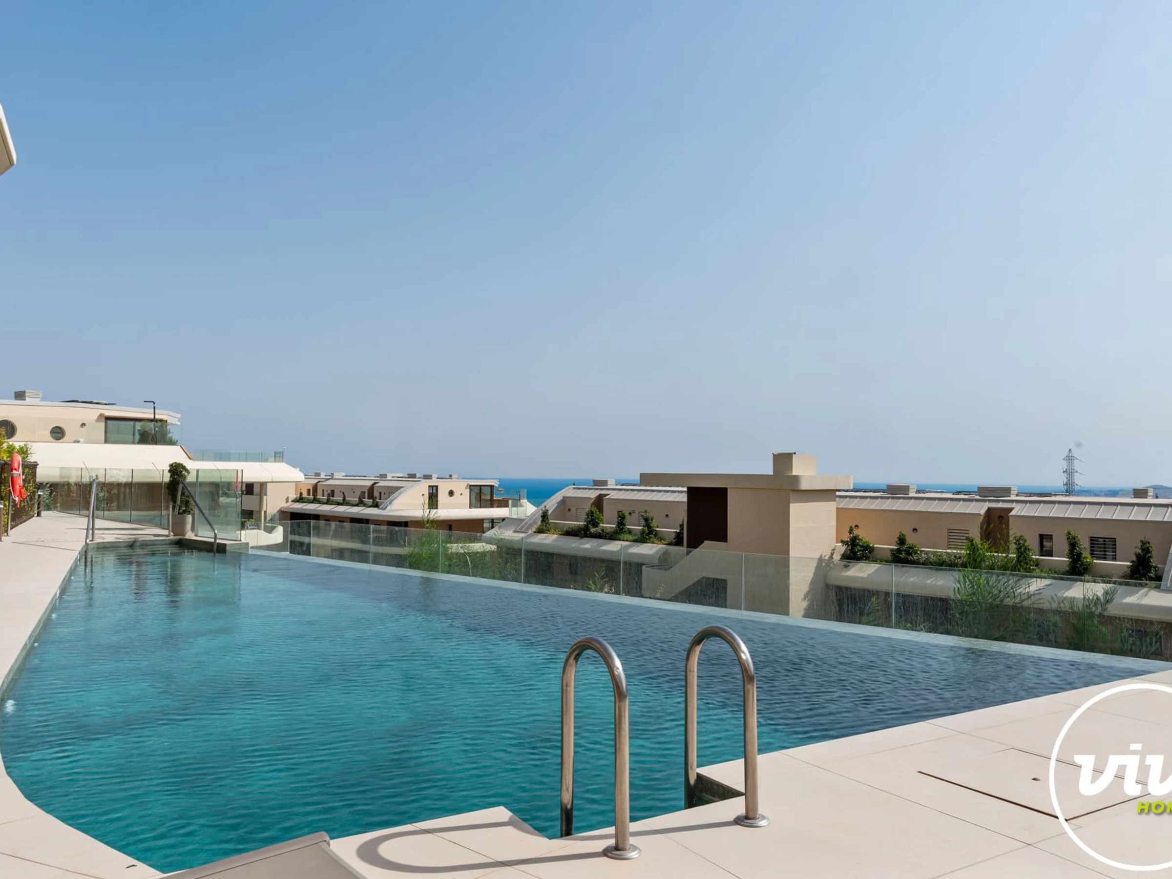 Die Unterkunft verfügt über aufzug, garten, gartenmöbel, 30 m² terrasse, waschmaschine, bügeleisen/-brett, safe, internet (WLAN), haartrockner, balkon, zentralheizung, klimaanlage, swimming-pool gemeinschaftlicher swimming-pool, garage und parkplatz in auf dem grundstück, 1 Fernseher.