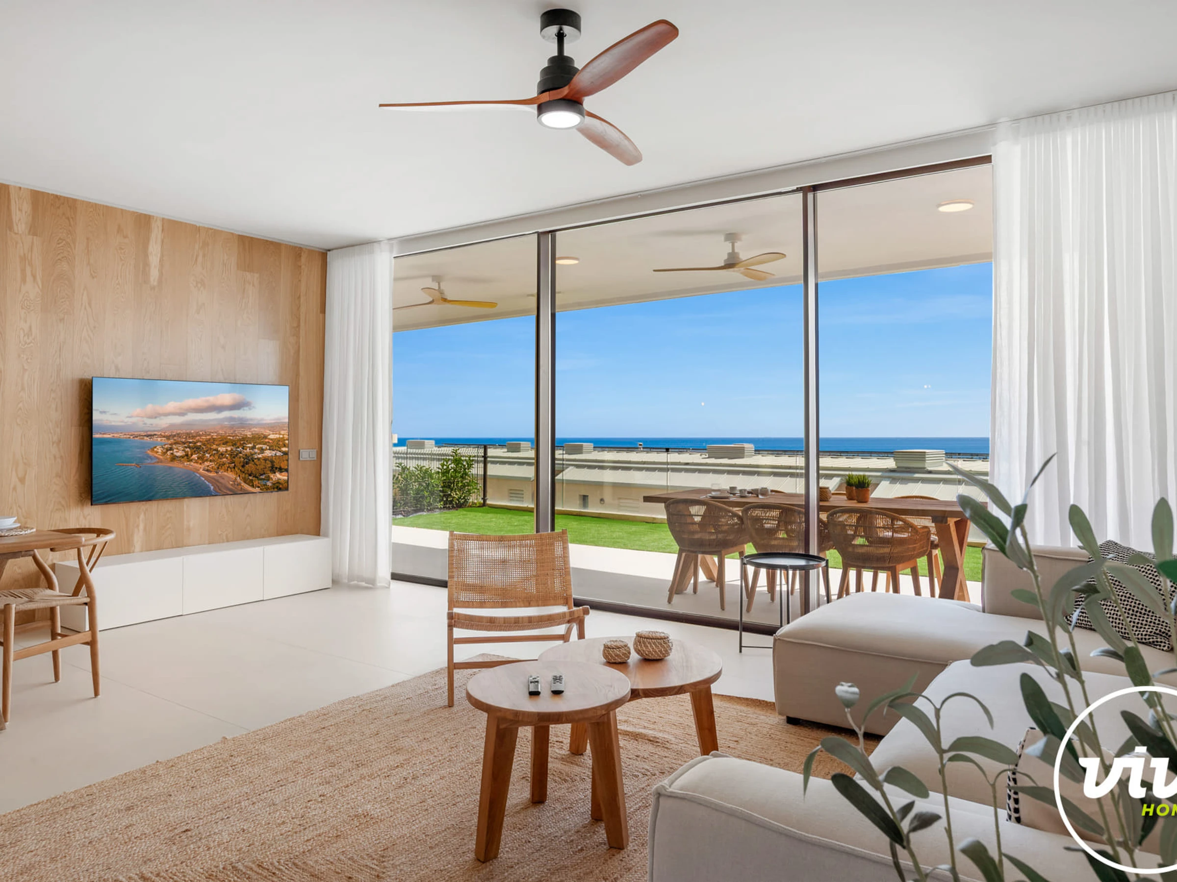 Unterkunft Unterkunft hat 117 m² befindet sichgeschmackvoll ausgestattet und vor kurzem fertiggestellte, mit Blick auf den Strand / das Meer und die Berge.