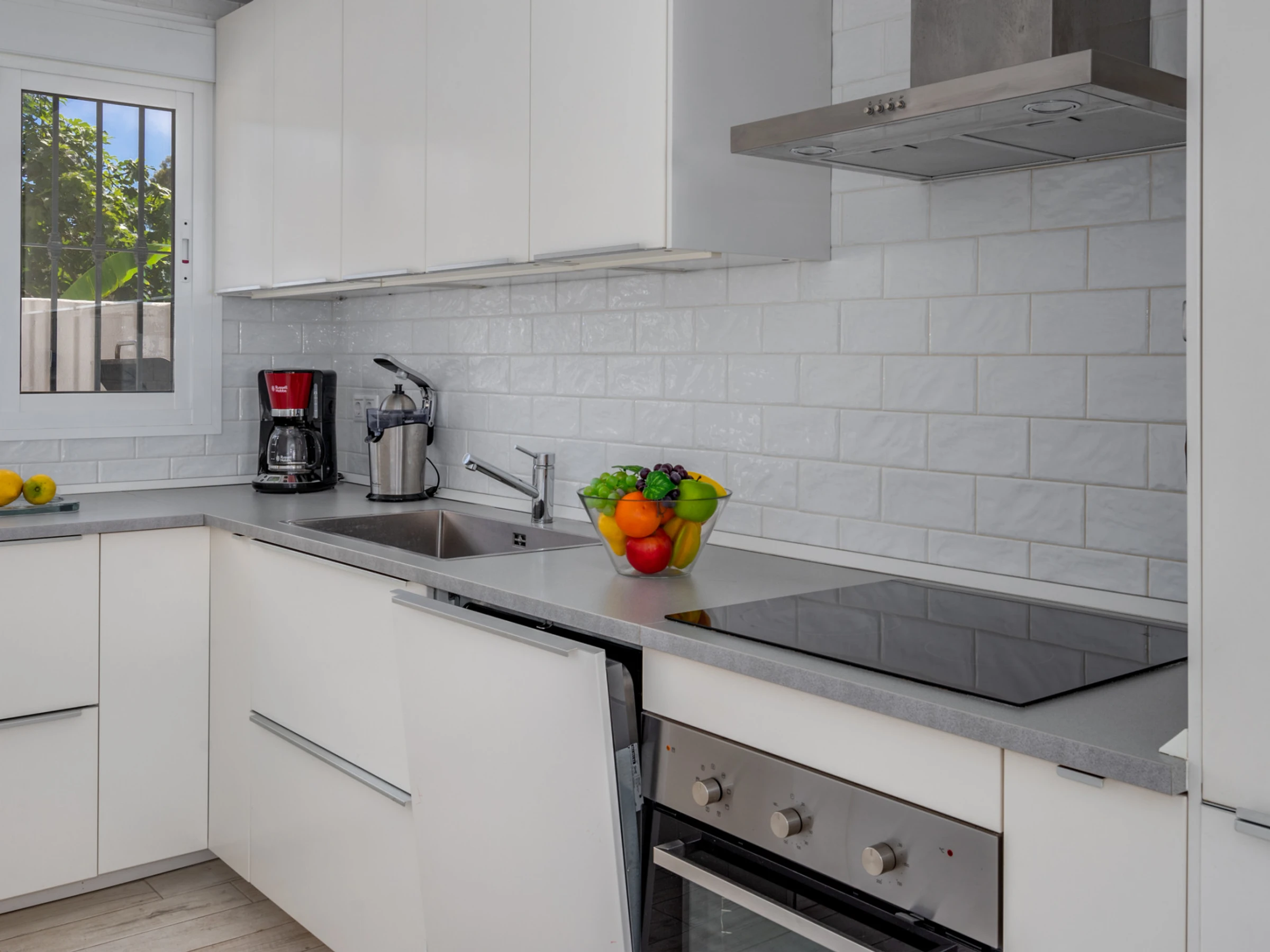 Dieses küche, ist ausgestattet in kühlschrank, mikrowelle, backofen, gefrierschrank, spülmaschine, kochutensilien, kaffeemaschine, toaster und wasserkocher.
