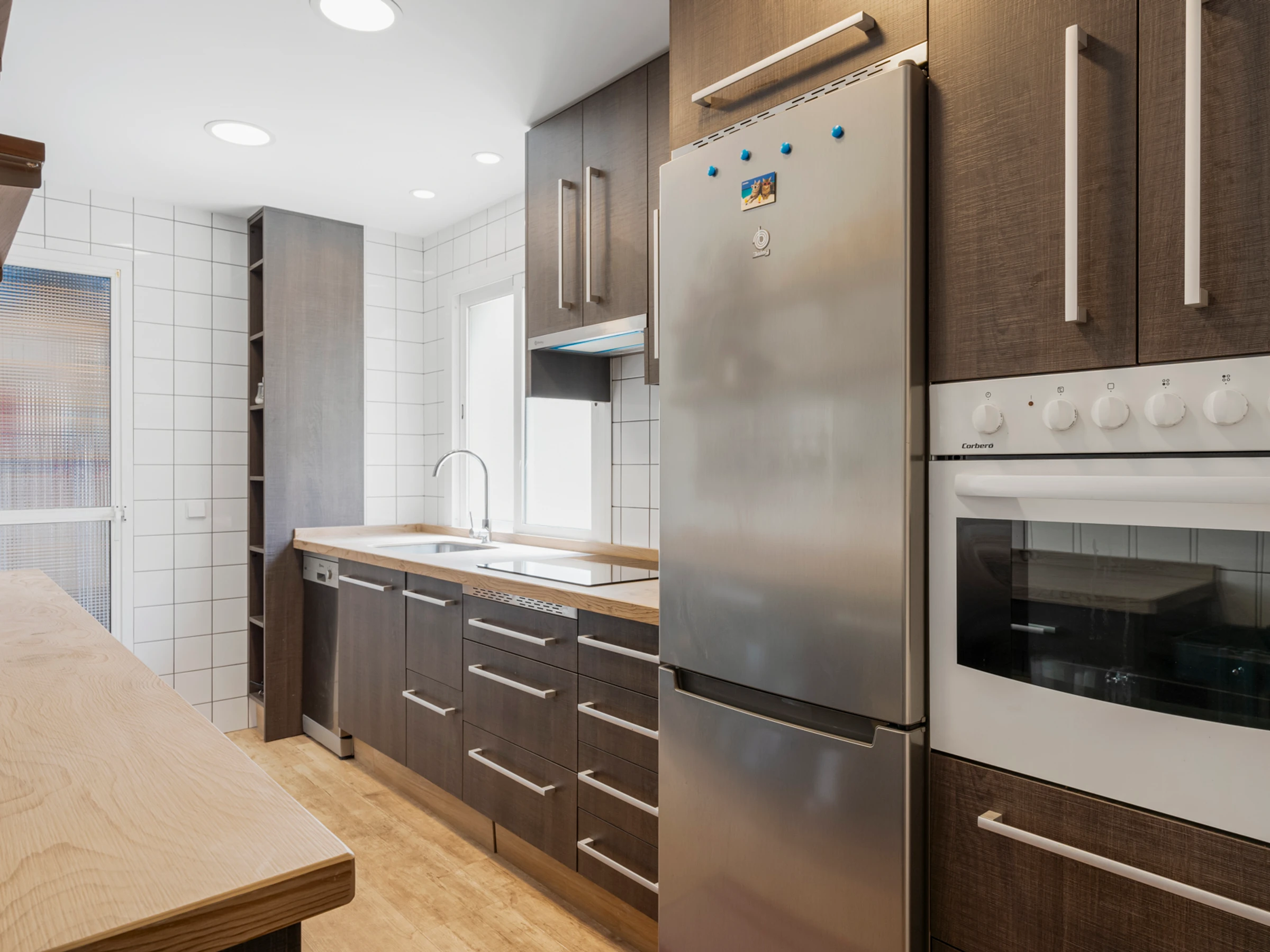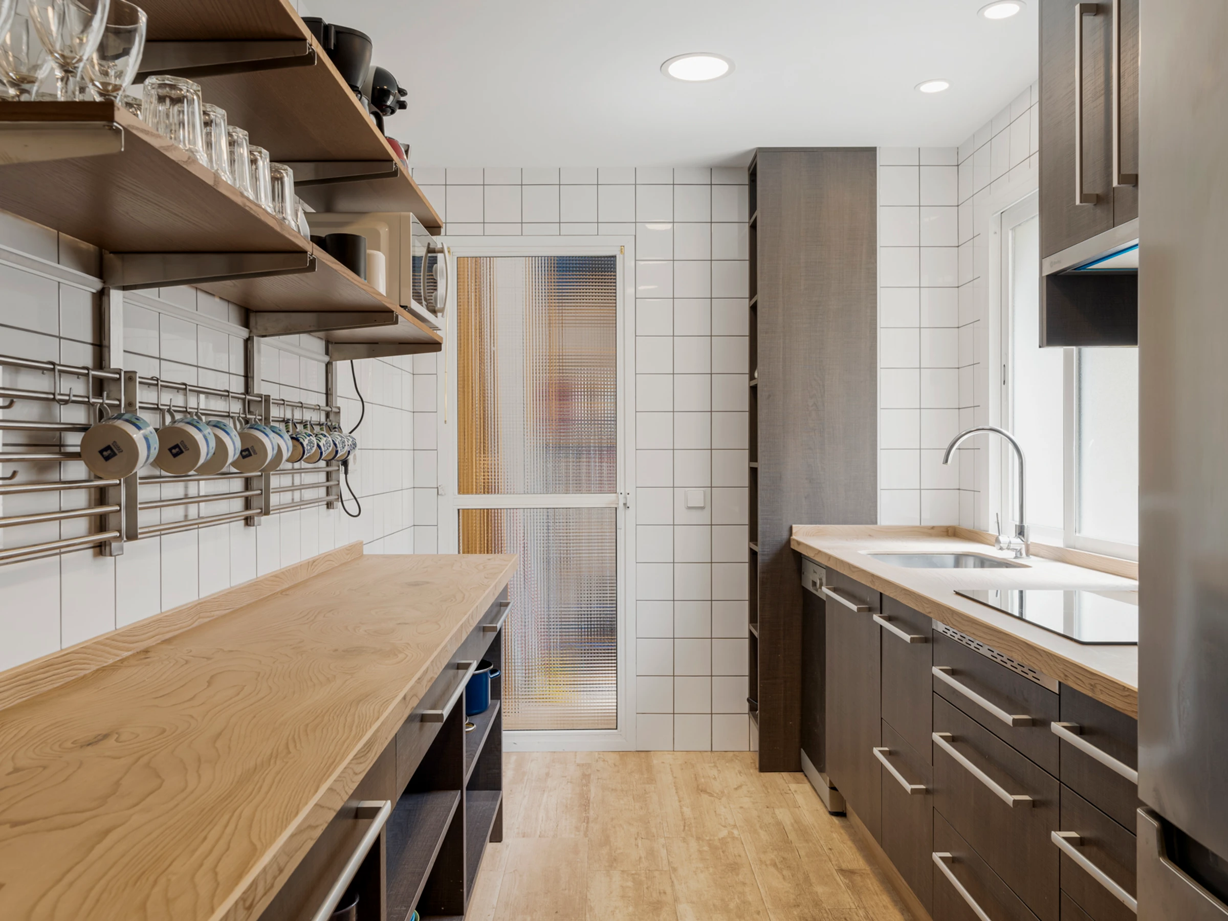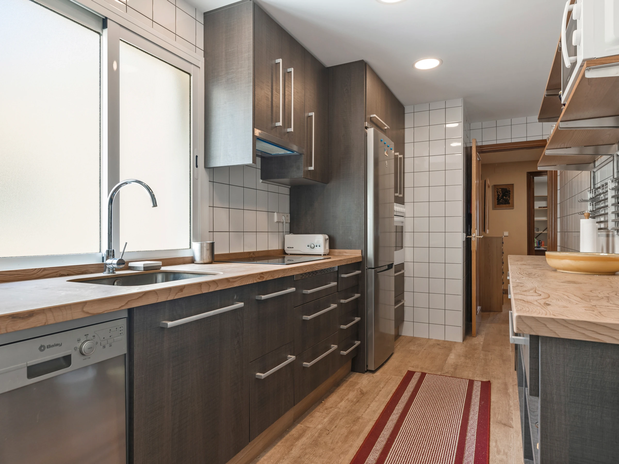 Dieses küche, ist ausgestattet in kühlschrank, mikrowelle, backofen, gefrierschrank, spülmaschine, kochutensilien, kaffeemaschine, toaster und wasserkocher.