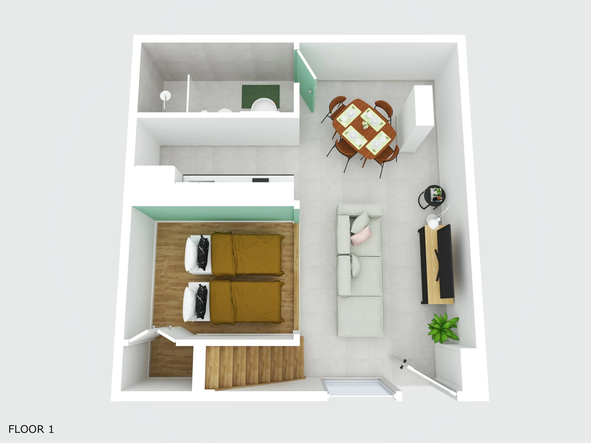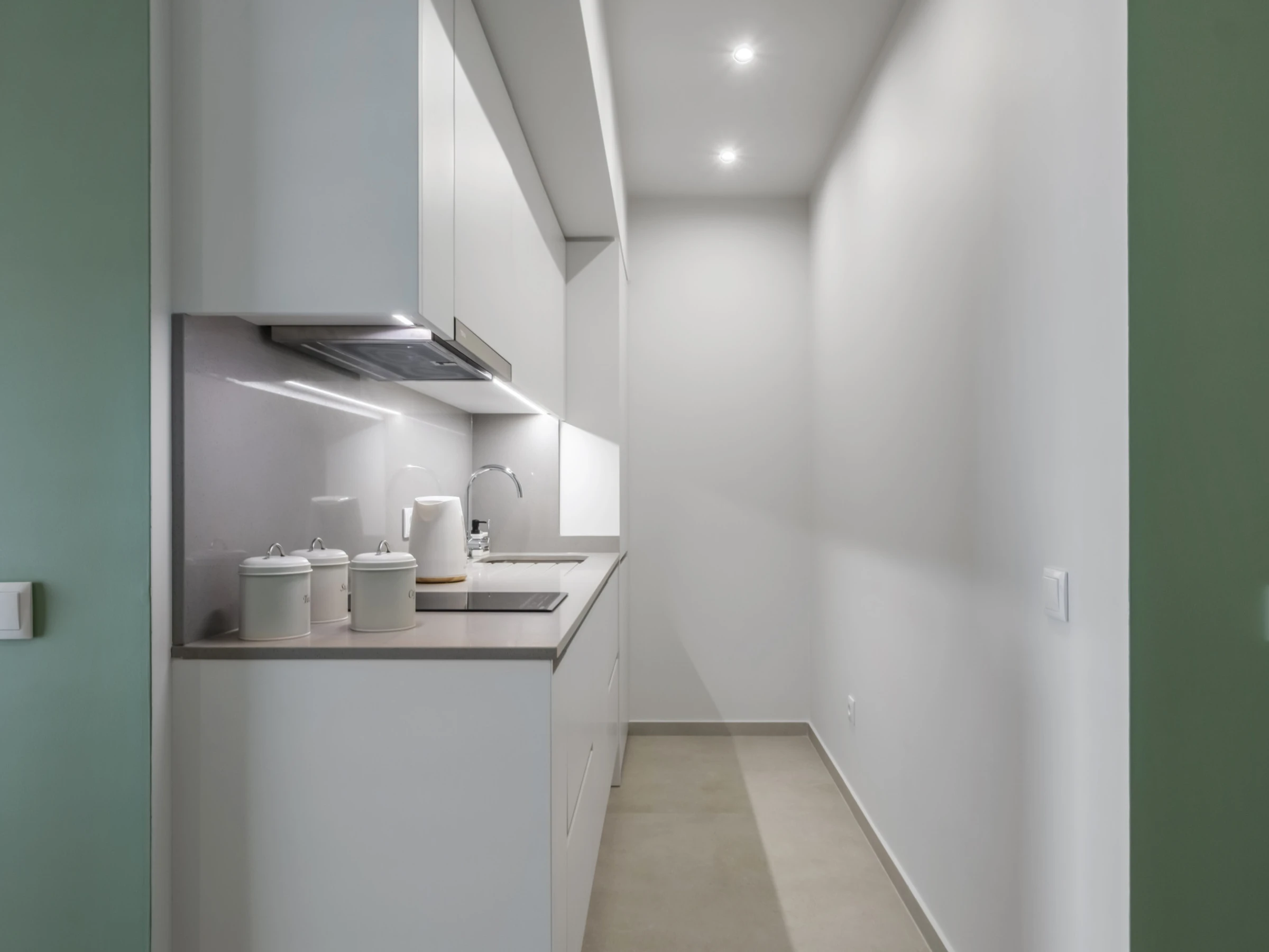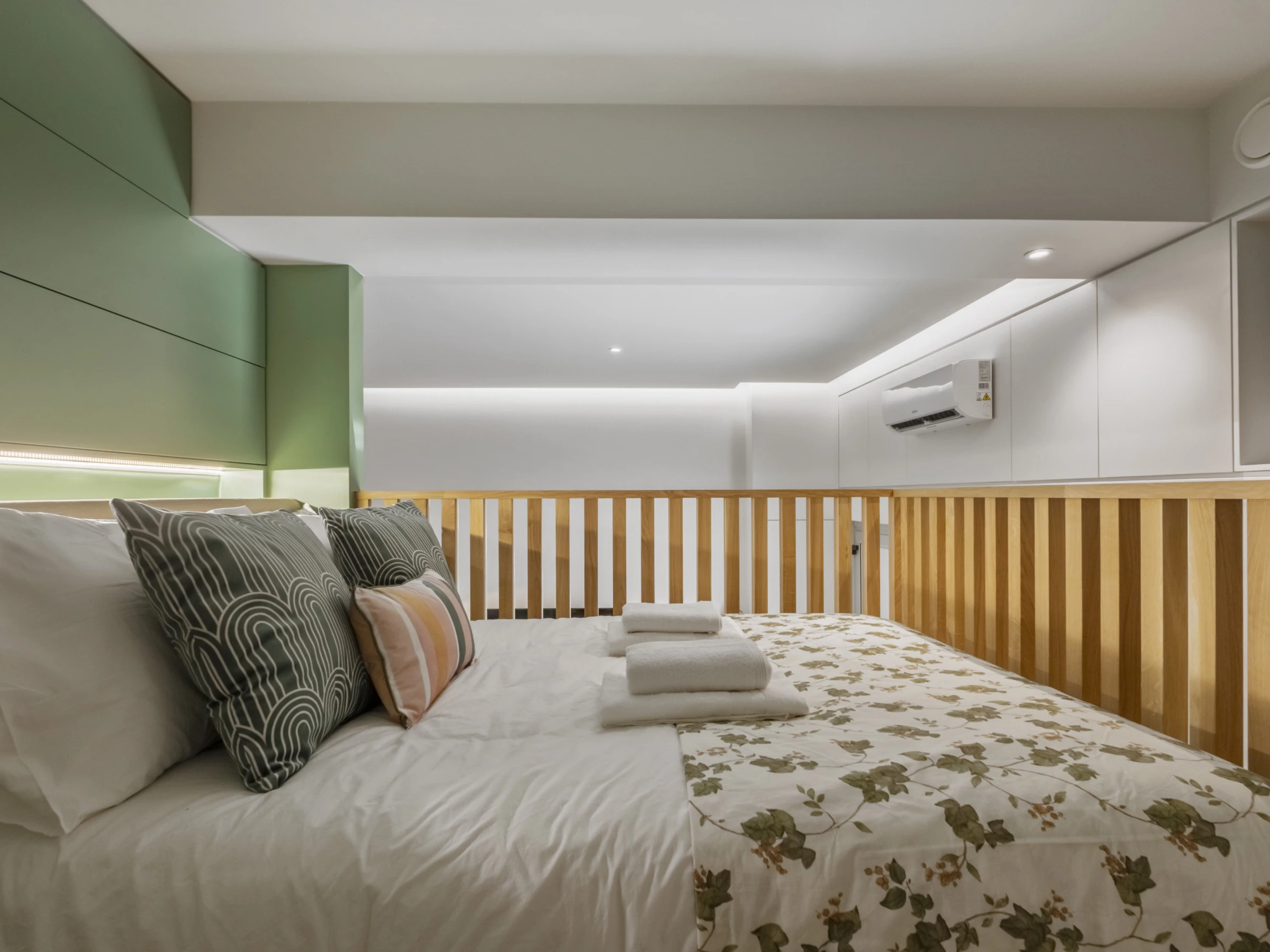 Im Schlafbereich wurde die Umgebung so gestaltet, dass absolute Ruhe gewährleistet ist, mit sanfter Beleuchtung und Fernsehen, ideal für Paare. Das Studio verfügt zudem über zwei zusätzliche Betten, die perfekt für kleine Kinder sind, ohne den Komfort zu beeinträchtigen.