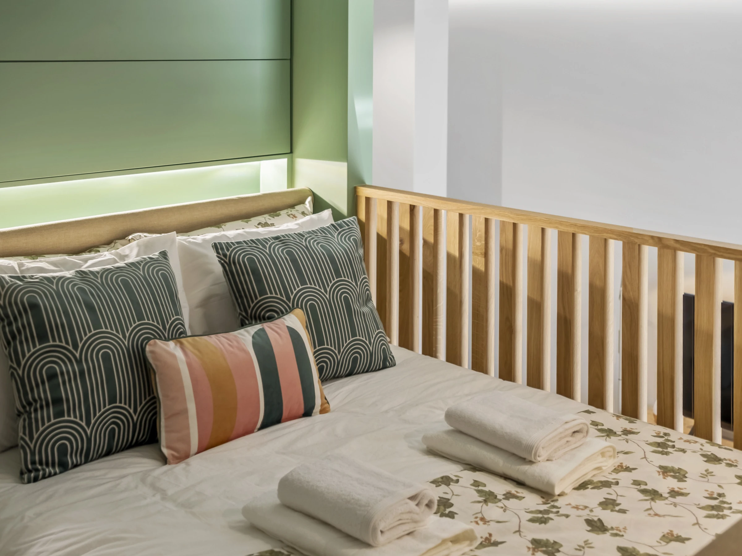 Mit einem zeitgemäßen Design und sorgfältiger Dekoration kombiniert es sanfte Farben und Holzdetails, die eine ruhige und einladende Atmosphäre schaffen. Jedes Element wurde ausgewählt, um Harmonie und Wohlbefinden zu bieten - von der einstellbaren Beleuchtung, die ideal ist, um die perfekte Atmosphäre zu schaffen, bis hin zu kleinen Dekorationsstücken, die dem Raum Persönlichkeit verleihen.