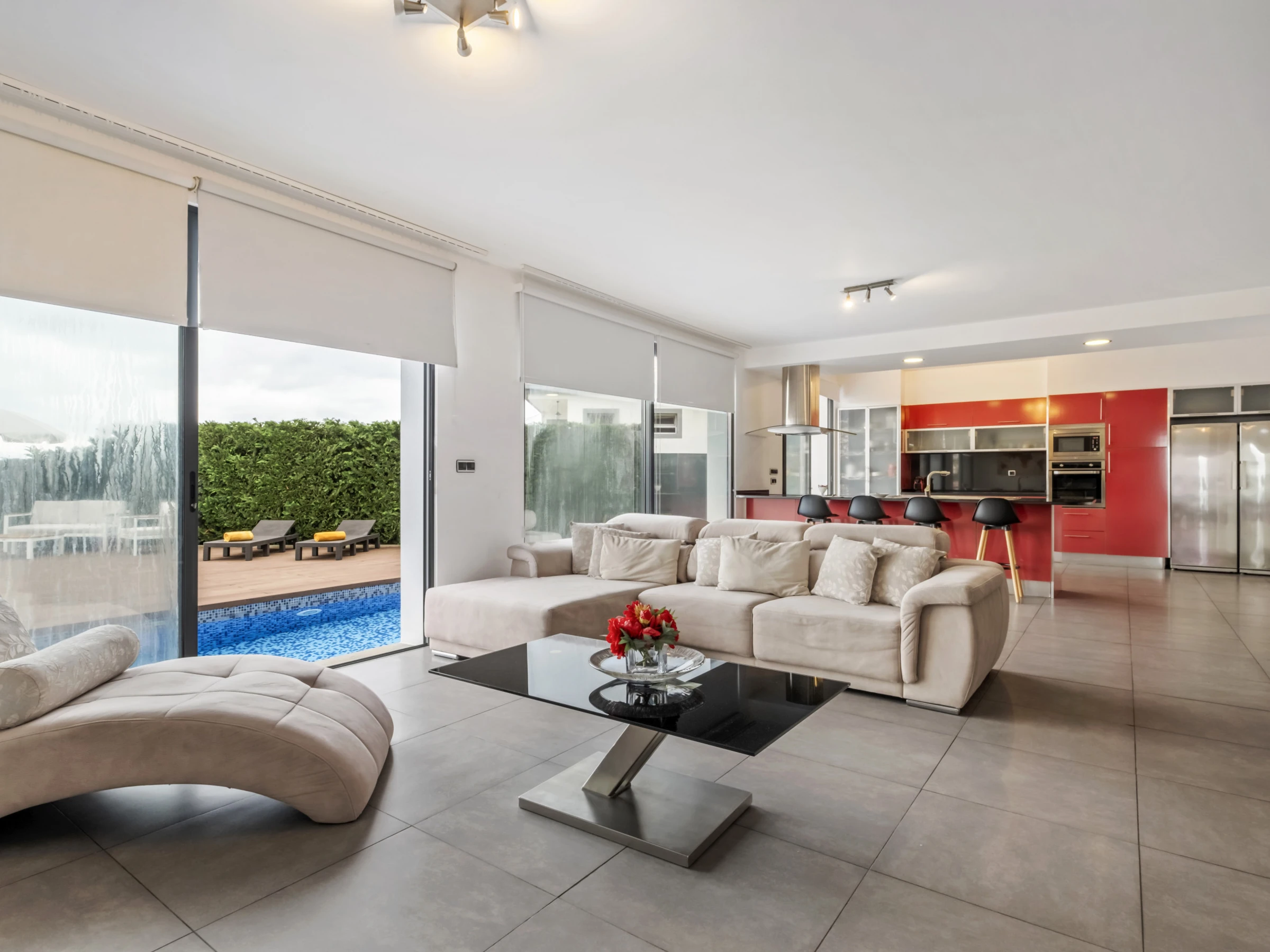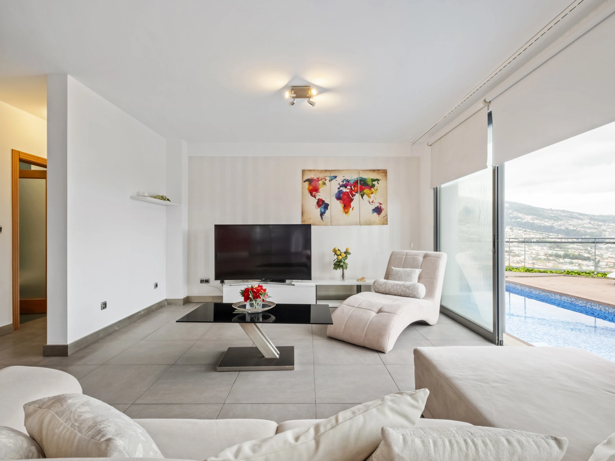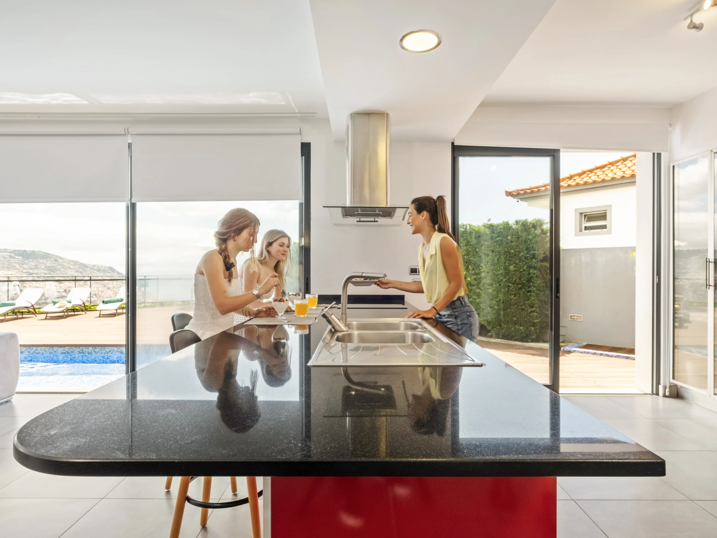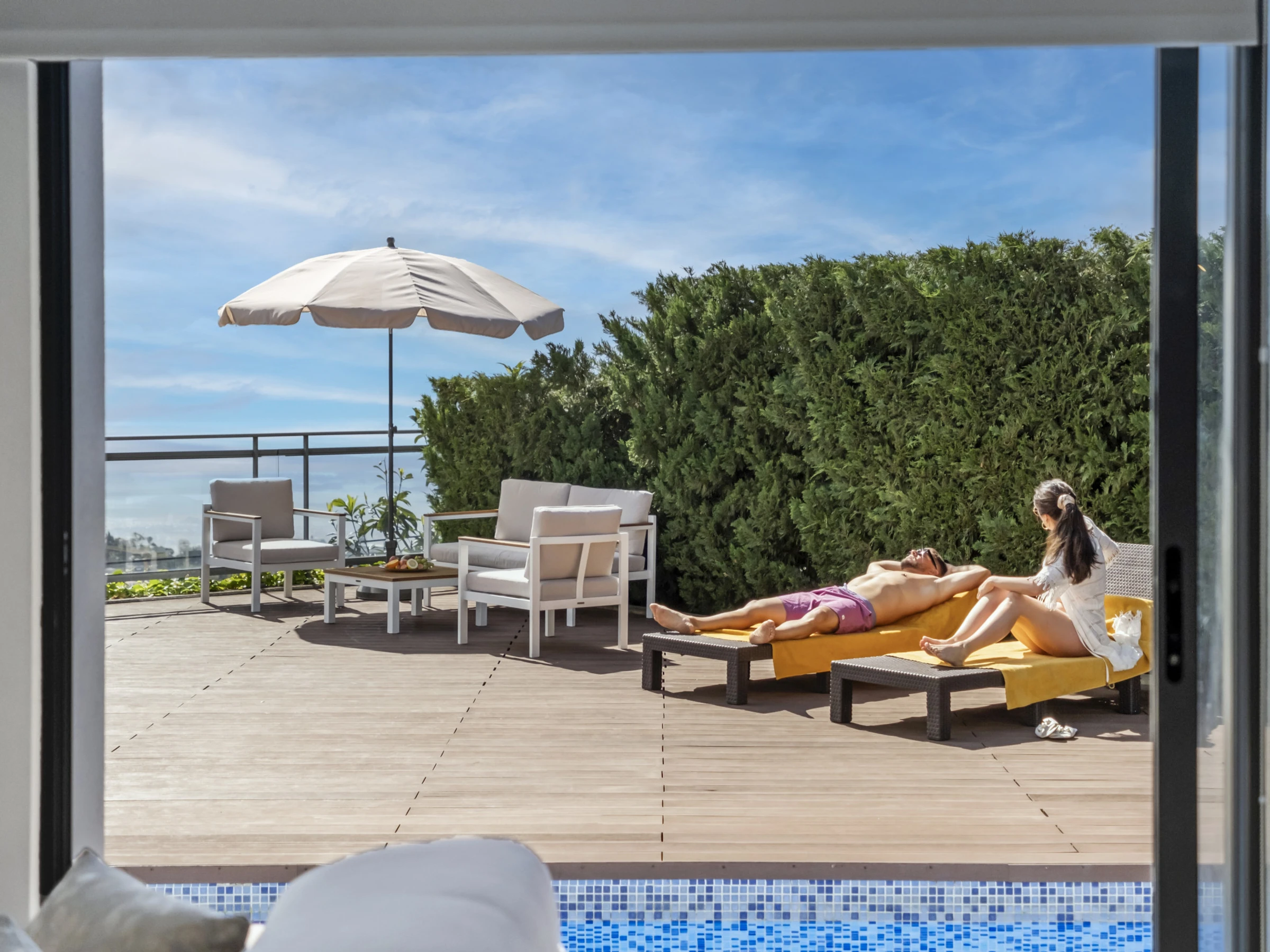 Draußen geht die Magie weiter. Der Poolbereich lädt zu erfrischenden Abkühlung unter dem blauen Himmel Madeiras ein, während die Sonnenterrasse mit Sonnenliegen es Ihnen ermöglicht, das milde Klima der Insel zu genießen.