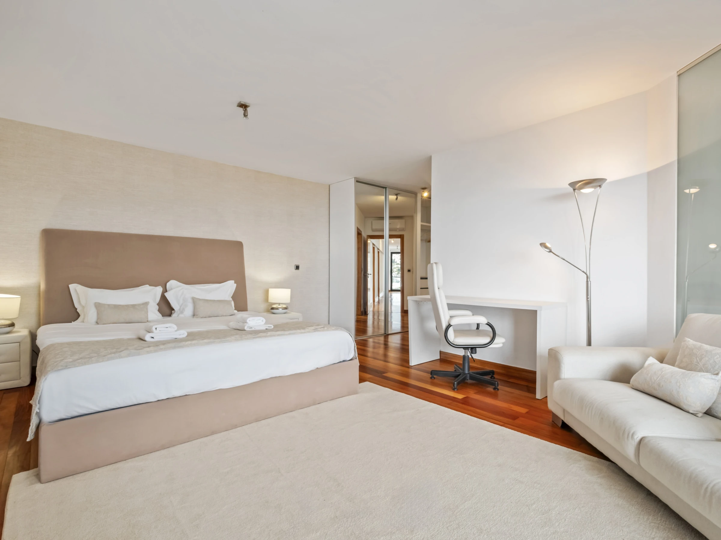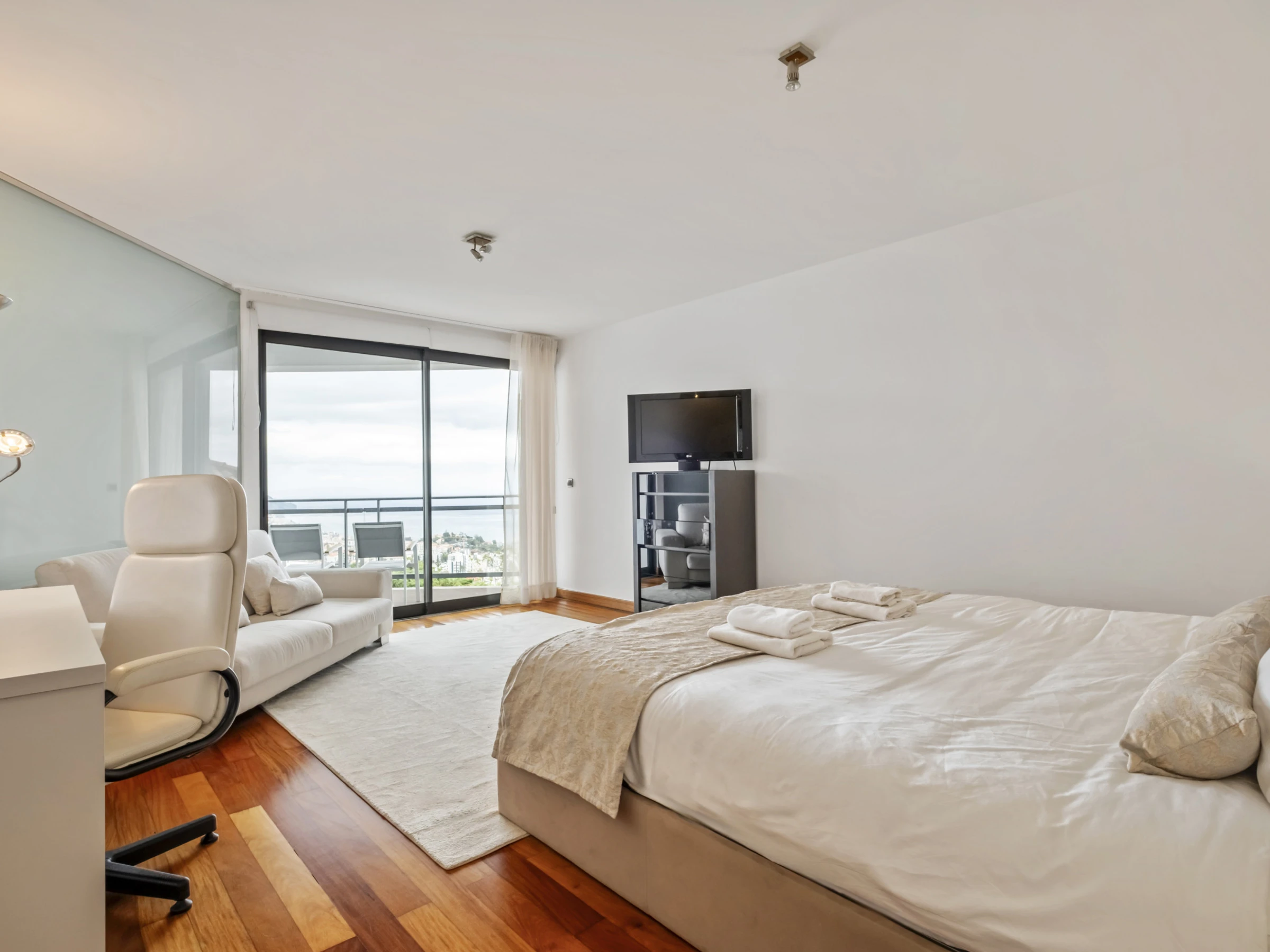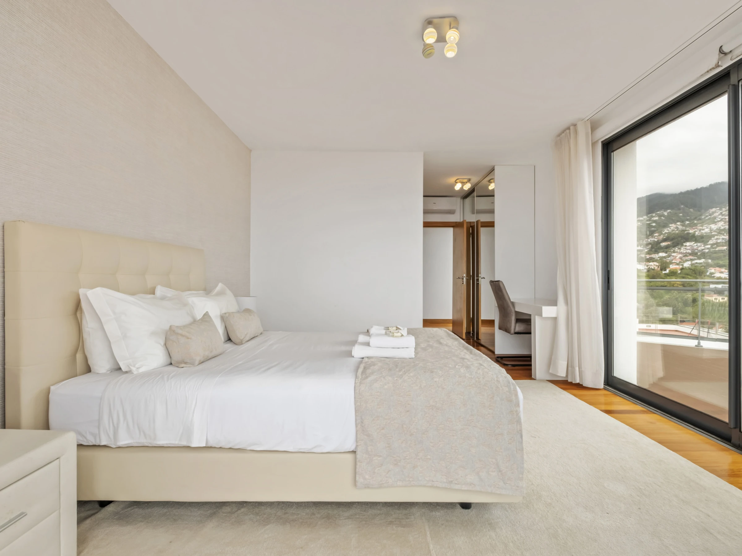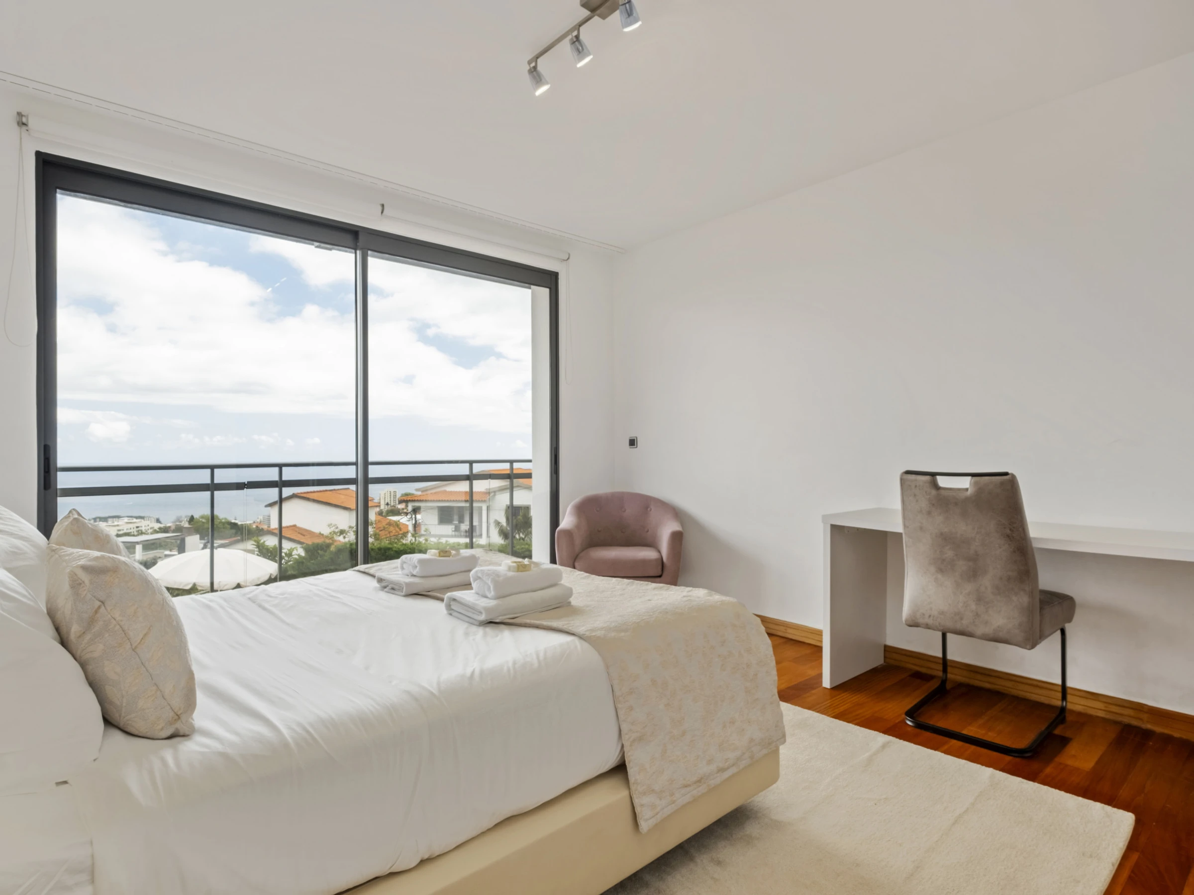 Im Obergeschoss finden Sie vier wunderschöne Suiten, alle mit eigenem Badezimmer, Balkon und Panoramablick über die Stadt und den Ozean. Jedes Zimmer wurde sorgfältig gestaltet, um maximalen Komfort und Ruhe zu bieten, und lädt zur Entspannung in einer absolut inspirierenden Umgebung ein.