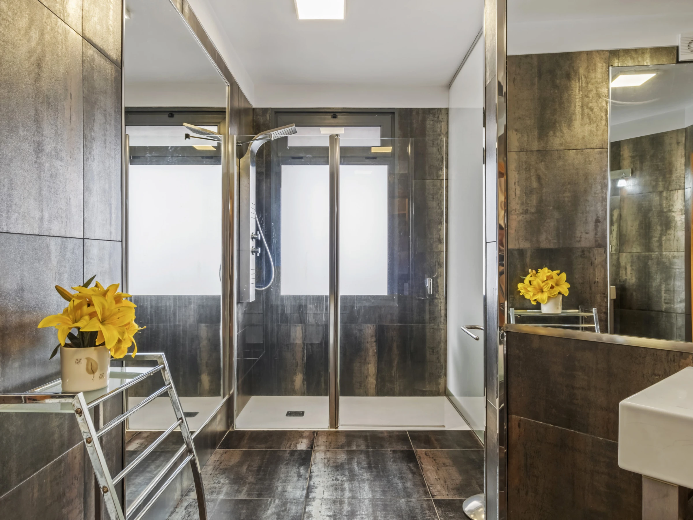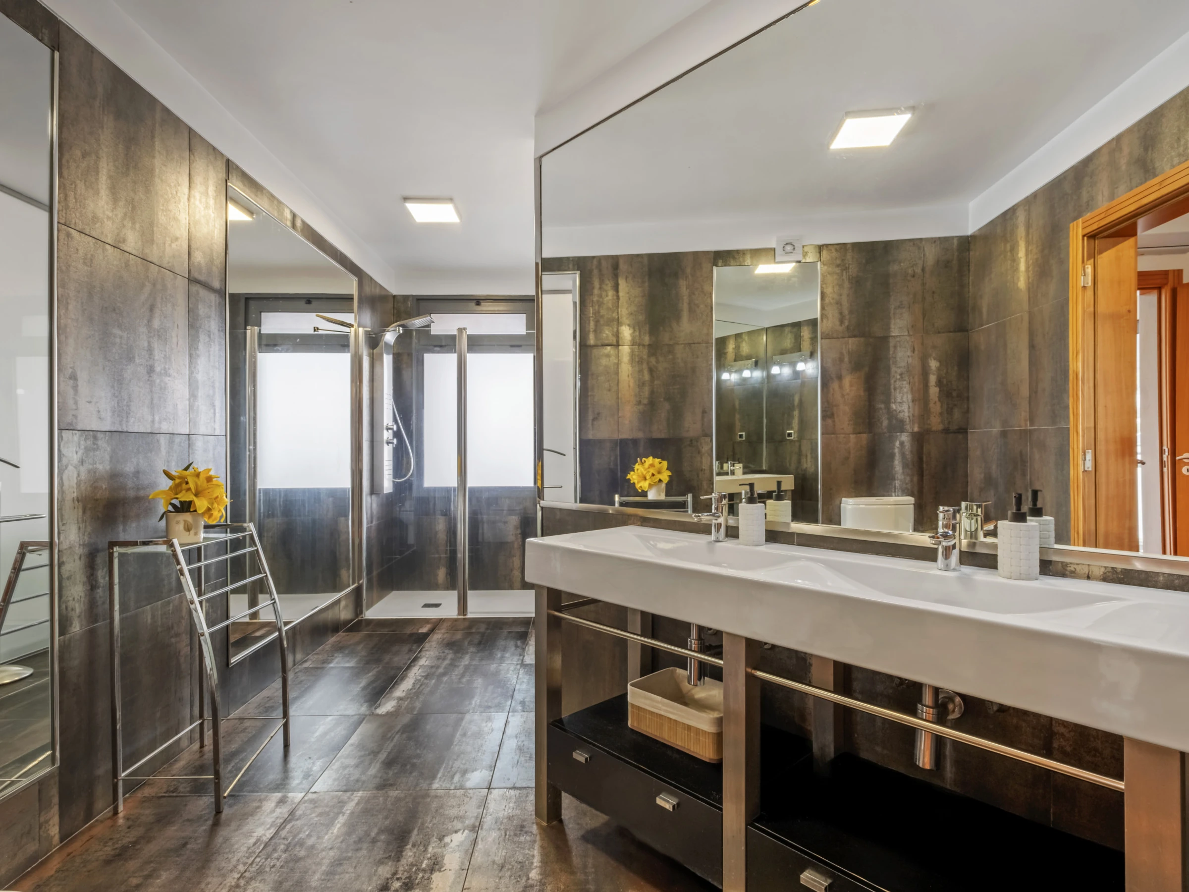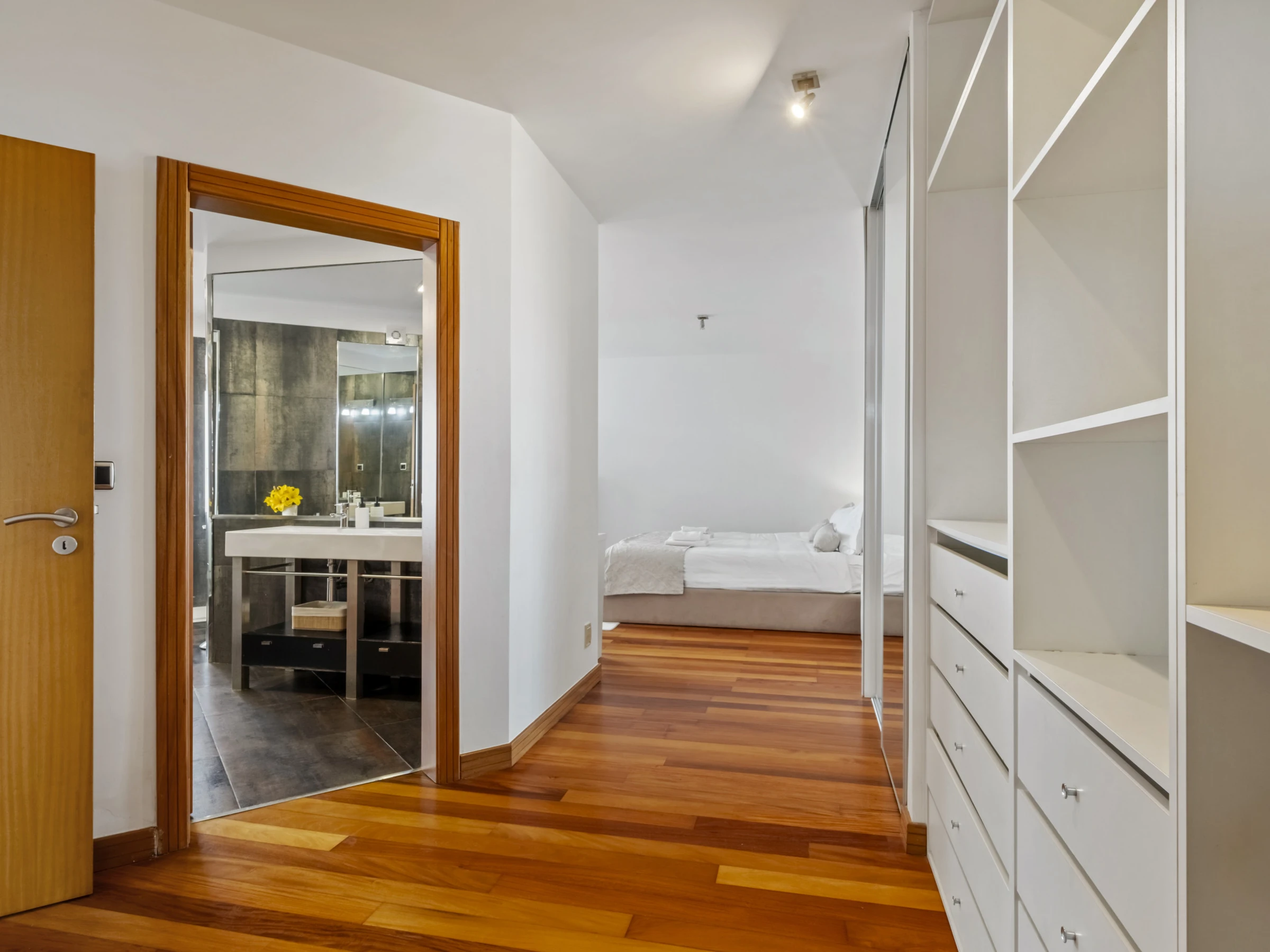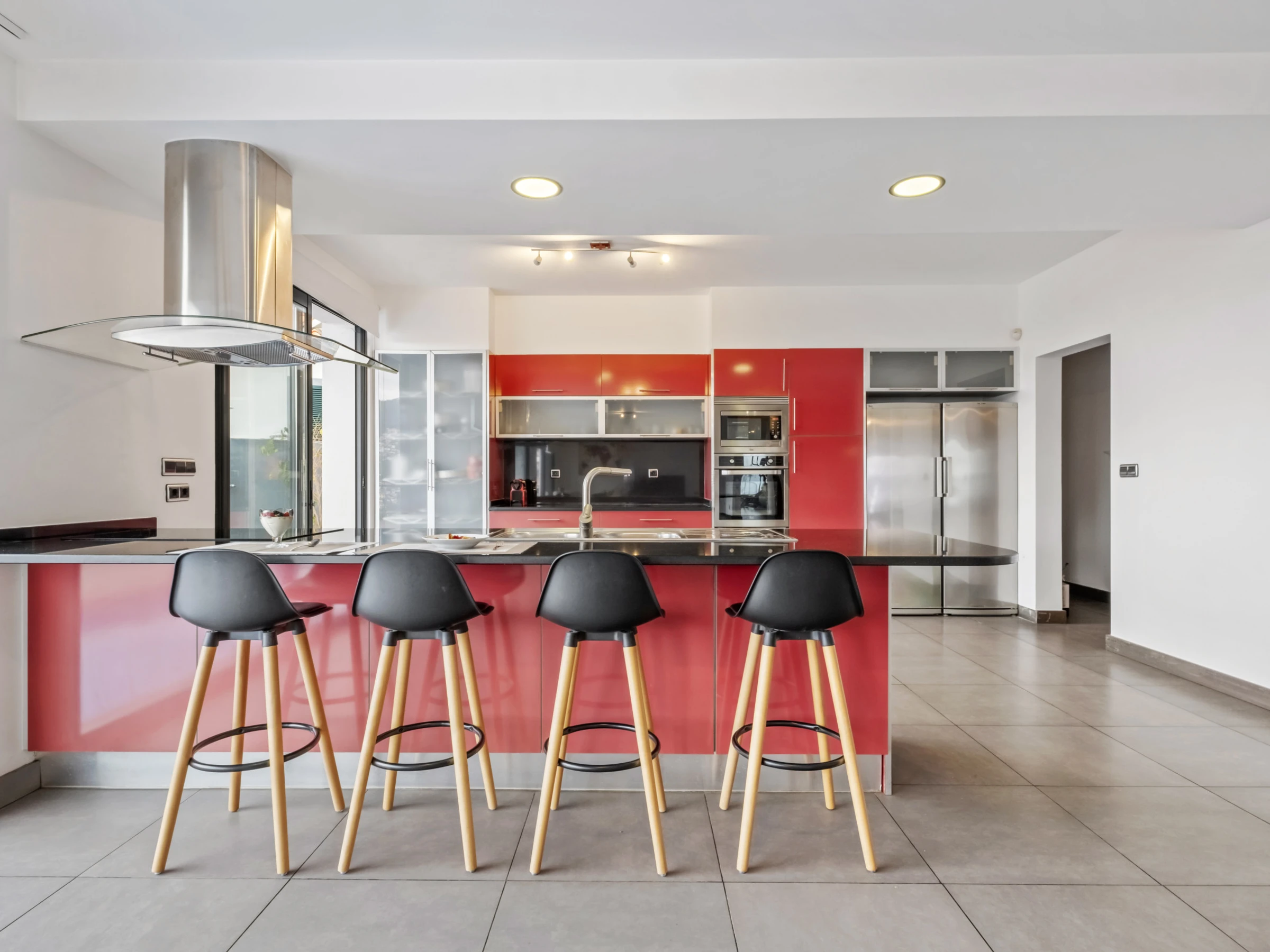 Im Obergeschoss finden Sie vier wunderschöne Suiten, alle mit eigenem Badezimmer, Balkon und Panoramablick über die Stadt und den Ozean. Jedes Zimmer wurde sorgfältig gestaltet, um maximalen Komfort und Ruhe zu bieten, und lädt zur Entspannung in einer absolut inspirierenden Umgebung ein.