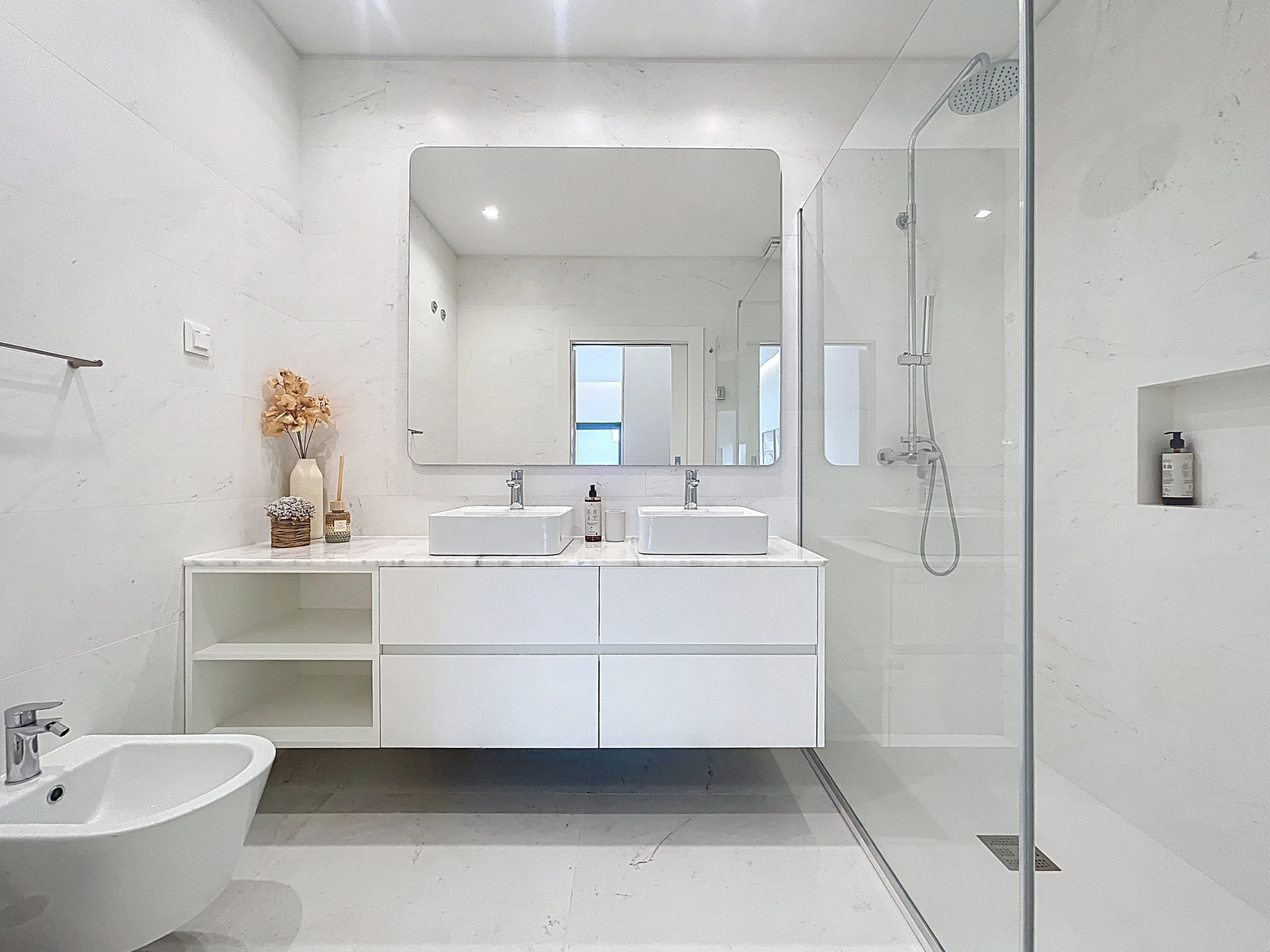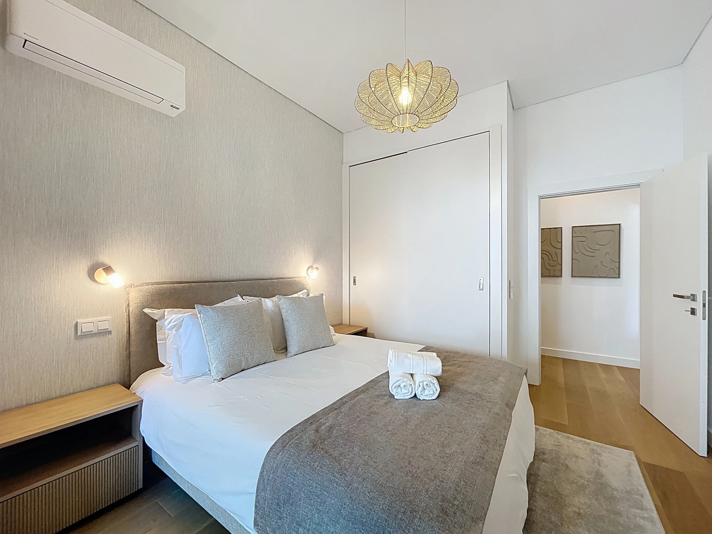 Die Wohnung verfügt über zwei komfortable Schlafzimmer, beide ausgestattet mit Queensize-Betten, und ein Doppelschlafsofa im Wohnzimmer, das eine erholsame Umgebung nach einem Tag voller Erkundungen bietet. Es gibt zwei Badezimmer mit Duschen, eines davon en-suite, was Bequemlichkeit und Privatsphäre für alle Gäste gewährleistet. Frische Bettwäsche und Badetücher werden für Ihren Aufenthalt bereitgestellt.