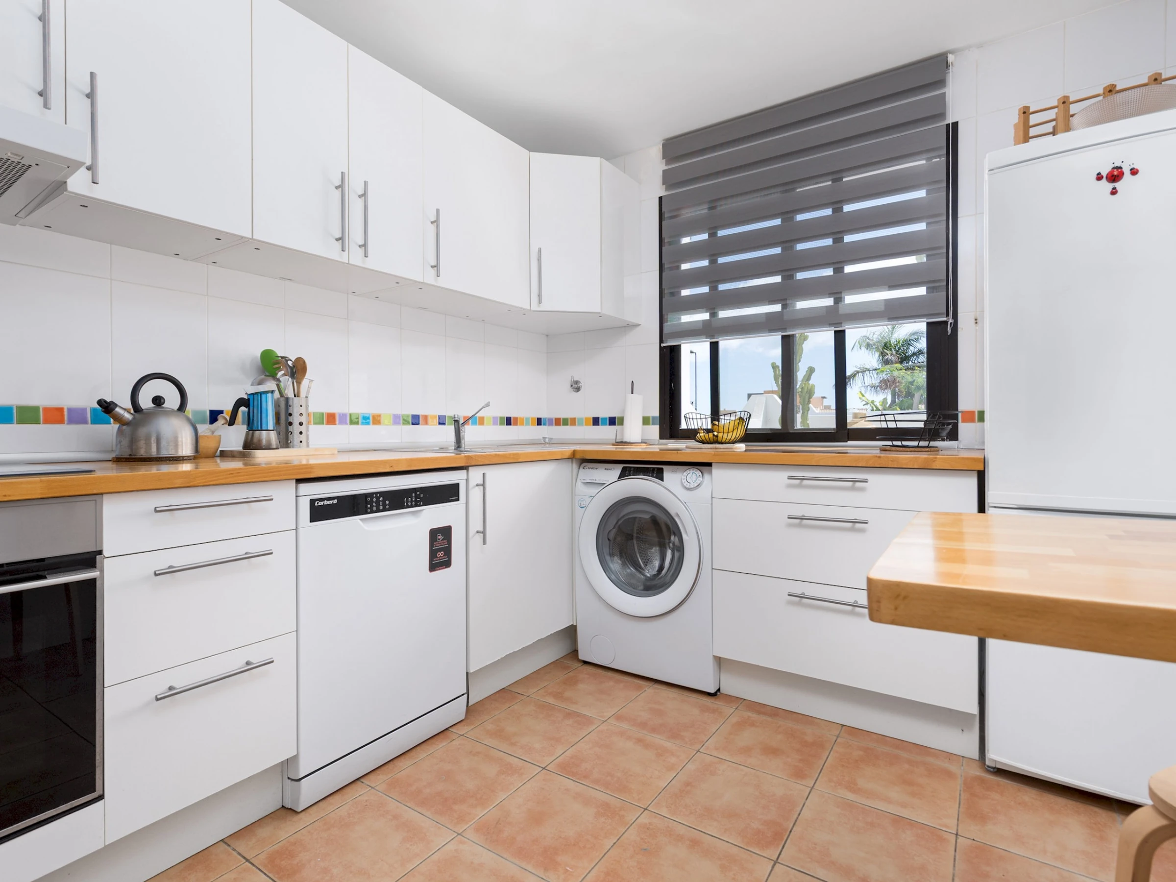 Dieses küche, ist ausgestattet in mikrowelle, backofen, spülmaschine, kochutensilien, kaffeemaschine und toaster.