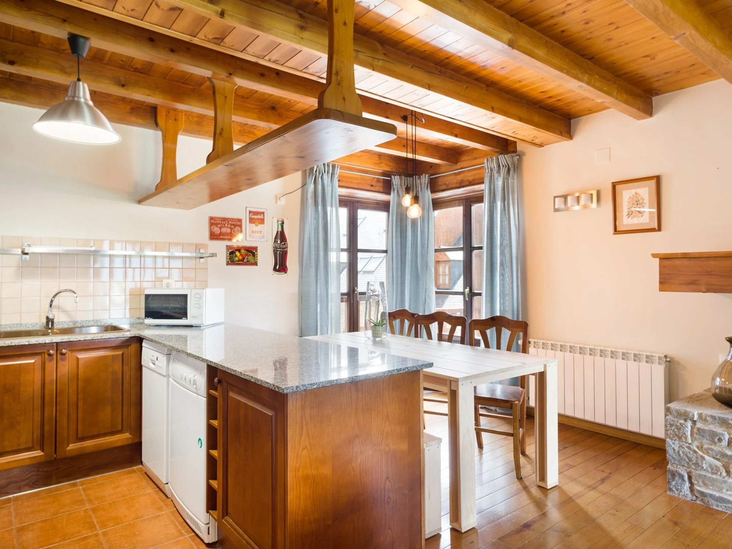 Dieses küche, ist ausgestattet in kühlschrank, mikrowelle, backofen, gefrierschrank, spülmaschine, kochutensilien, kaffeemaschine, toaster, wasserkocher und saftpresse.