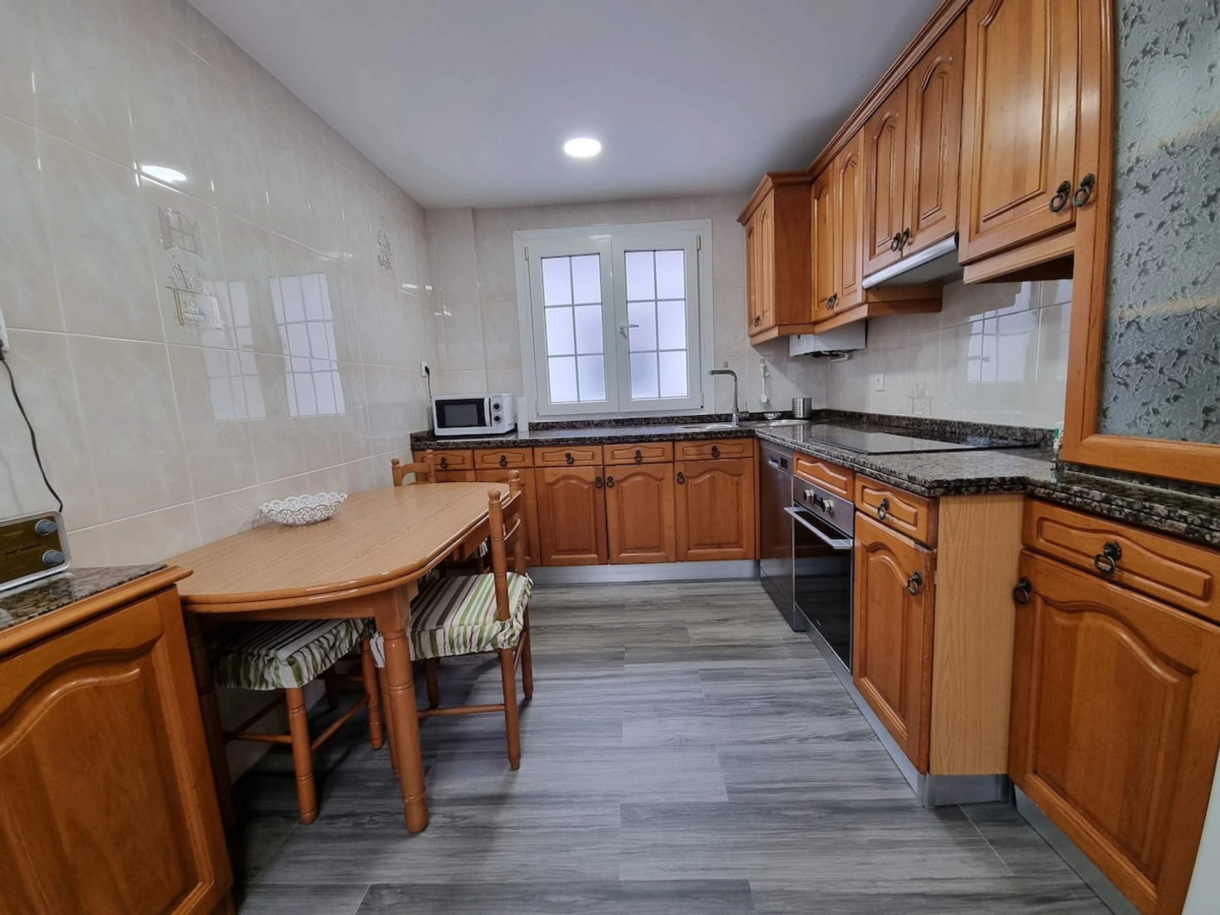 Dieses separate küche, mit ceranfeld, ist ausgestattet in kühlschrank, mikrowelle, backofen, gefrierschrank, spülmaschine, geschirr/besteck, kochutensilien, kaffeemaschine, toaster, wasserkocher und saftpresse.