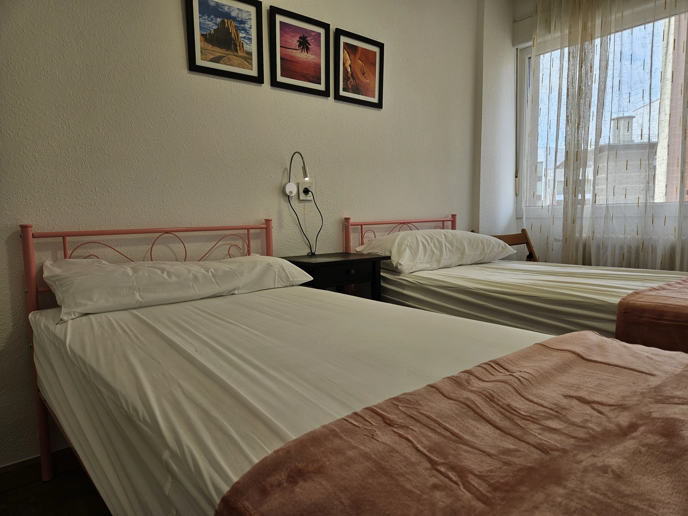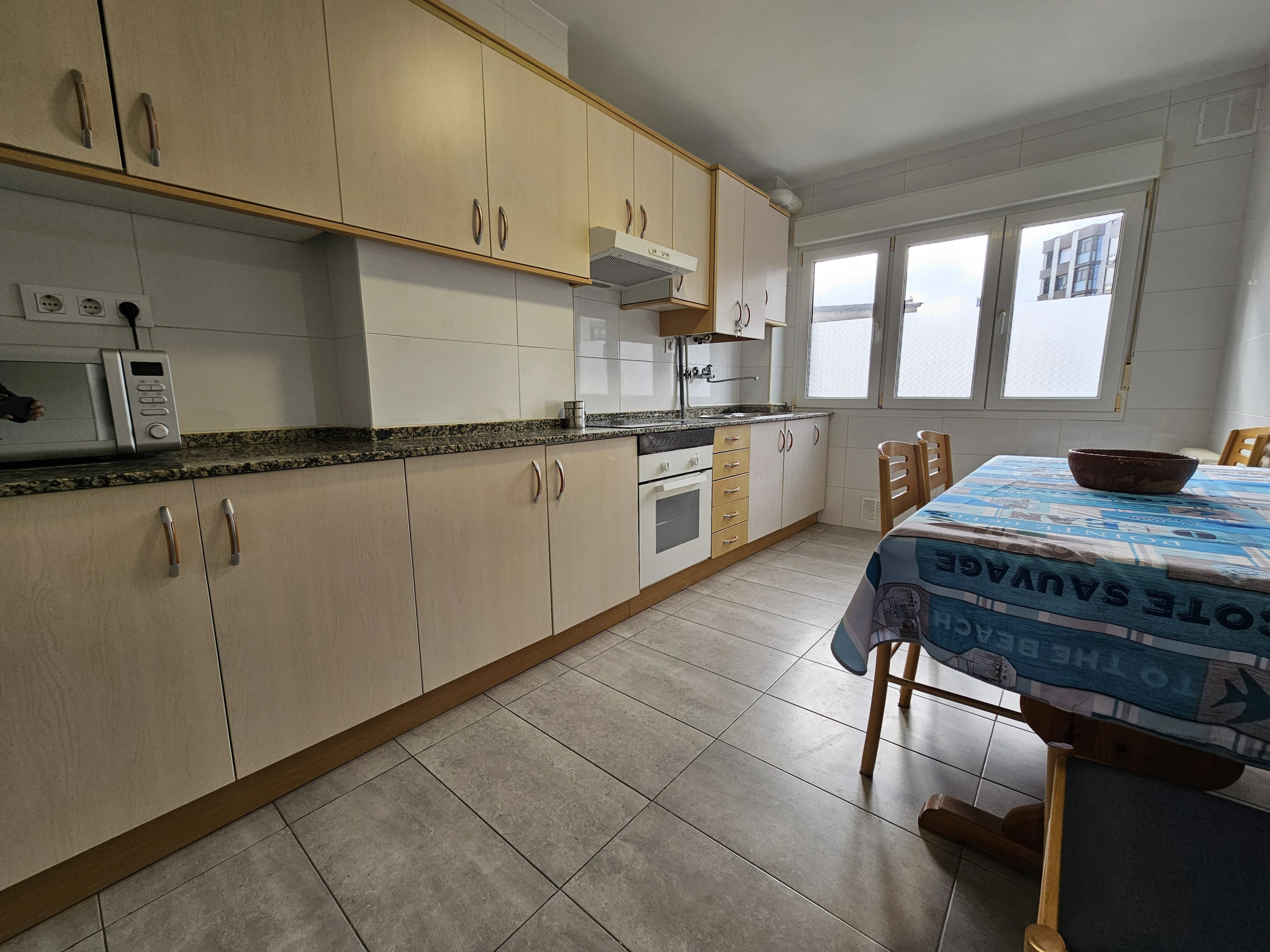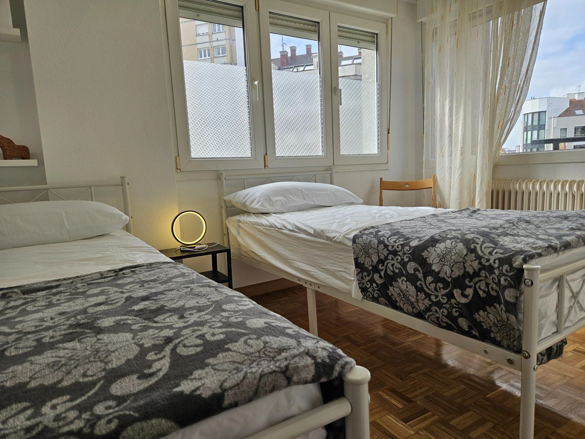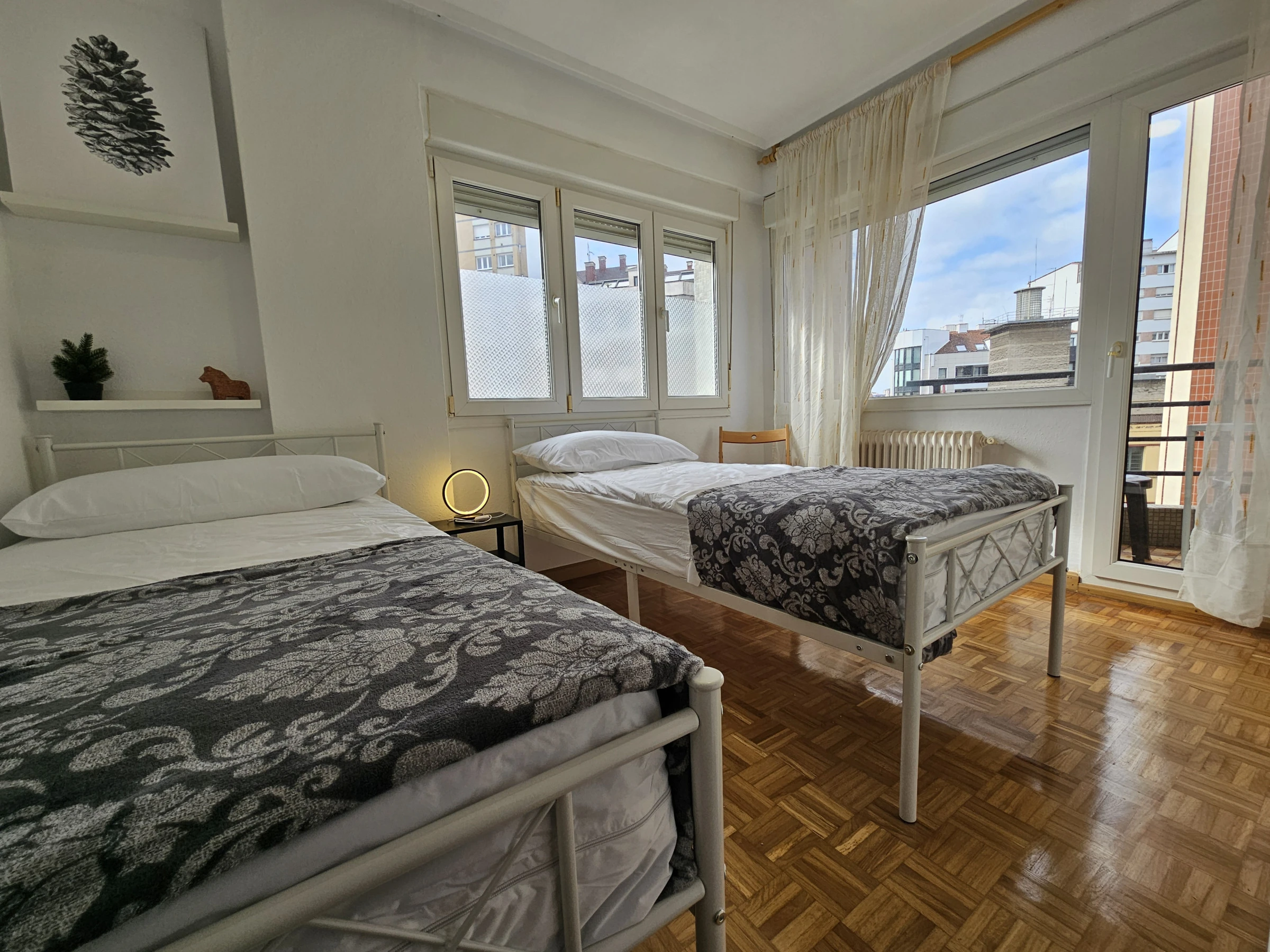 Apartamento céntrico de 3 dormitorios con 6 camas individuales, luminoso y bien distribuido. Cuenta con un baño completo y un aseo adicional para mayor comodidad. La cocina está completamente equipada y el salón es independiente, ideal para relajarse. Todas las habitaciones tienen acceso a una terraza, brindando luz natural y vistas. Buena accesibilidad en la ciudad, perfecto para explorar.